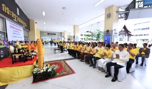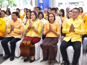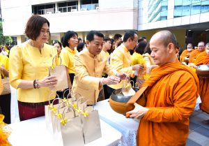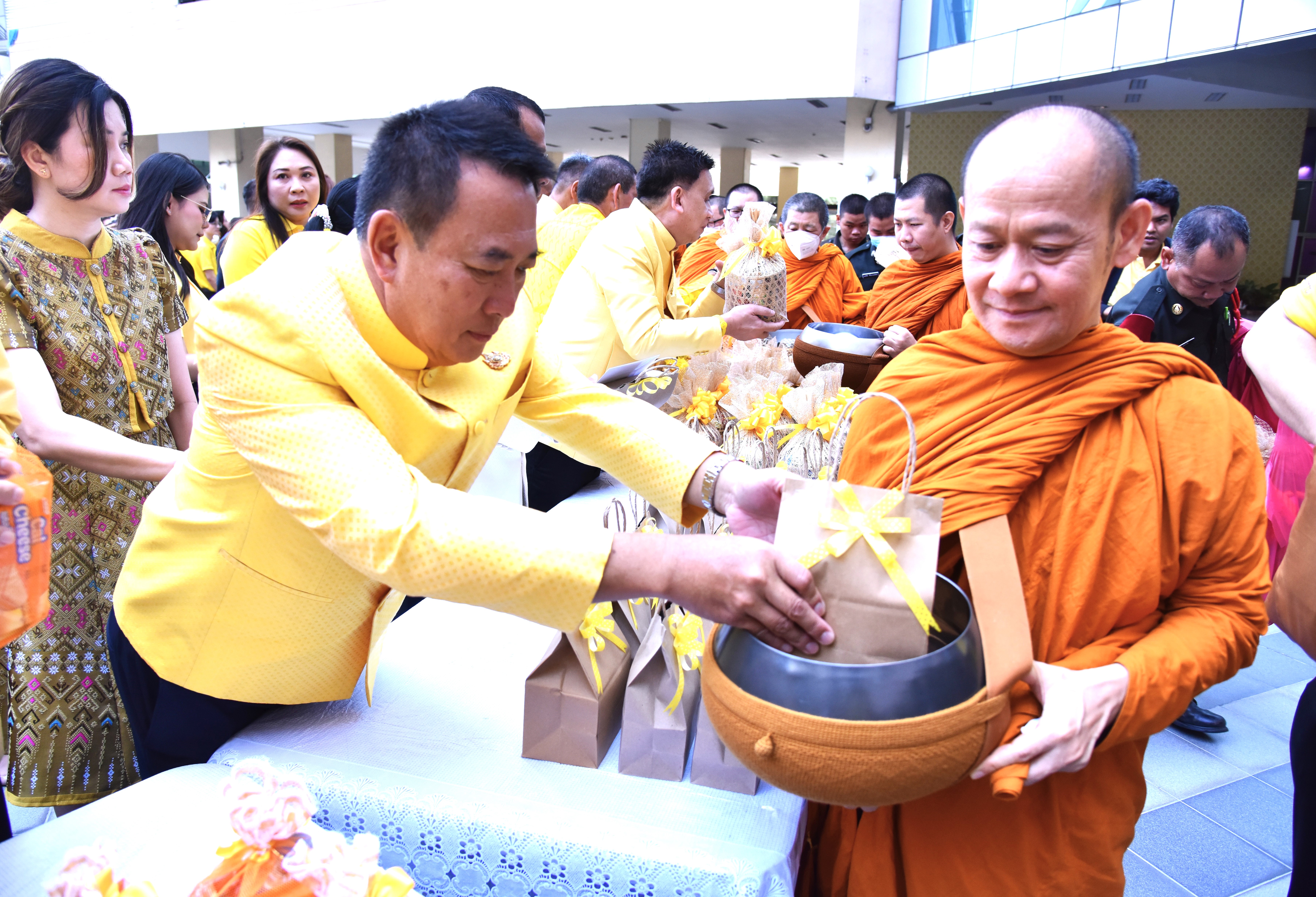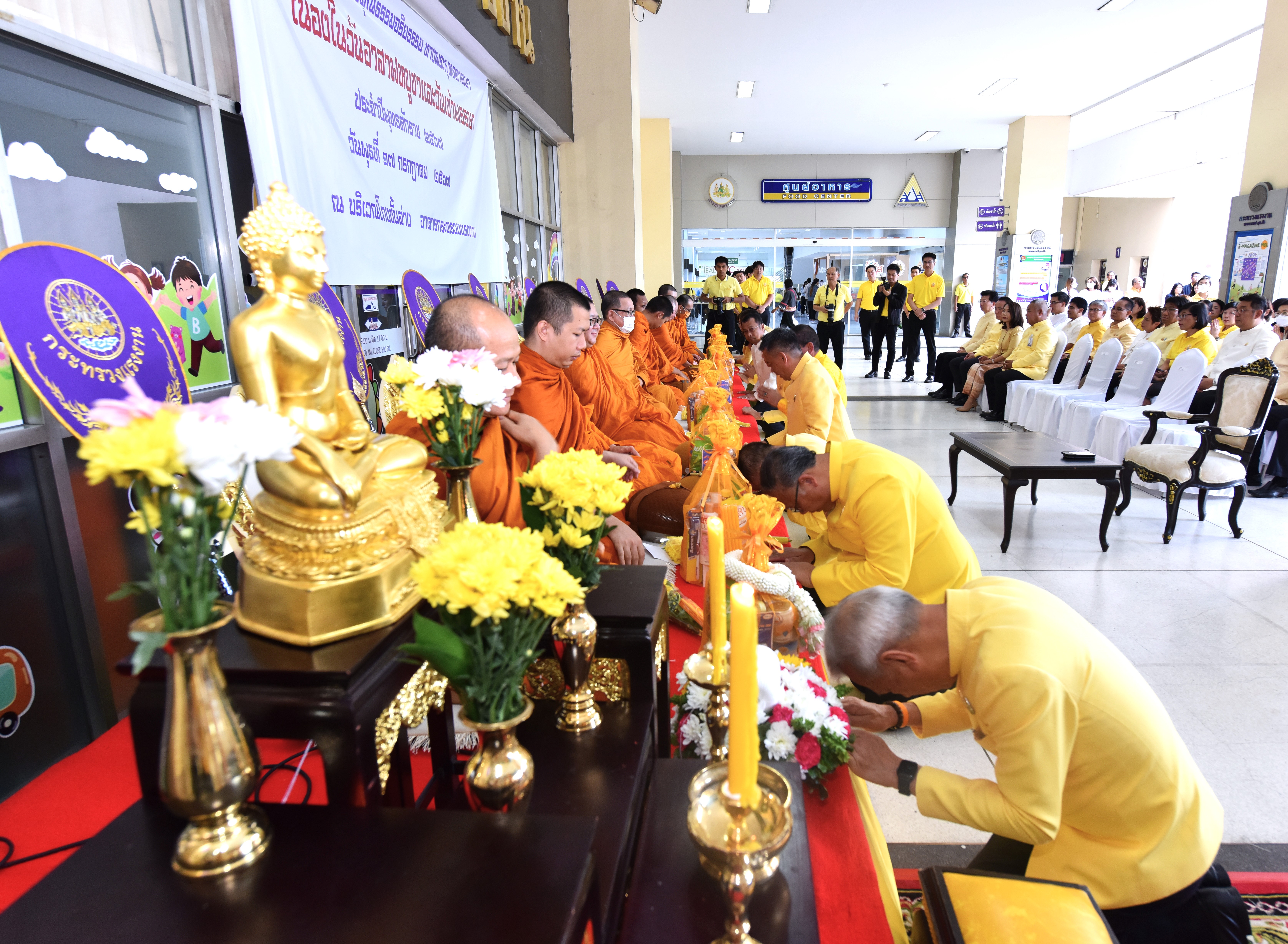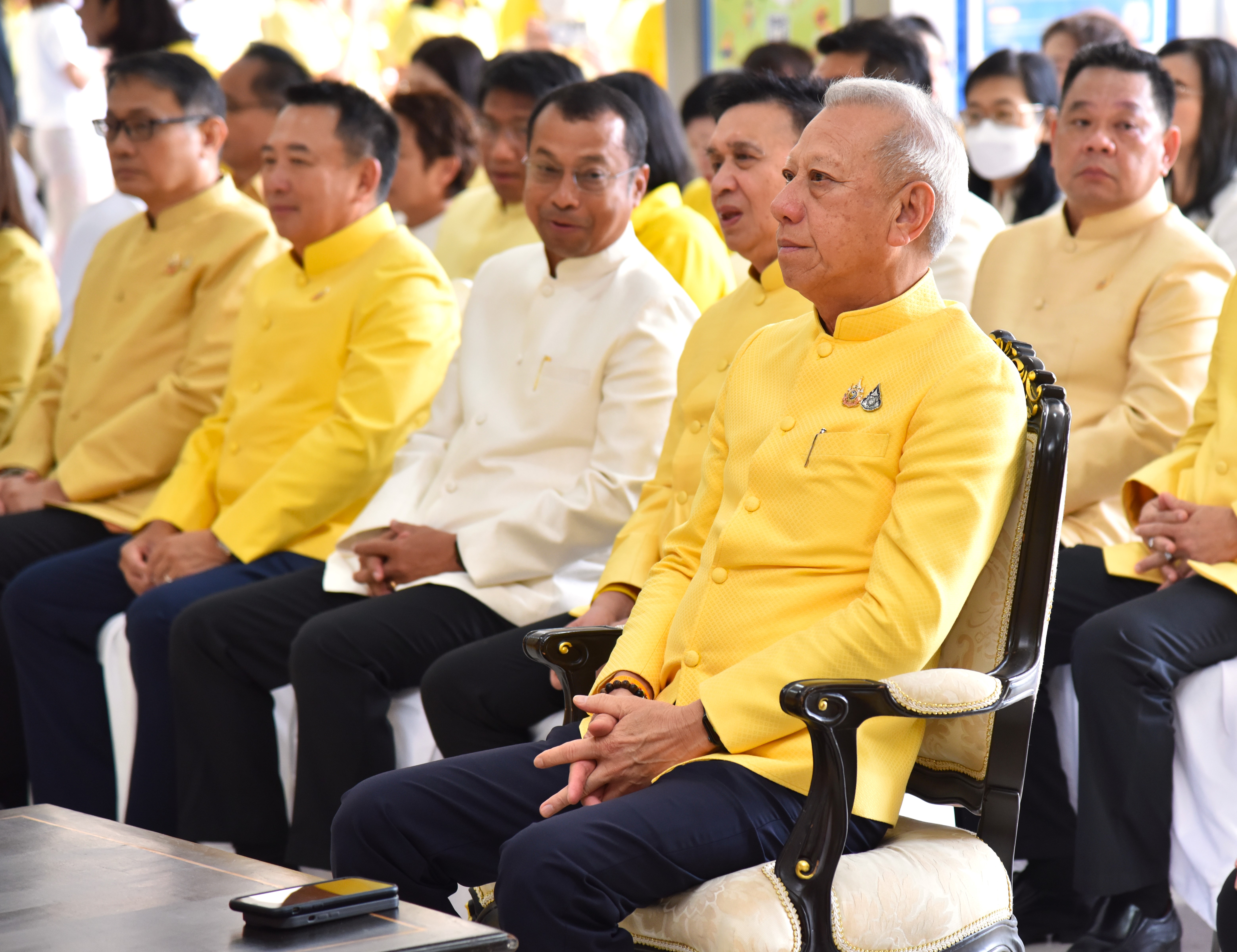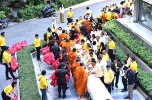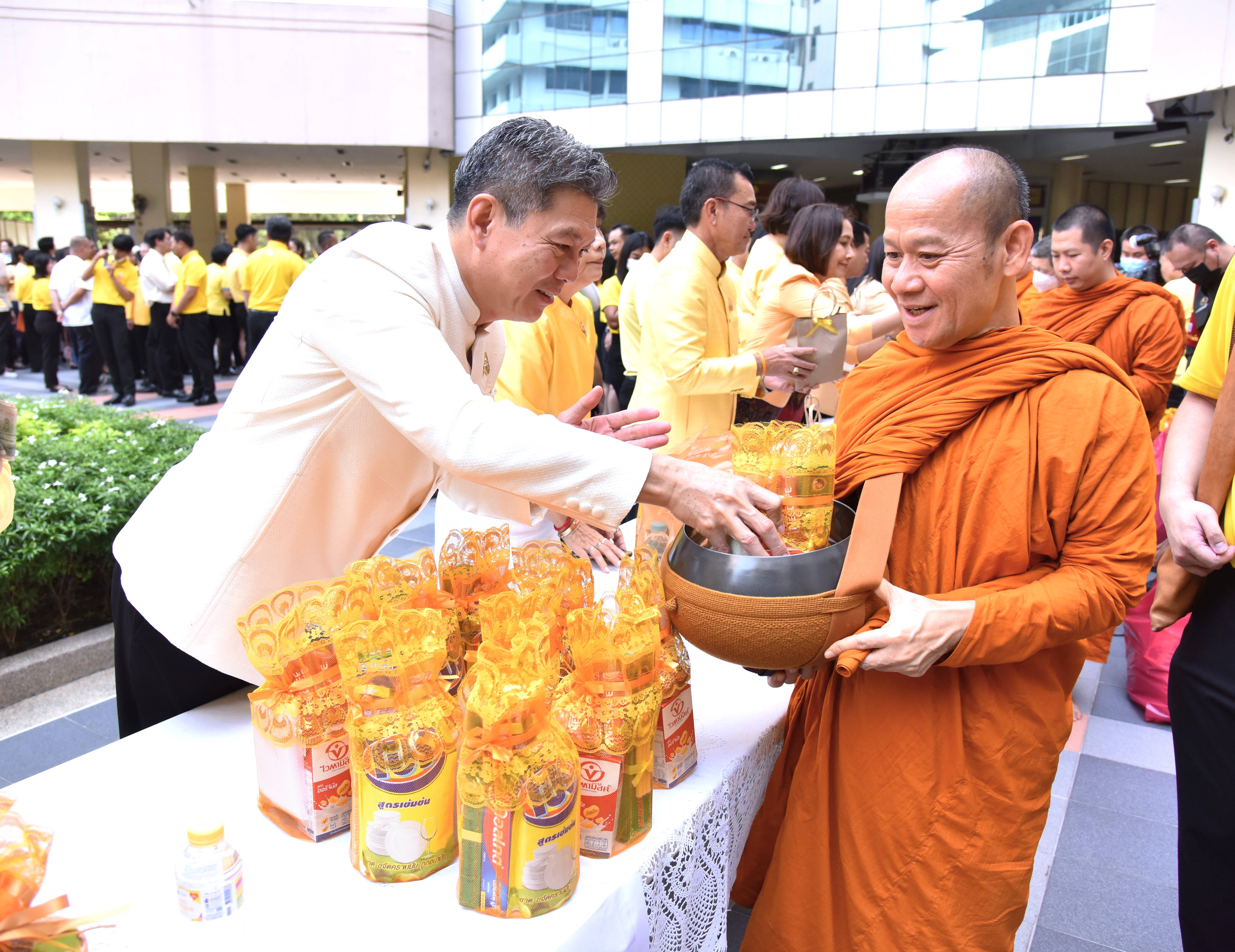 On July 17, 2024, at 08.30 hours, the Labour Minister, Mr. Phiphat Ratchakitprakarn, presided over the alms-giving ceremony to 10 monks, an activity promoting morality and ethics in Buddhism on the occasion of Asahna Bucha Day and Buddhist Lent Day 2024. The Assistant to the Labour Minister, Mr. Siraphop Duangsodsri, the Secretariat to the Labour Minister, Mr. Aree Krainara, from the Prime Minister’s Secretariat’s Office, performing duties for the Ministry of Labour, Mr. Phuchong Worasri, the Ministry of Labour’s Spokesperson, Mr. Phumiphat Mueanchan, the Permanent Secretary of Labour, Mr. Pairoj Chotikasathien, the Ministry of Labour’s executives, civil servants, and employees under the Ministry of Labour participated in activities at the ground floor hall of the Ministry of Labour building and the Phra Phuttha Sutthithambophit area.
