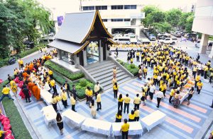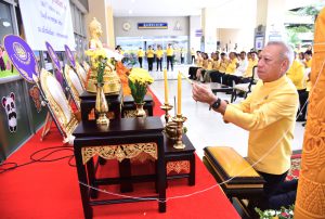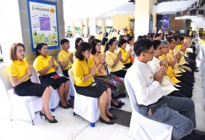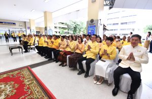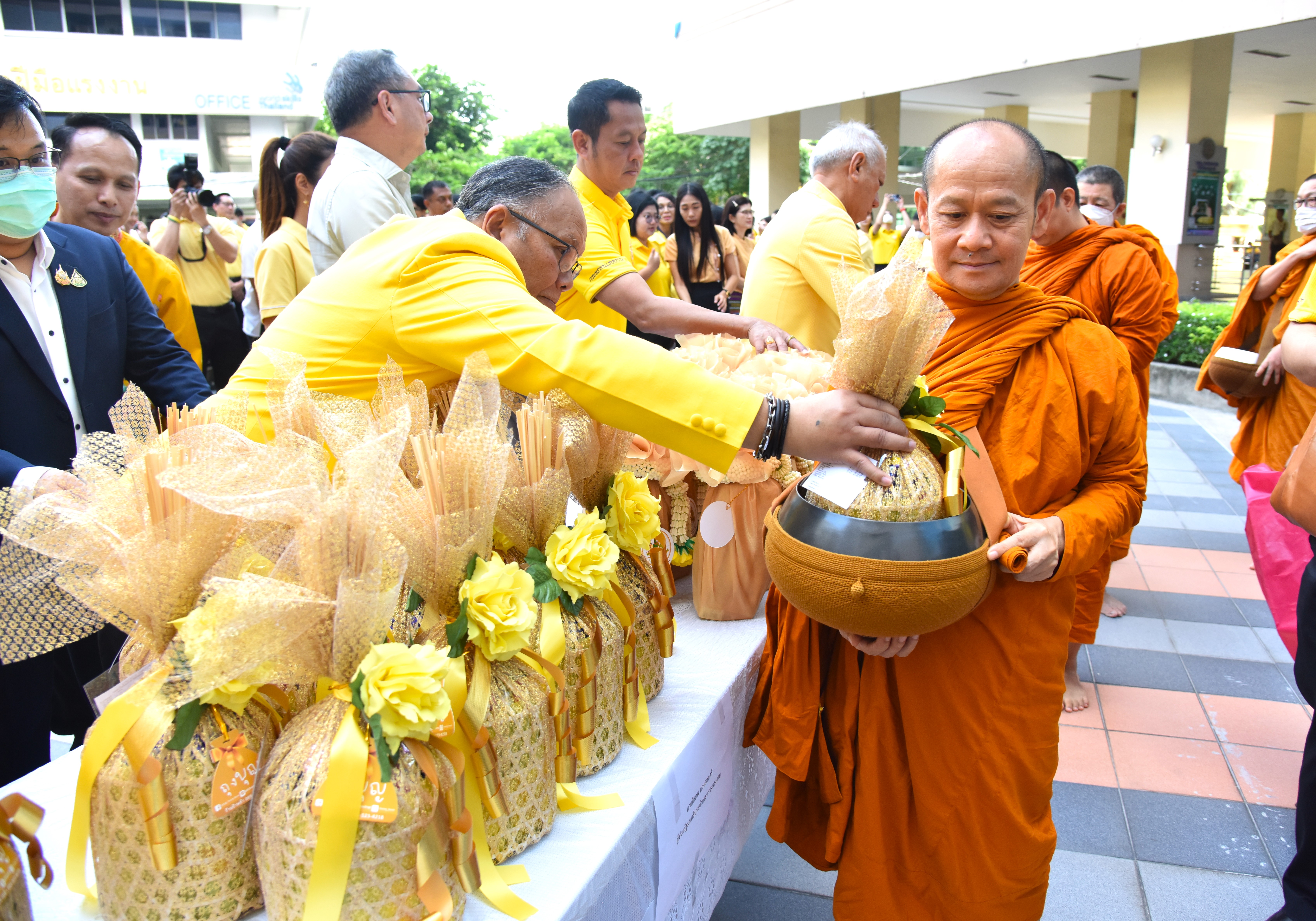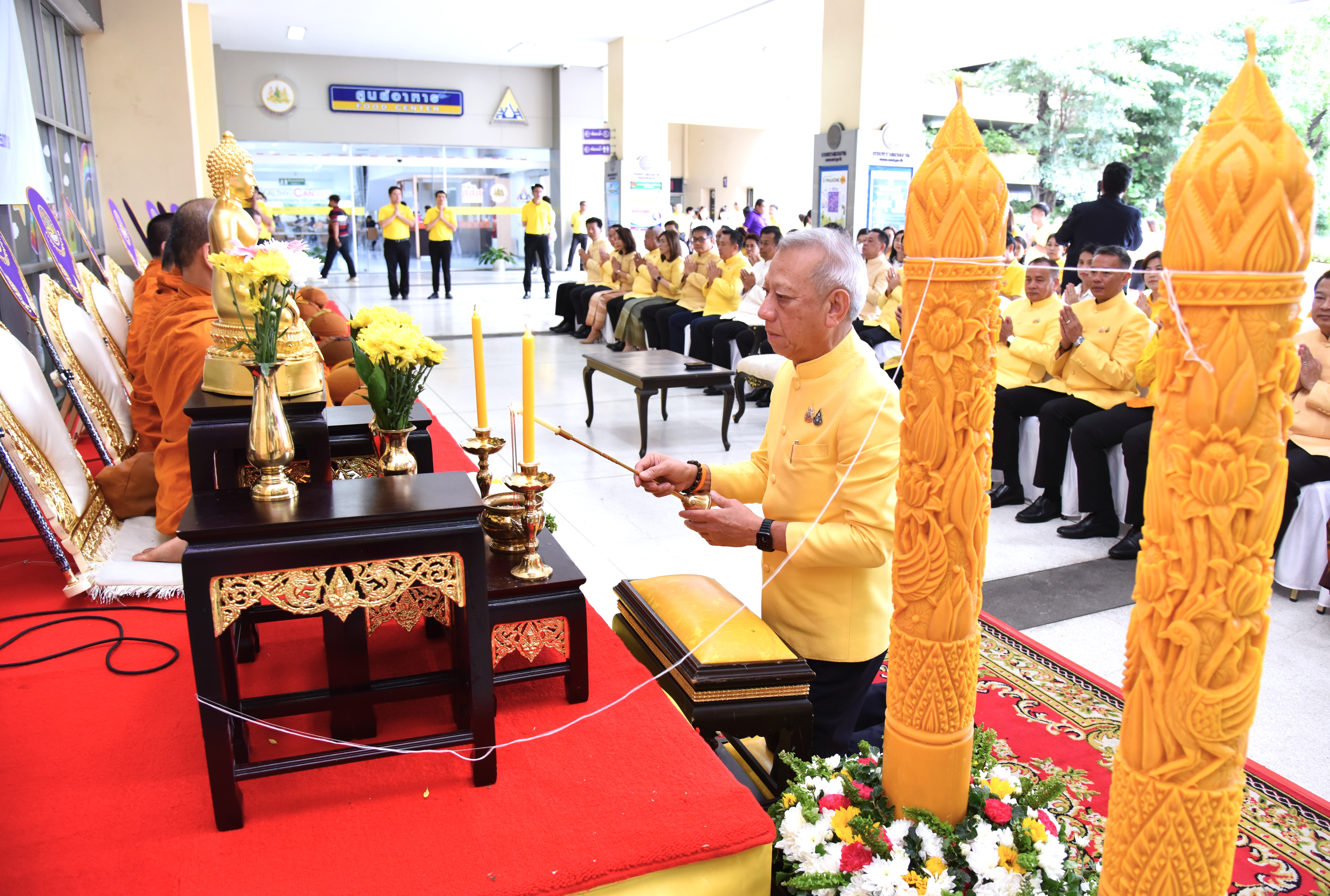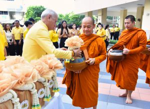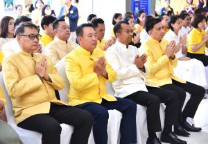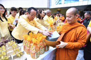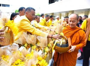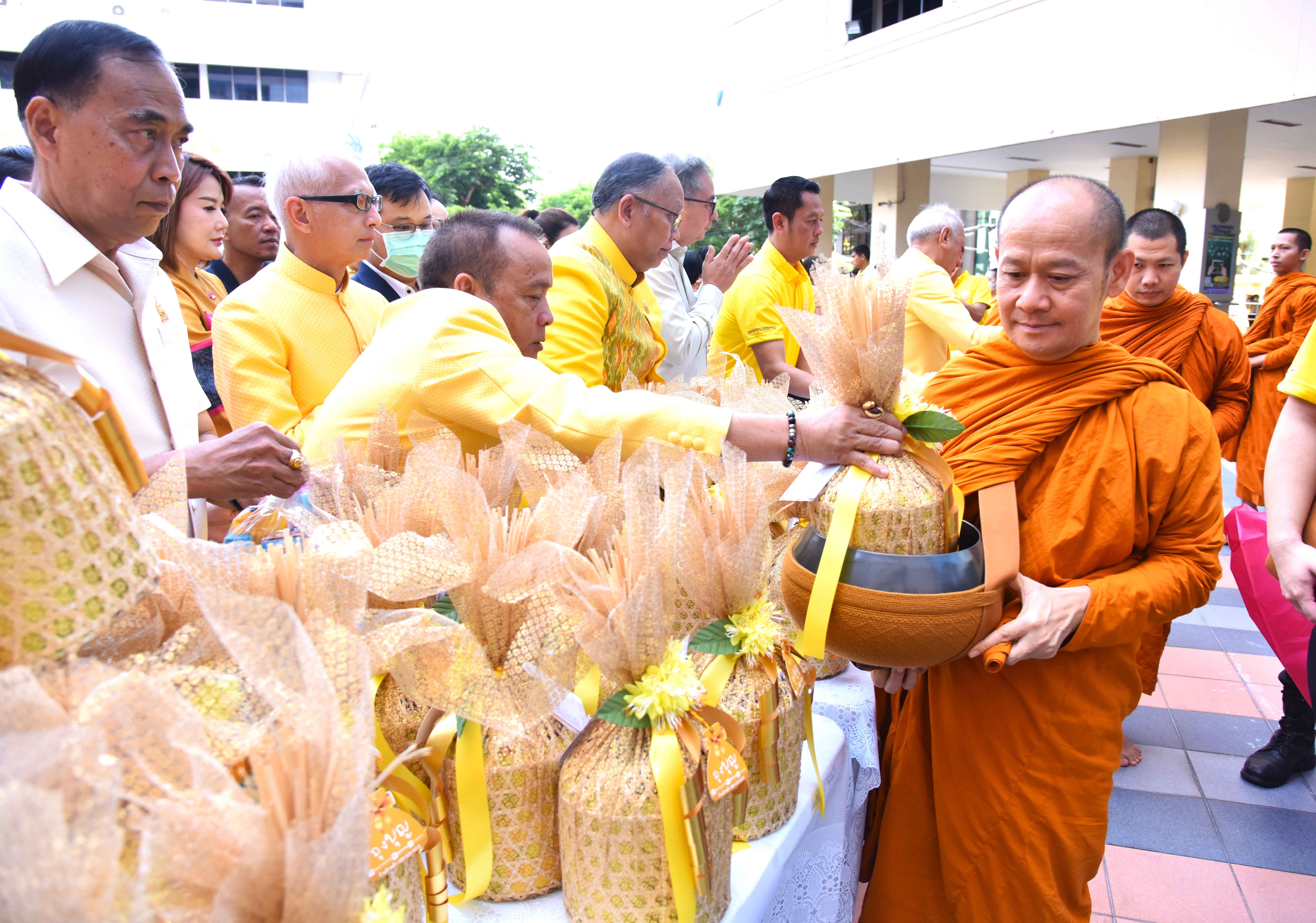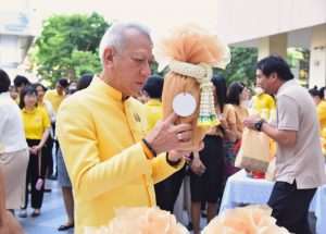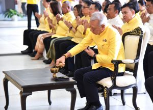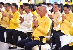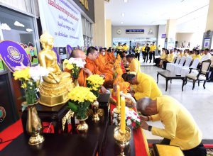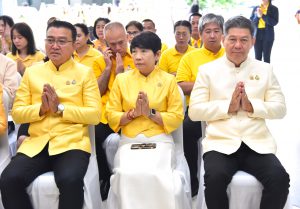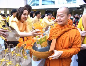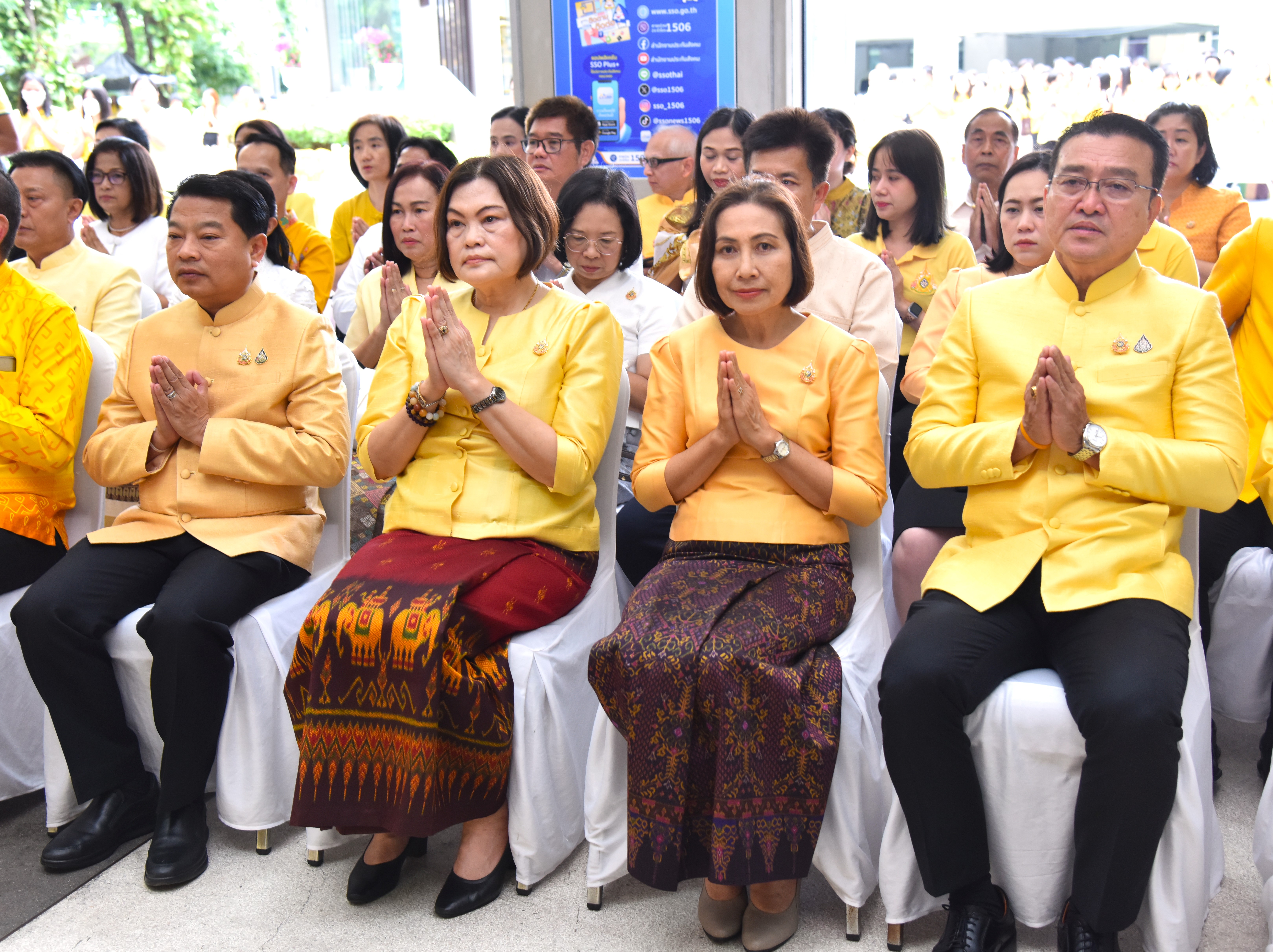 On July 17, 2024, at 08.30 hours, the Labour Minister, Mr. Phiphat Ratchakitprakarn, presided over the alms-giving ceremony to 10 monks, an activity promoting morality and ethics in Buddhism on the occasion of Asahna Bucha Day and Buddhist Lent Day 2024. The Assistant to the Labour Minister, Mr. Siraphop Duangsodsri, the Secretariat to the Labour Minister, Mr. Aree Krainara, from the Prime Minister’s Secretariat’s Office, performing duties for the Ministry of Labour, Mr. Phuchong Worasri, the Ministry of Labour’s Spokesperson, Mr. Phumiphat Mueanchan, the Permanent Secretary of Labour, Mr. Pairoj Chotikasathien, the Ministry of Labour’s executives, civil servants, and employees under the Ministry of Labour participated in activities at the ground floor hall of the Ministry of Labour building and the Phra Phuttha Sutthithambophit area.
