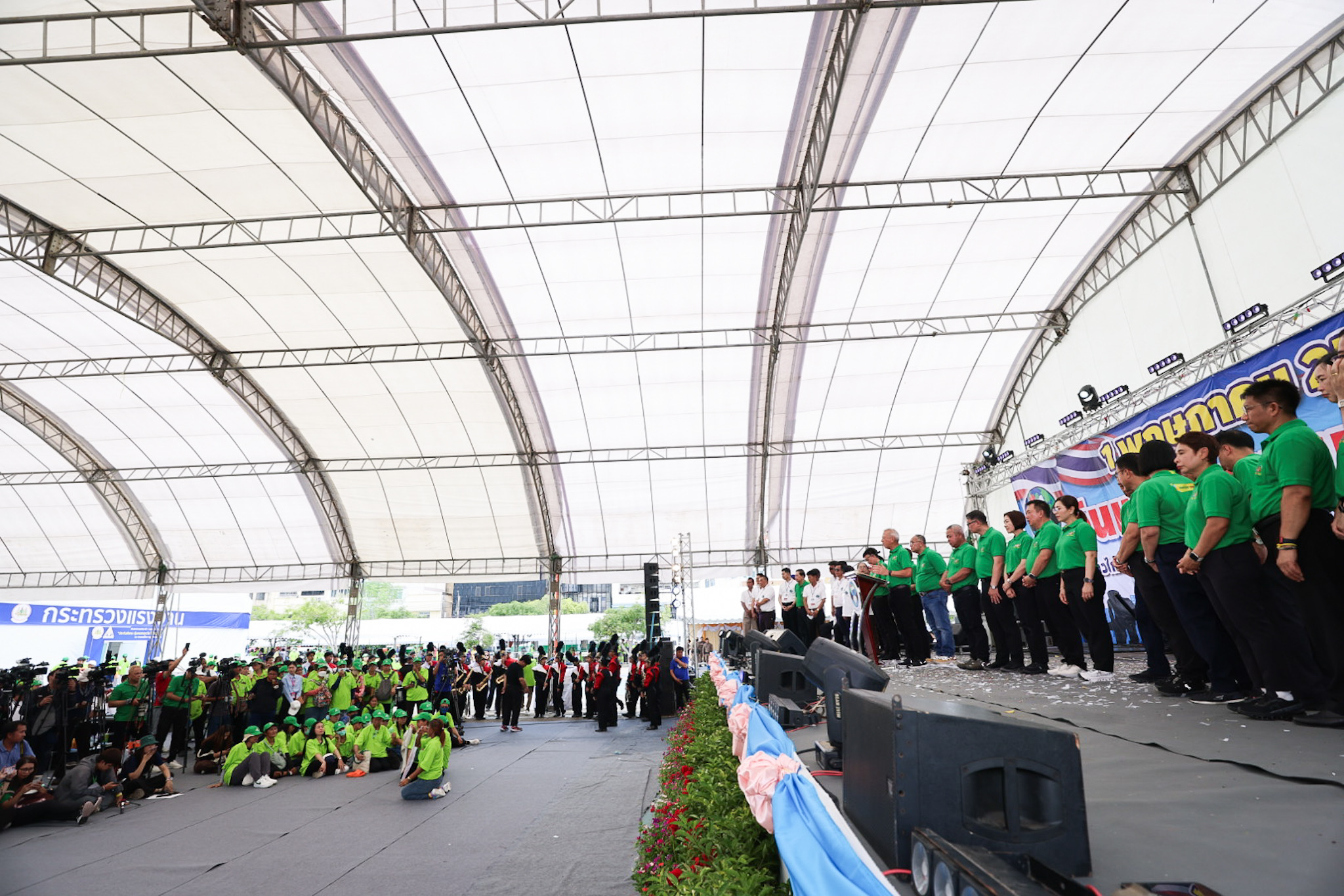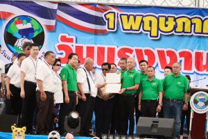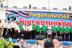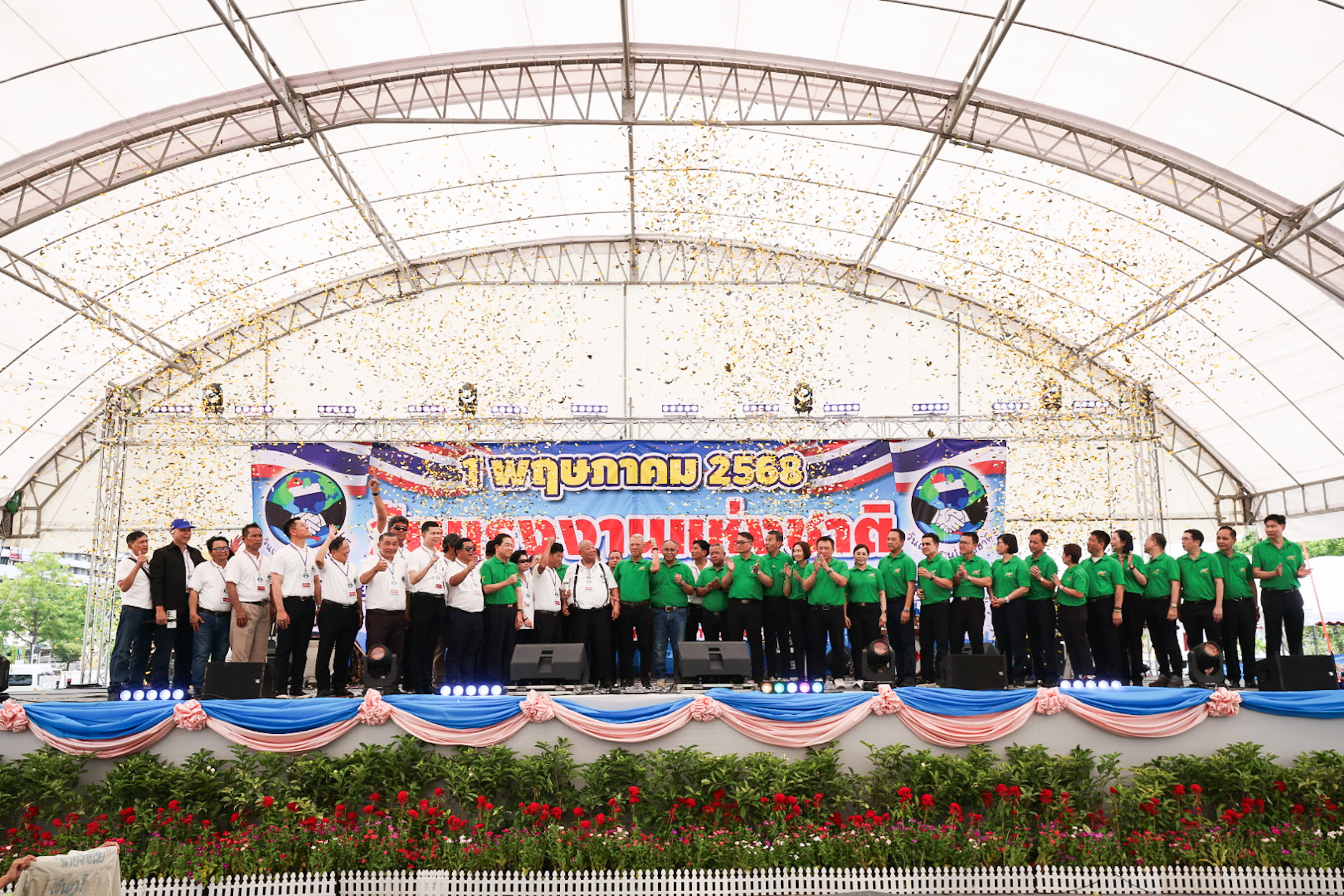 Mr. Phiphat addressed thousands of workers in attendance. He emphasized that the Ministry of Labour takes every labour demand seriously, with dedicated working groups pushing forward policies year-round. Examples include drafting laws in support of ILO Conventions No. 87 and 98, exploring an unemployment insurance fund model, modernizing the social security system to ensure adequate pensions and expanded coverage, strict enforcement of labour protection laws, and advancing occupational safety standards. He outlined the Ministry’s three-pronged labour policy: 1. Future Skills – Nationwide free reskilling and upskilling programs; promotion of high-income overseas jobs for Thai workers. 2. Quality Jobs – Job expos, support for “One Tambon, One Freelance Career Group”; and the “Thai Mee Ngan Tum” job platform, and 3. Labour Security – Enhanced social security rights and access to microloans for self-reliance