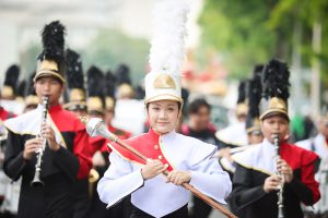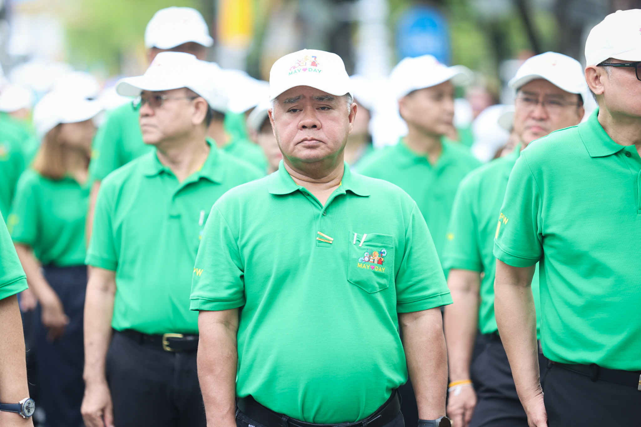At 7.30 hours, Mr. Phiphat led a merit-making ceremony, offering alms to nine monks in honour of Labour Day, with Phra Phromwachiramontri, abbot of Wat Suthat Thepphawararam, presiding over the religious rites. This was followed by a parade featuring senior ministry officials and workers marching from Chulalongkorn Intersection to Bangkok City Hall.
