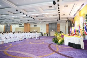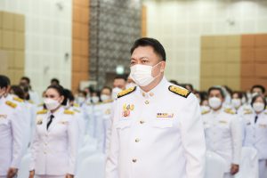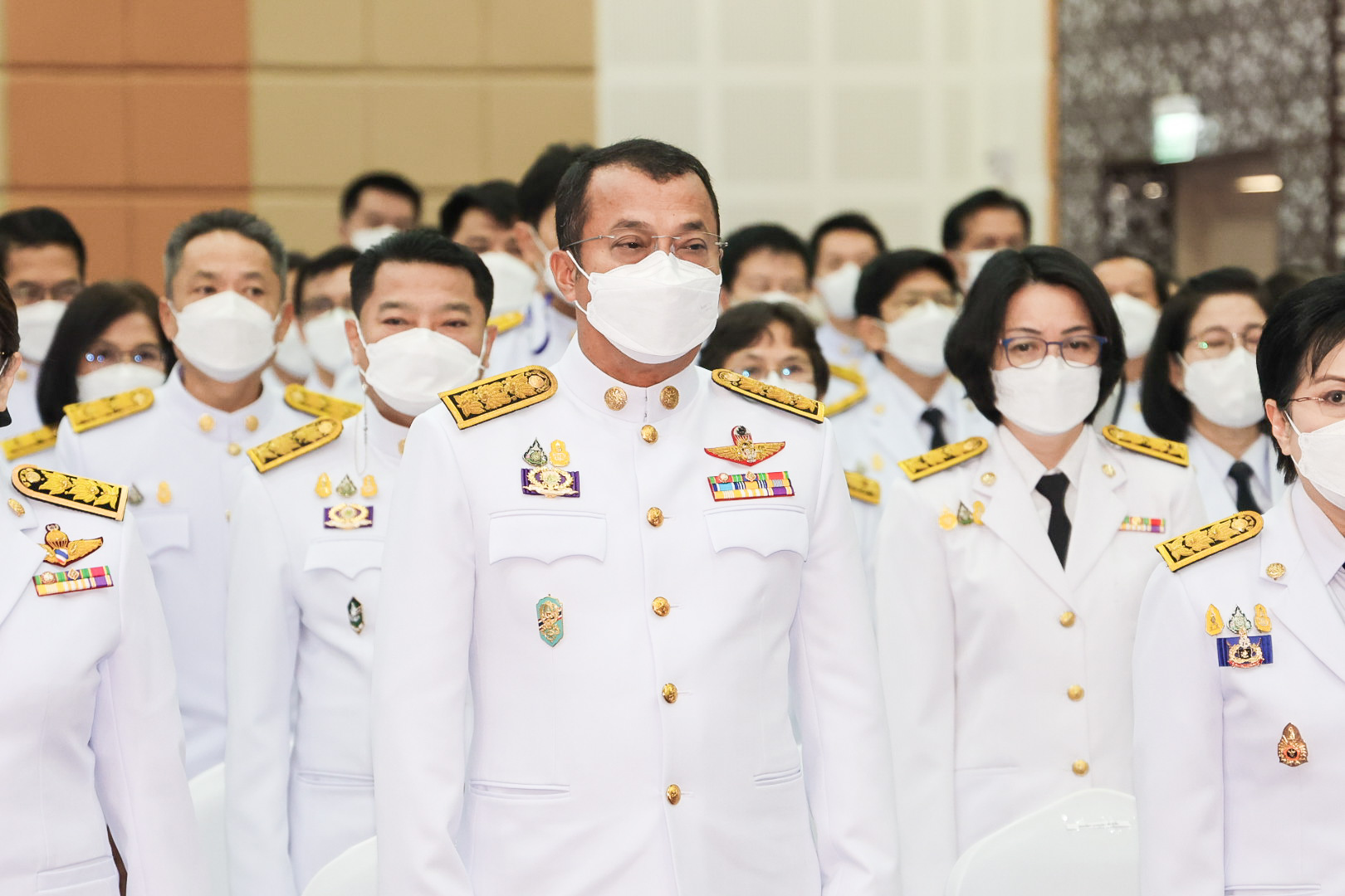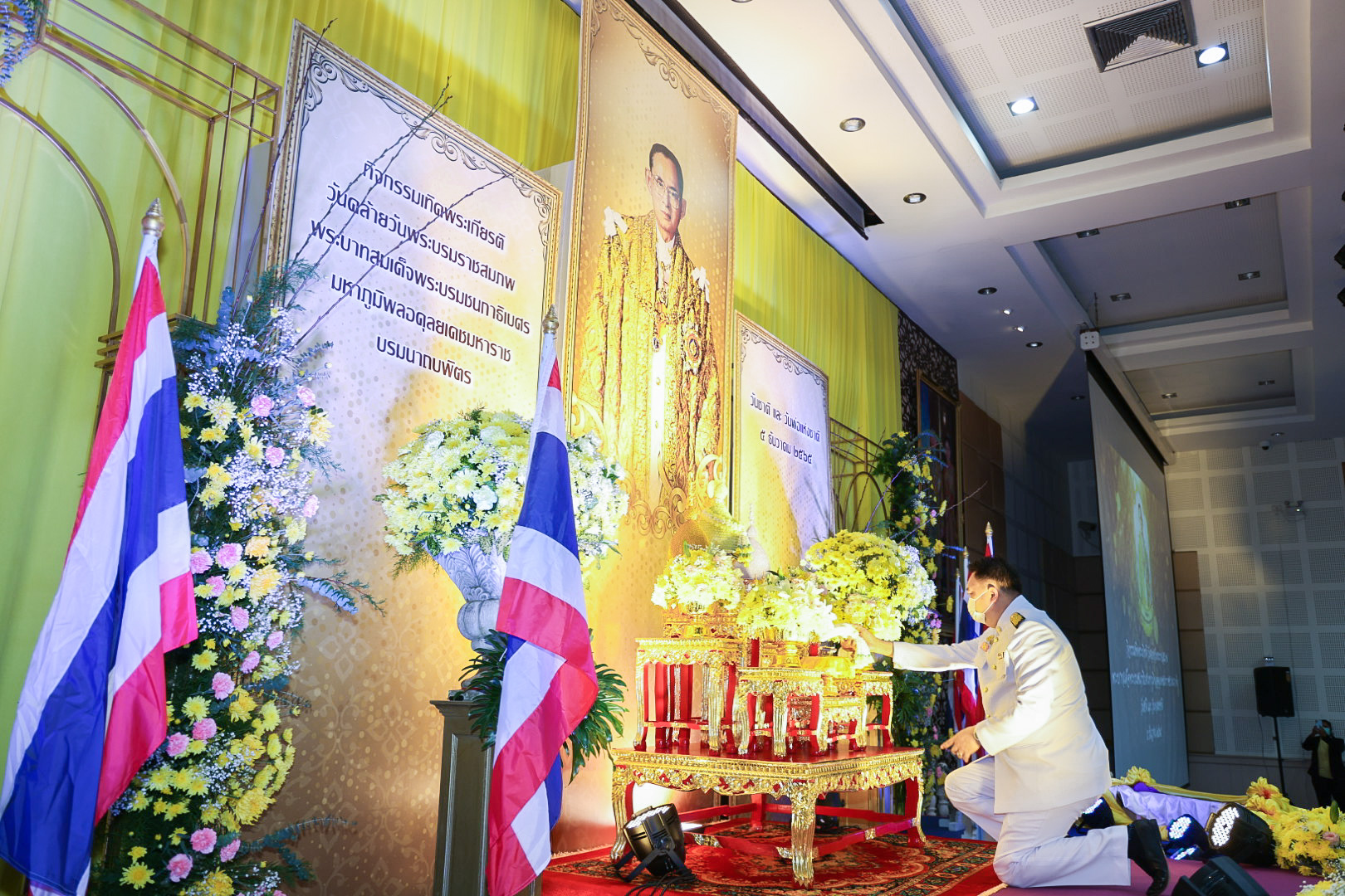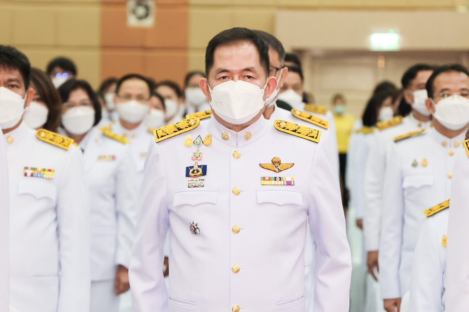 On December 2, 2022, at 08.30 hours, the Labour Minister, Mr. Suchart Chomklin, presided over the ceremony to pay respects on the occasion of His Majesty the late King Bhumibol Adulyadej the Great’s birthday, National Day, and National Father’s Day on December 5, 2022. The Ministry of Labour’s executives, government officials, and staff joined in unison at the meeting room of the Ministry of Labour, 5th floor.