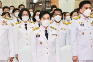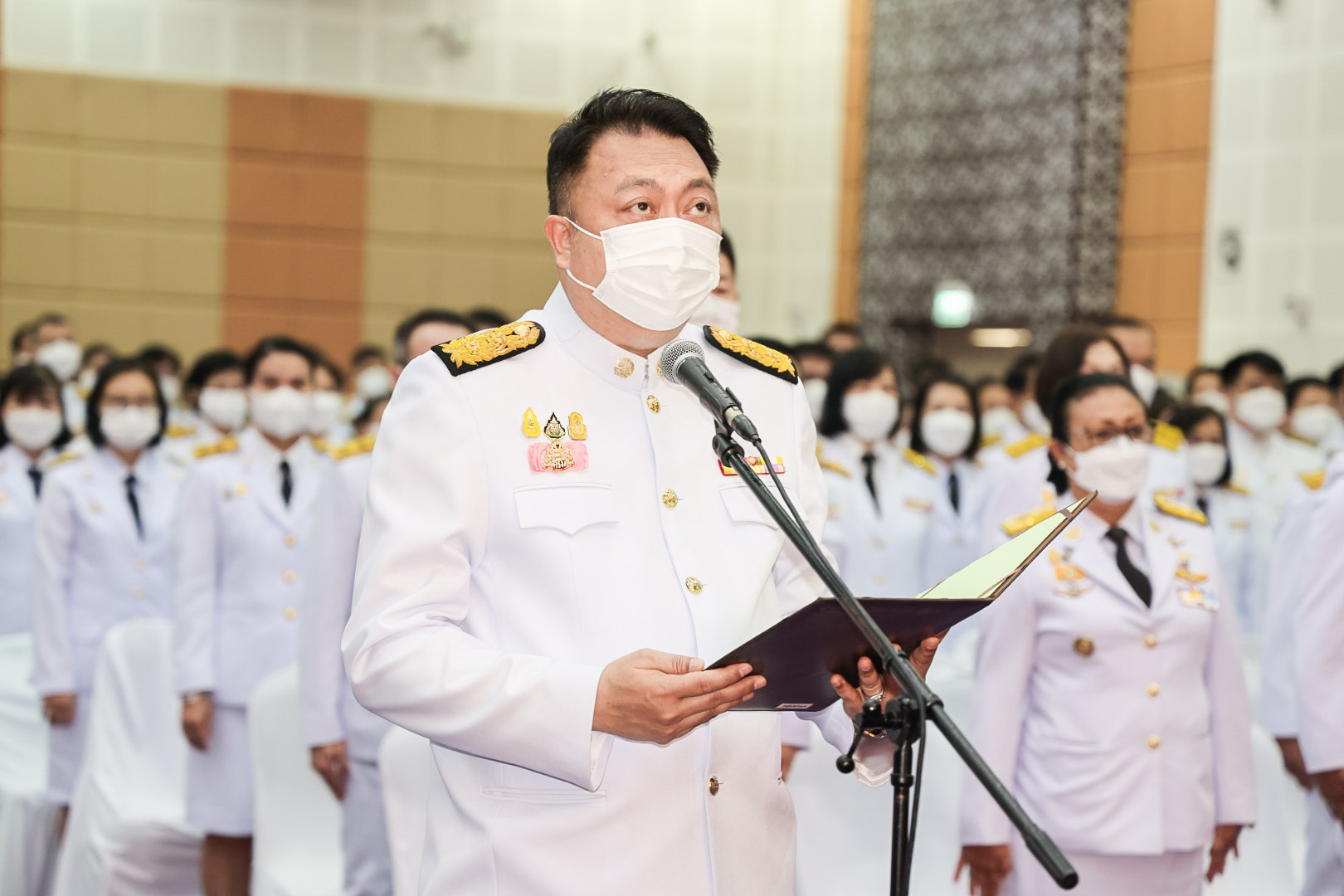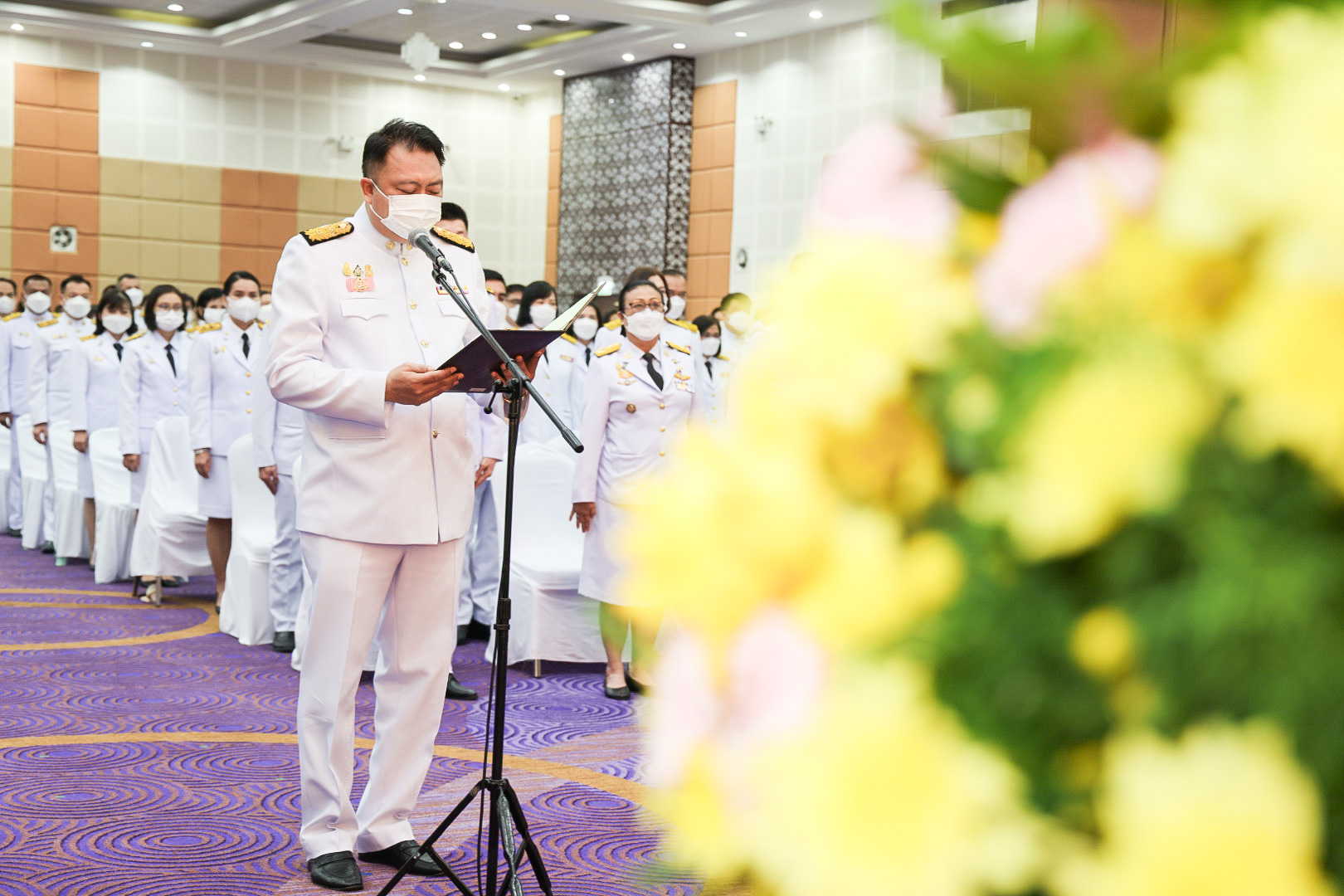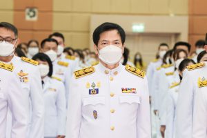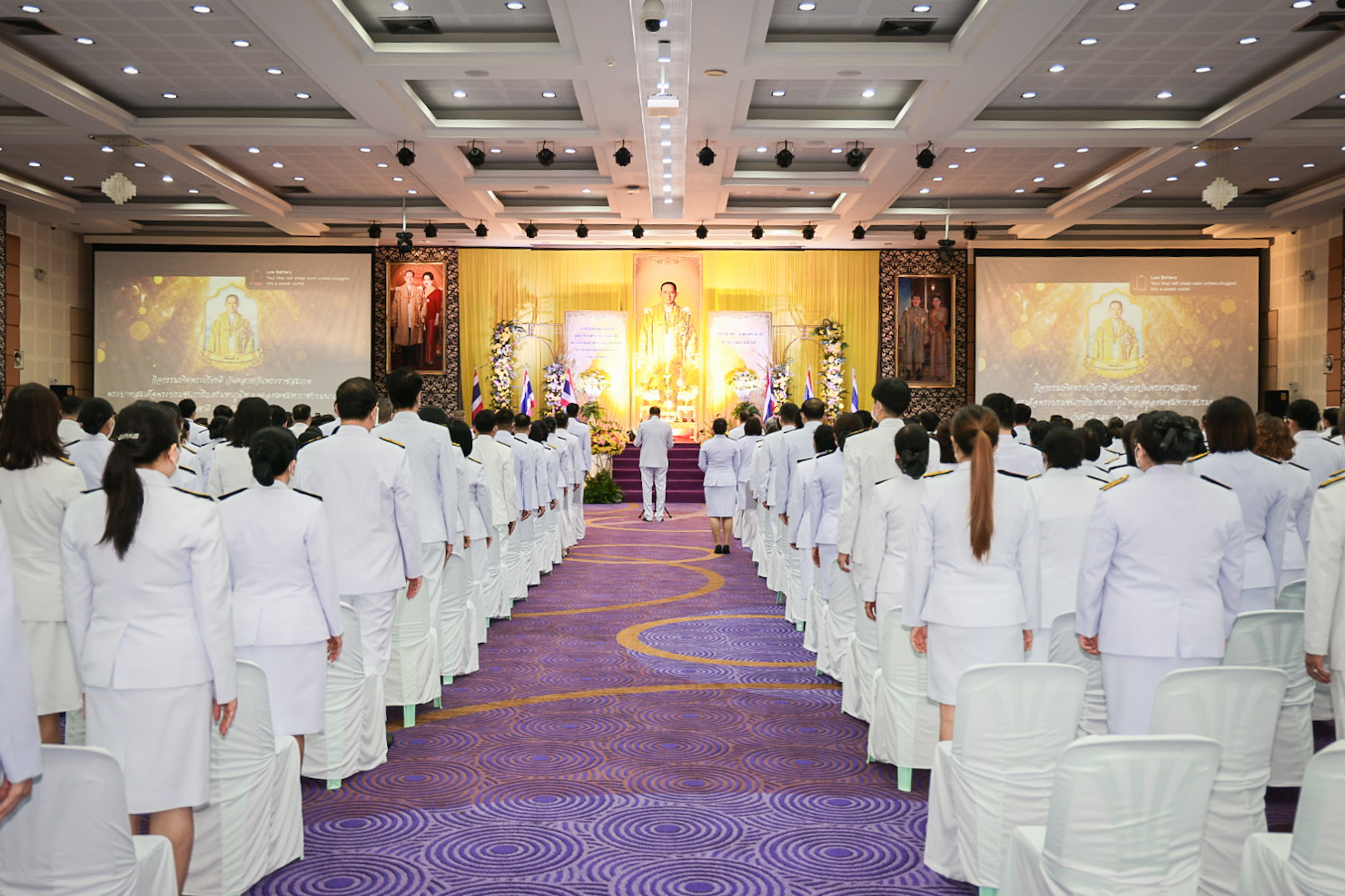On December 2, 2022, at 08.30 hours, the Labour Minister, Mr. Suchart Chomklin, presided over the ceremony to pay respects on the occasion of His Majesty the late King Bhumibol Adulyadej the Great’s birthday, National Day, and National Father’s Day on December 5, 2022. The Ministry of Labour’s executives, government officials, and staff joined in unison at the meeting room of the Ministry of Labour, 5th floor.