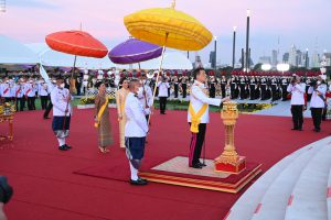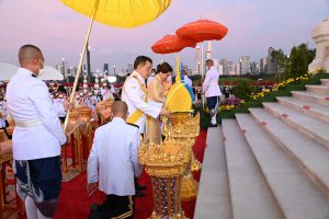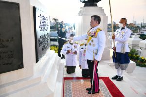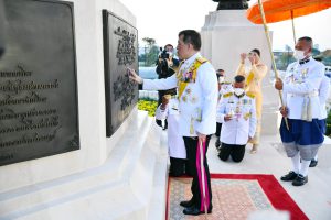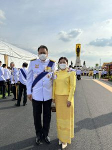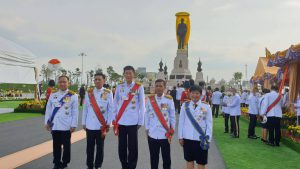 On October 13, 2022, at 17.00 hours, the Labour Minister, Mr. Suchart Chomklin, and his wife, together with the Permanent Secretary of Labour, Mr. Boonchob Suttamanaswong and the Ministry of Labour’s senior executives, greeted His Majesty The King and Her Majesty The Queen at the unveiling of late King Bhumibol Adulyadej The Great’s statue.