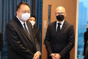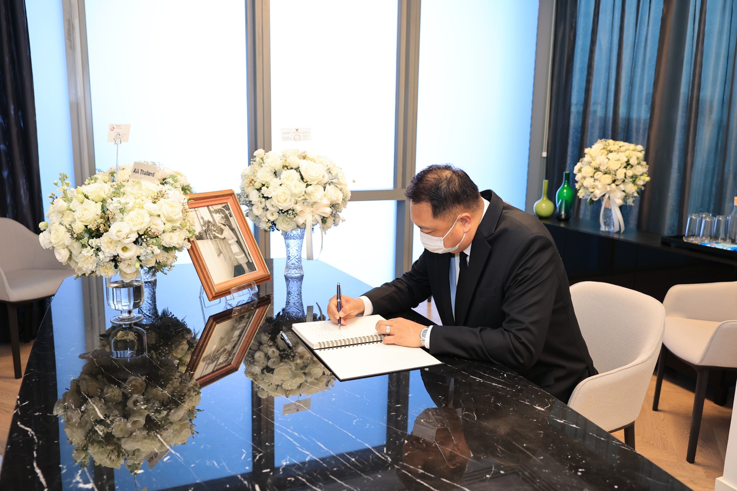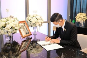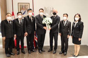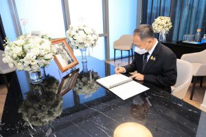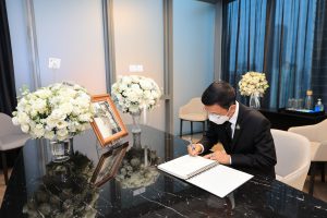 On September 13, 2022, at 15.00 hours, the Labour Minister Mr. Suchart Chomklin, the Permanent Secretary of Labour, Mr. Boonchob Suttamanaswong, and the Ministry of Labour’s executives signed the book of condolences on the passing of Her Majesty Queen Elizabeth II of the United Kingdom. Mr. Mark Gudding, Ambassador of the United Kingdom to Thailand, welcomed them to the Office of the British Embassy in Thailand, AIA Sathorn Tower, Floor 12A, South Sathorn Road, Yannawa, Sathorn, Bangkok.