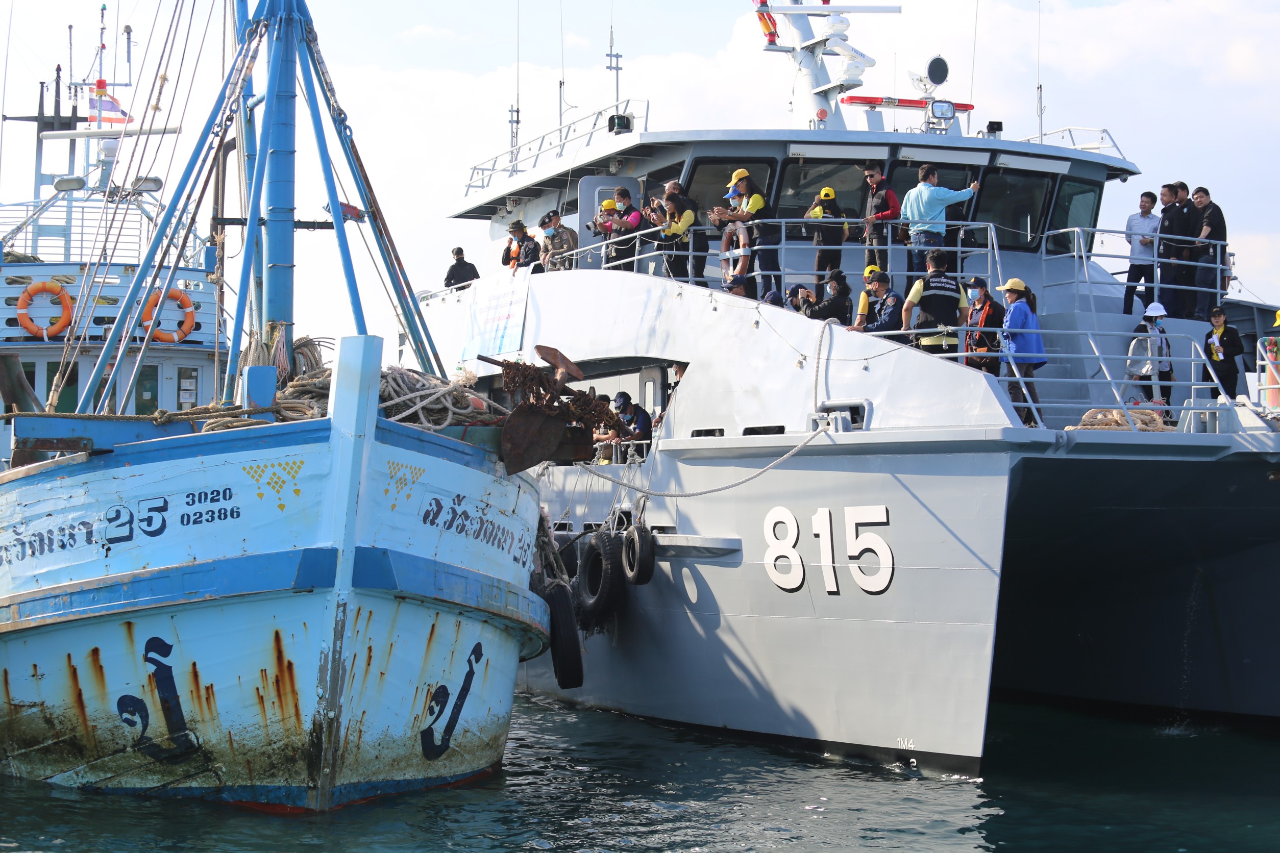 The Labour Minister visited Chonburi to lead a multidisciplinary team to inspect employees in the marine fishing industry and meet with employees, employers, and related sectors to drive policies to prevent and solve human trafficking.