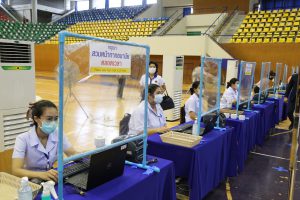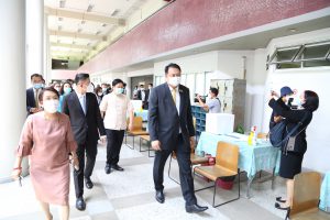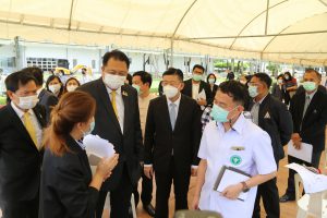 On April 16, 2021, at the West Sports Building 1, Bangkok Youth Center (Thai-Japan), Din Daeng, Bangkok, Labour Minister Mr. Suchart Chomklin, presided over site readiness to launch Covid-19 testing services on Saturday, April 17. The initiative aims to reduce congestion and facilitate social security insured persons under Section 33, 39, and 40 located in Bangkok to be tested for Covid-19. Advisor to the Labour Minister Mrs. Thiwalrat Angkinan, the Labour Minister’s Secretariat Mr. Suthep Chitayavong, Permanent Secretary of Labour Mr. Suthi Sukosol, Deputy Director-General of the Department of Medical Services MD Phairoj Surattanavanich, Deputy Secretariat of the NHSO Dr. Attaphob Limpanyalert, Director of the Culture, Sports and Tourism Department of Bangkok Mr. Somboon Homnarn, and the Ministry of Labour’s executives, also joined the occasion. Mr. Suchart said that Prime Minister and Minister of Defense General Prayuth Chan-ocha is concerned for insured persons amid the Covid-19 pandemic. The Ministry of Labour was charged to work with the Ministry of Interior (Bangkok) and the NHSO to provide an additional channel or alternative to serve insured persons to be examined quickly, to reduce congestion or long queues. Today, the Labour Minister and the relevant departments visited the area to inspect the site’s readiness to be launched as a channel for Covid-19 testing services, to reduce congestion and facilitate insured persons in the social security system under Section 33, 39, and 40 located in Bangkok, to get tested for Covid-19. The services will start tomorrow (April 17).