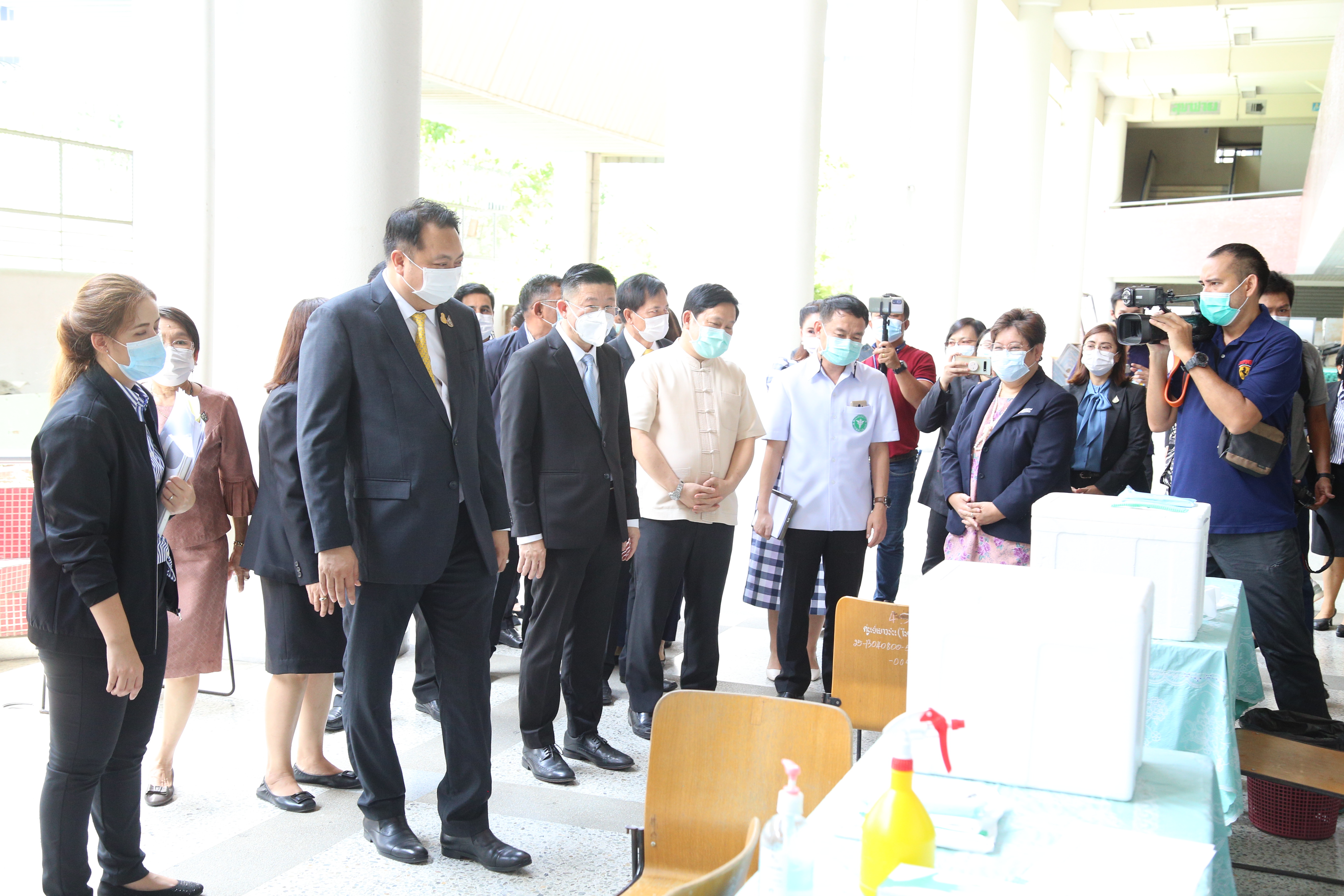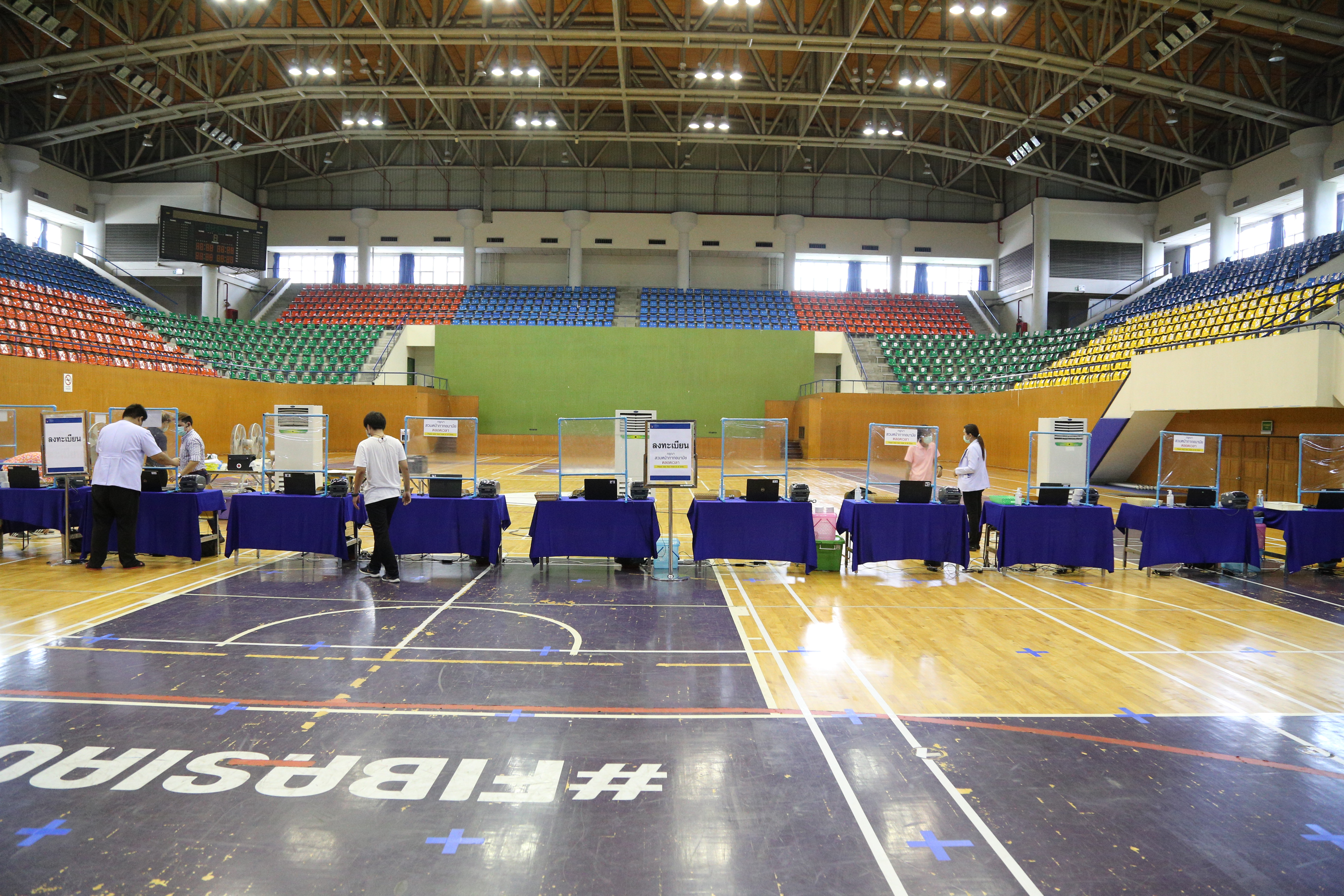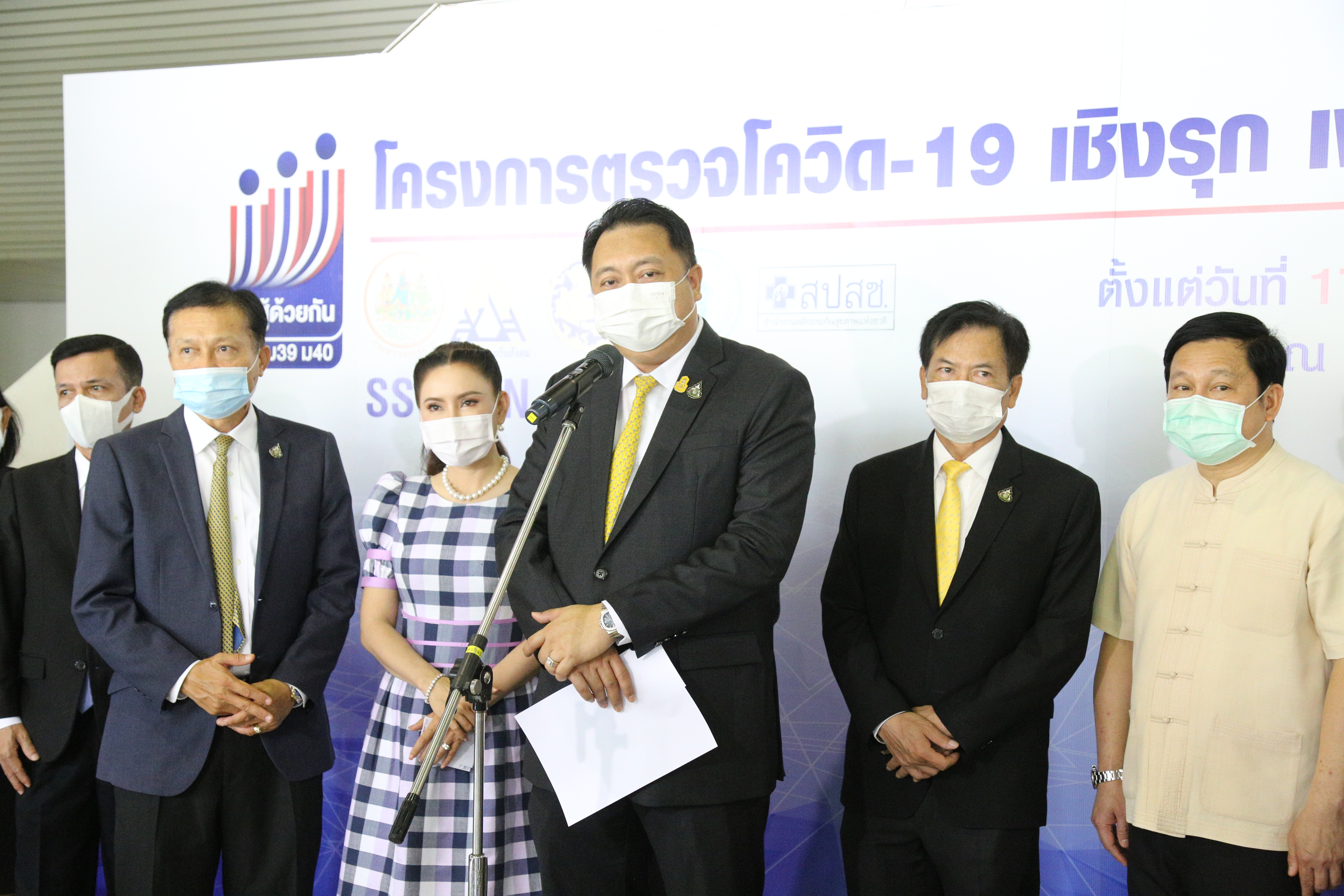 Labour Minister Mr. Suchart Chomklin and committee visited the West Sports Building 1, Bangkok Youth Center (Thai-Japan), Din Daeng, Bangkok, to check the preparation of the facility for use as a channel for proactive Covid-screening for insured persons in the social security system under Section 33, 39 and 40 located in Bangkok. The services will help reduce congestion and facilitate screenings, starting Saturday, April 17.