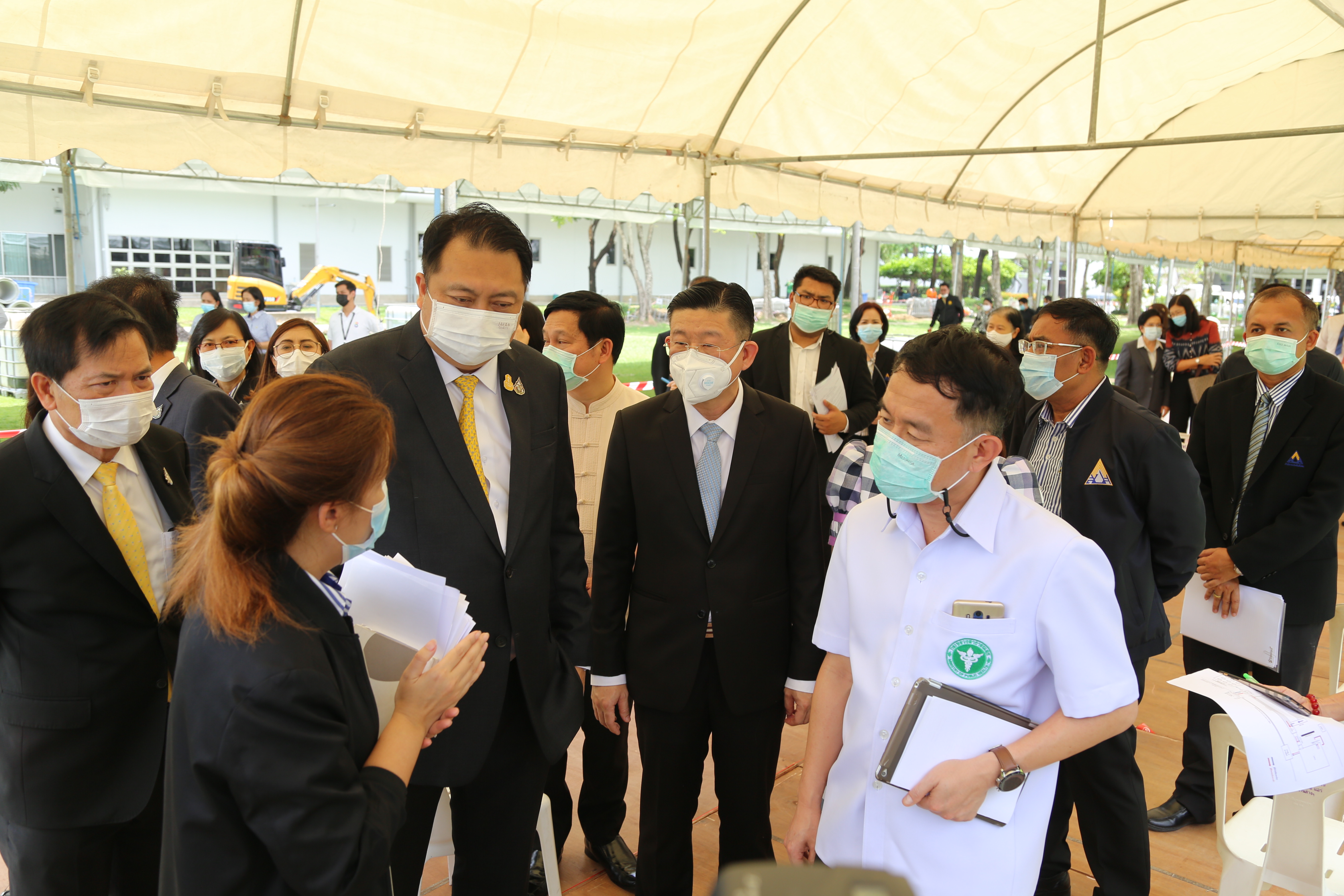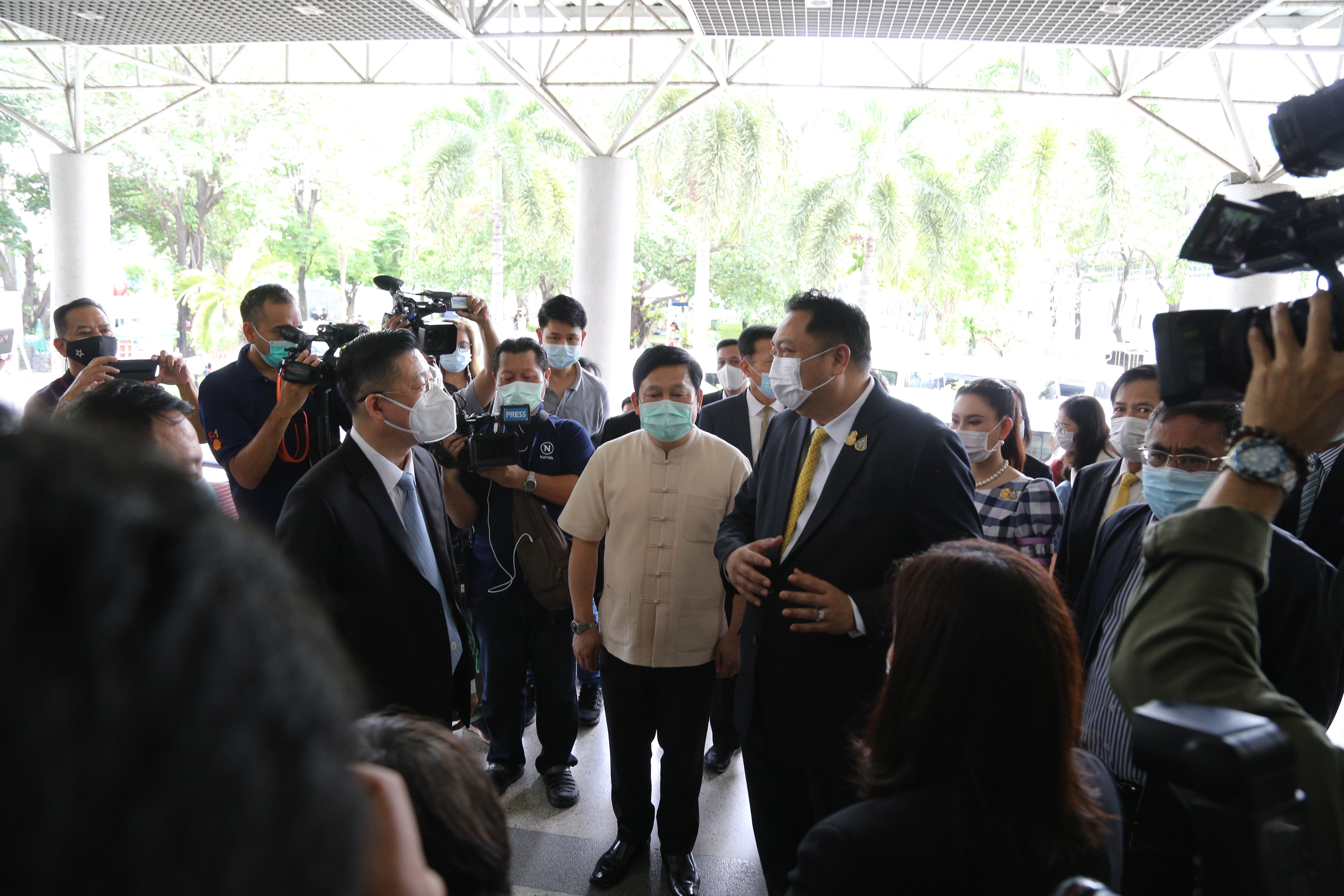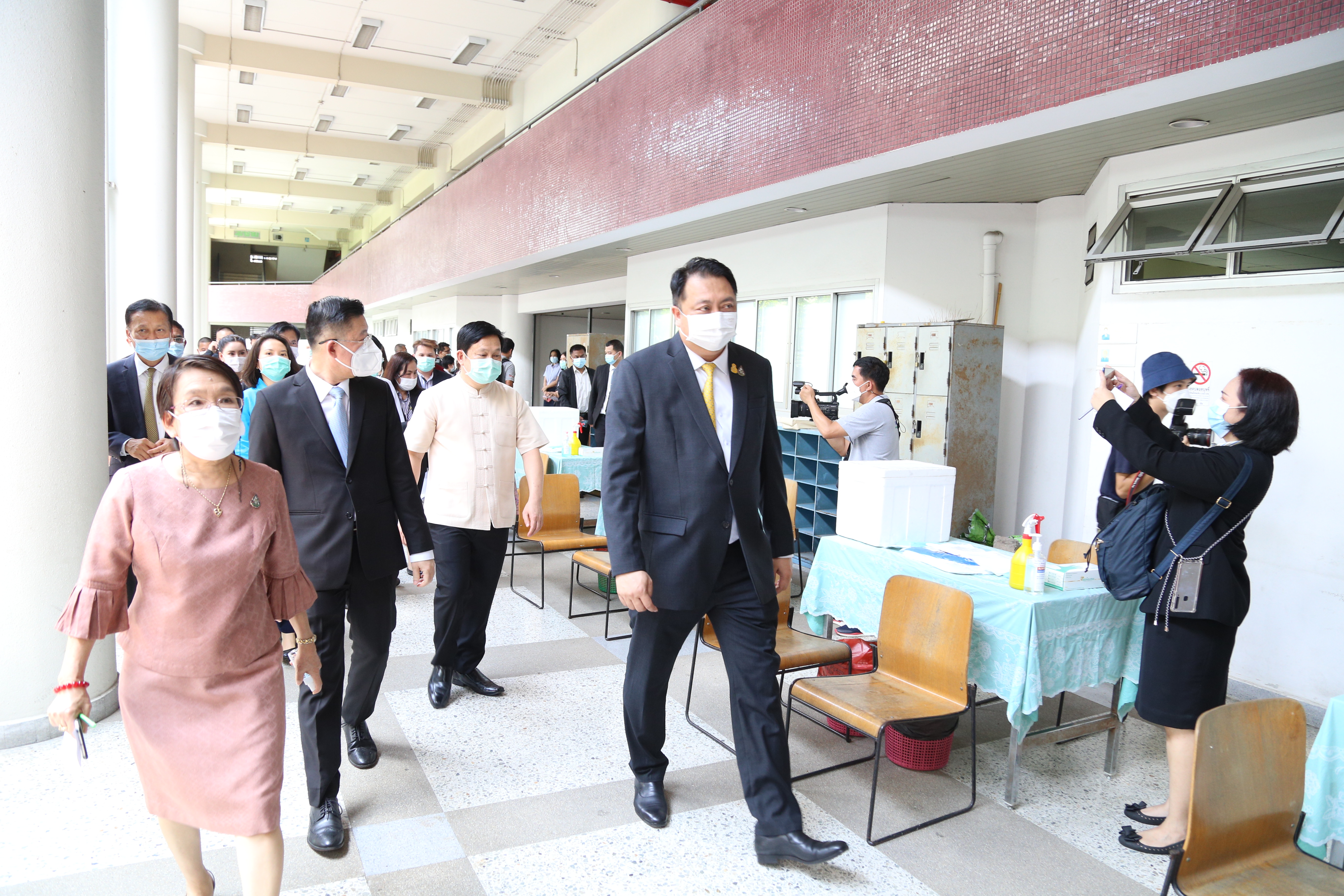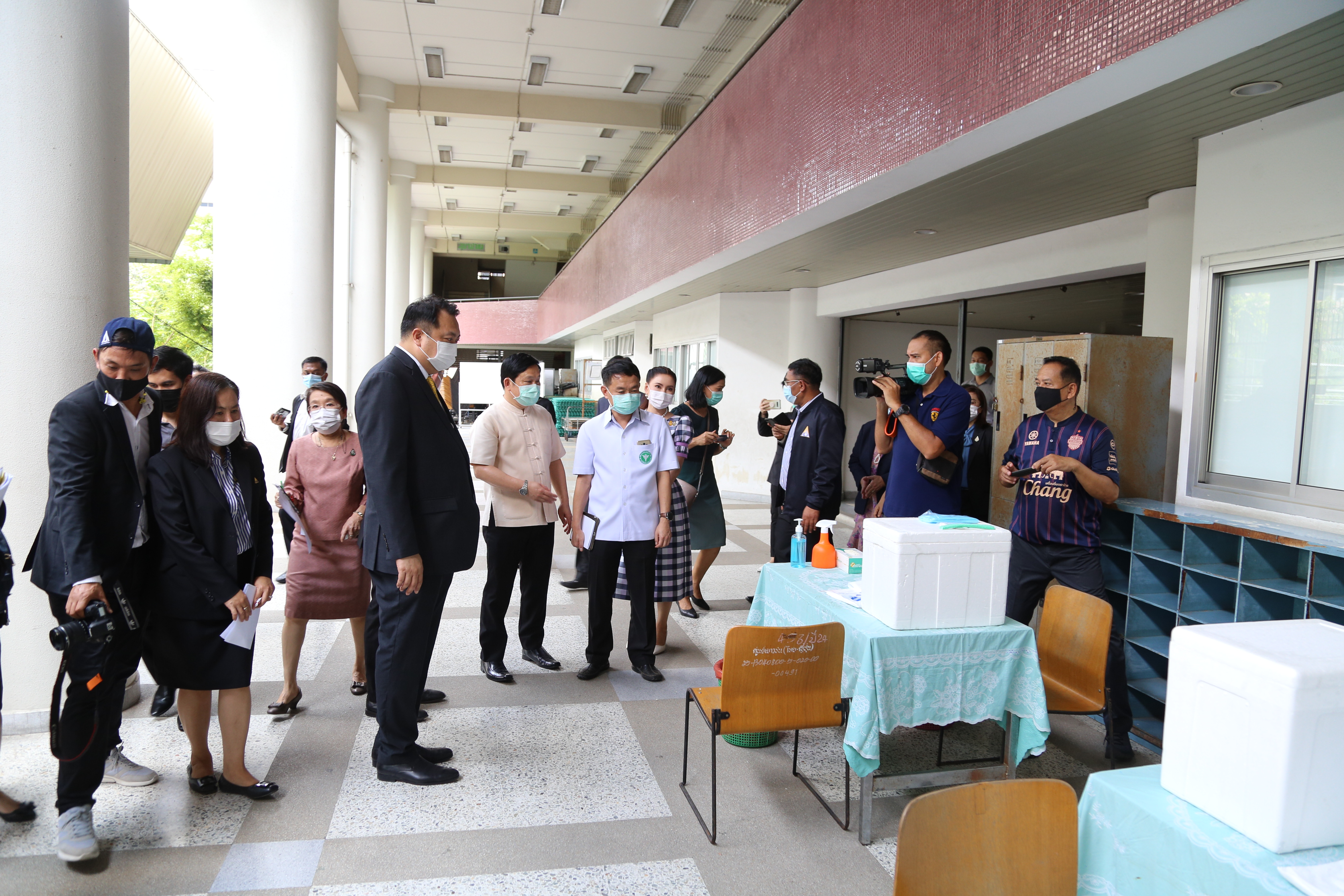 Labour Minister Mr. Suchart Chomklin and committee visited the West Sports Building 1, Bangkok Youth Center (Thai-Japan), Din Daeng, Bangkok, to check the preparation of the facility for use as a channel for proactive Covid-screening for insured persons in the social security system under Section 33, 39 and 40 located in Bangkok. The services will help reduce congestion and facilitate screenings, starting Saturday, April 17.