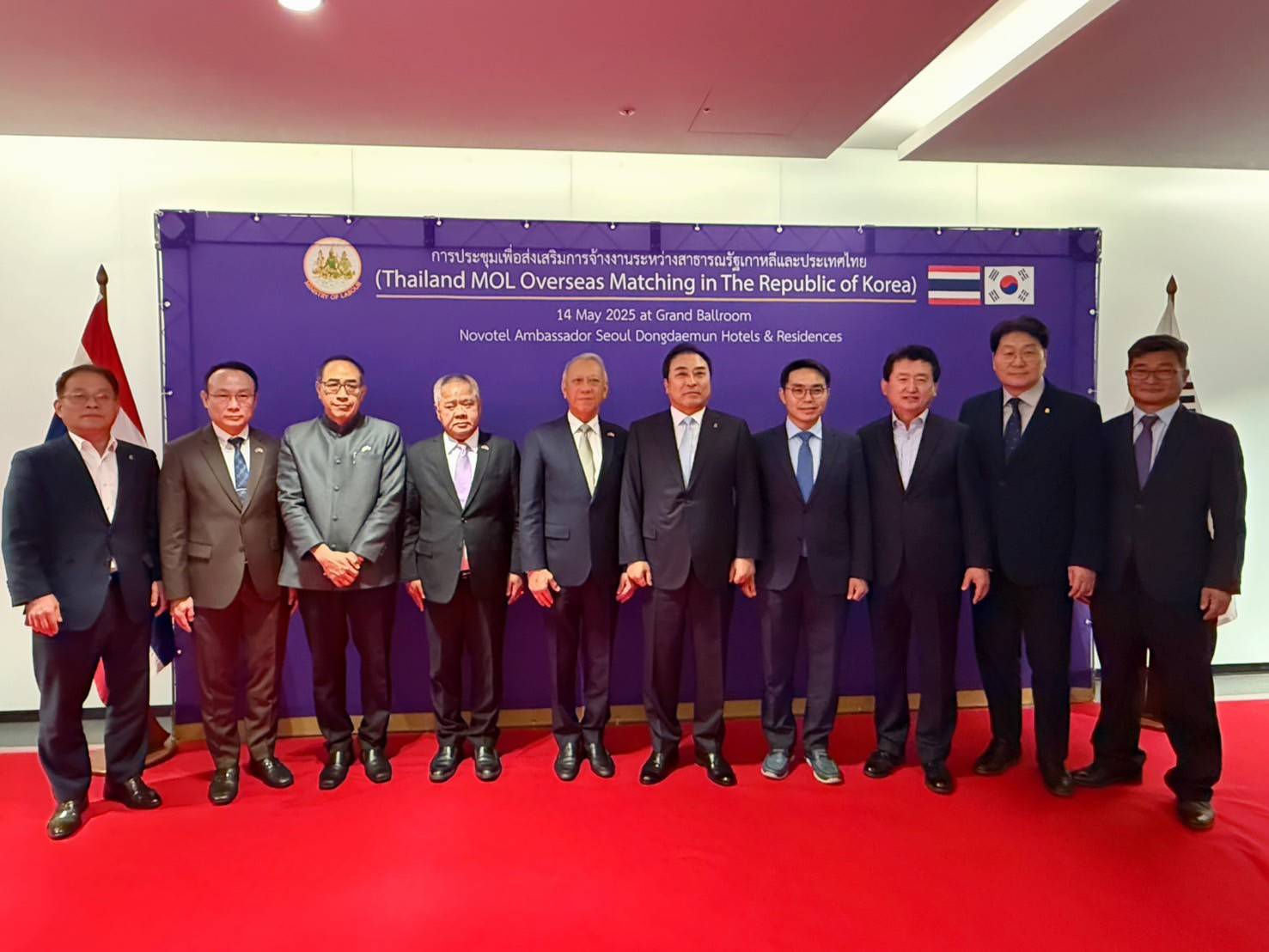 May 14, 2025 – Mr. Phiphat Ratchakitprakarn, Minister of Labour, Mr. Boonsong Thapchaiyut, Permanent Secretary of Labour, Mr. Somchai Morakotsriwan, Director-General of the Department of Employment, and other senior officials, visited the Republic of Korea to lead the “Thailand MOL Overseas Matching in the Republic of Korea” project in Seoul. The project aims to open new labour markets for Thai workers and promote legal overseas employment.