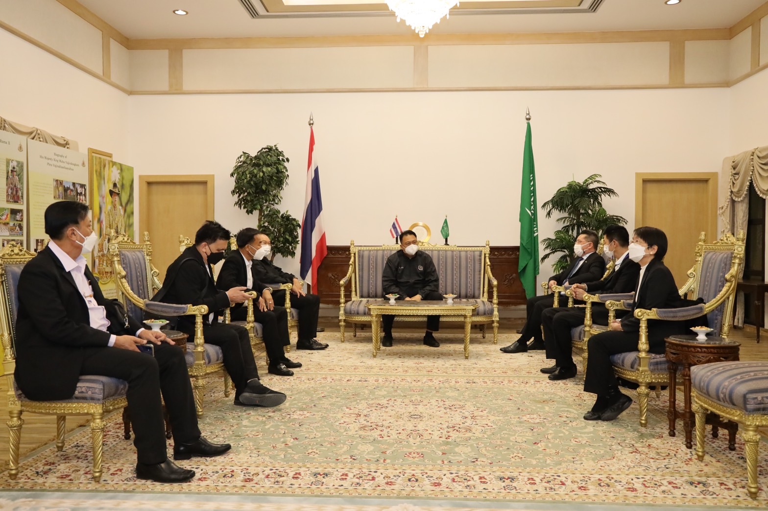 Mr. Suchart and the delegation met and encouraged the Thai Labour Office staff in Riyadh and discussed official matters with Mr. Sathon Kasemsan Na Ayudhya, Charge d’affaires to Riyadh. He thanked the charge d’affaires for taking care of the ambassadors, counselors, and staff of the Labour Department and providing advice and support to the operations of the Labour Department, which is an agency under the Ministry of Labour that is stationed in Riyad. They have also helped look after Thai workers in Saudi Arabia to have a proper life. In addition, he thanked the Ministry of Foreign Affairs for supporting the signing of this labour agreement. The effort aims to employ Thai workers following international labour obligations between the two countries. He asked for cooperation from the Saudi Arabian authorities to help monitor the fight against human trafficking, protect employers’ and workers’ rights, and enforce regulations for a fair employment contract, ensuring workers receive wages, benefits, and statutory entitlements.