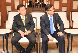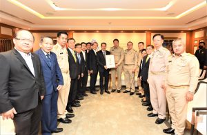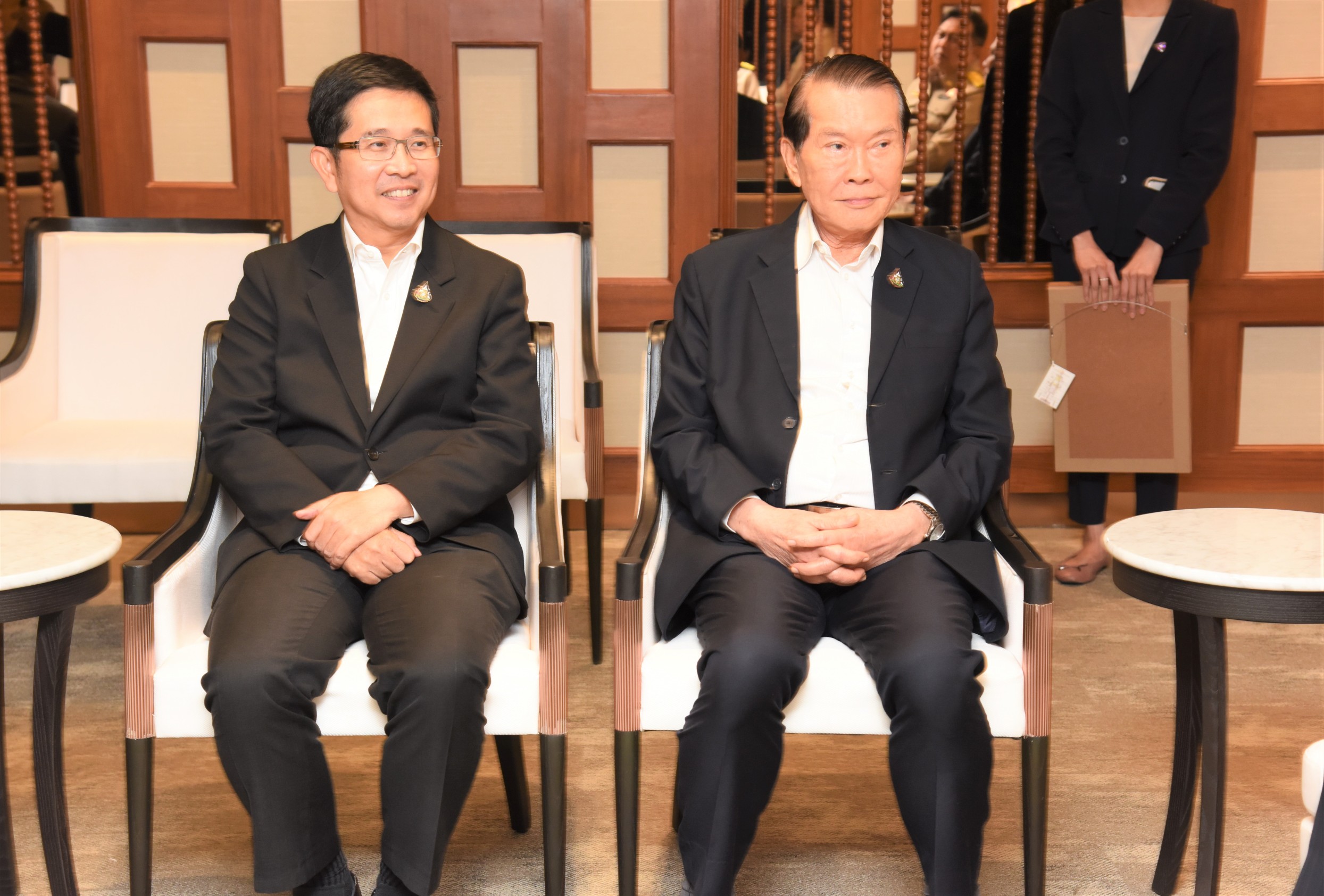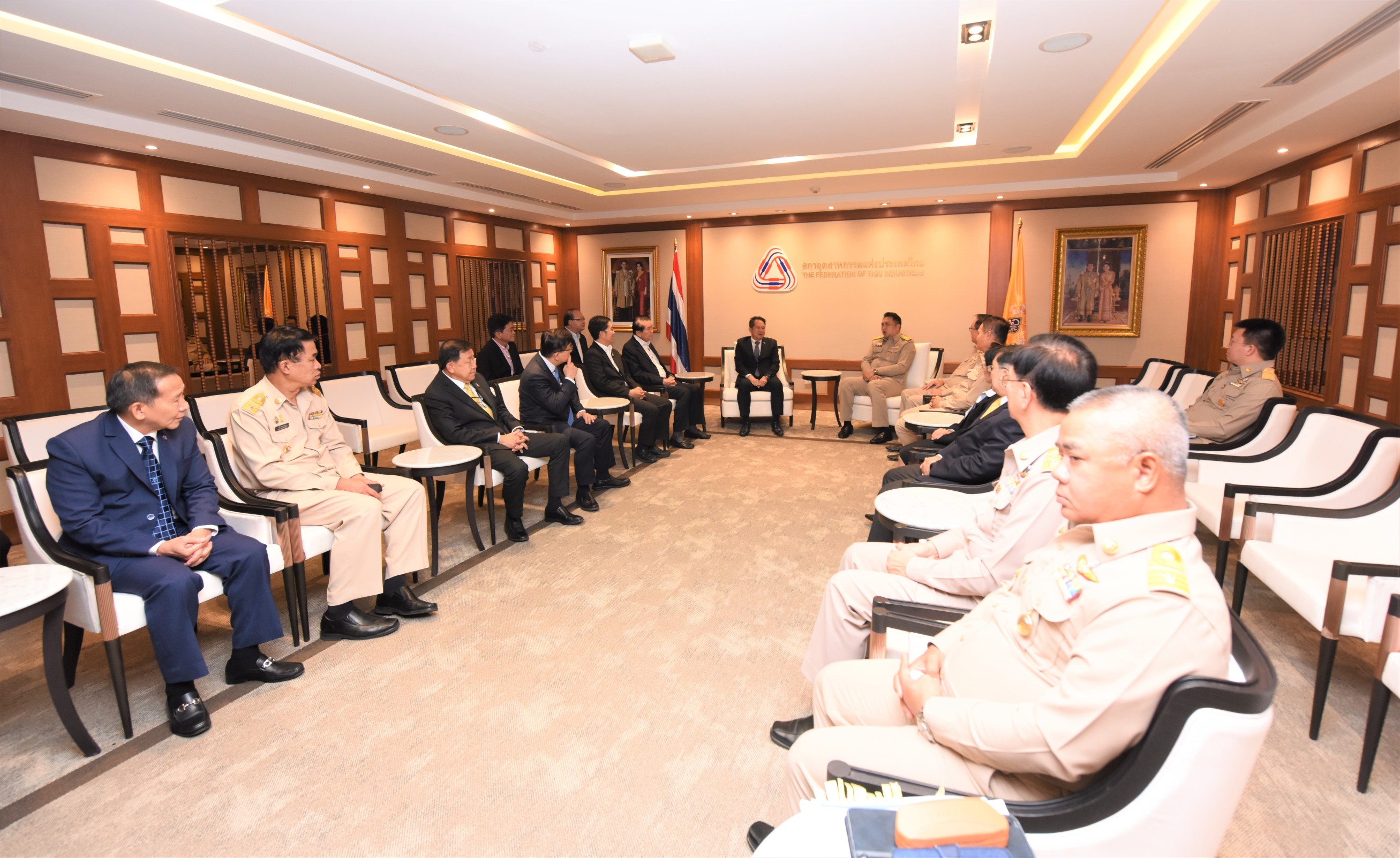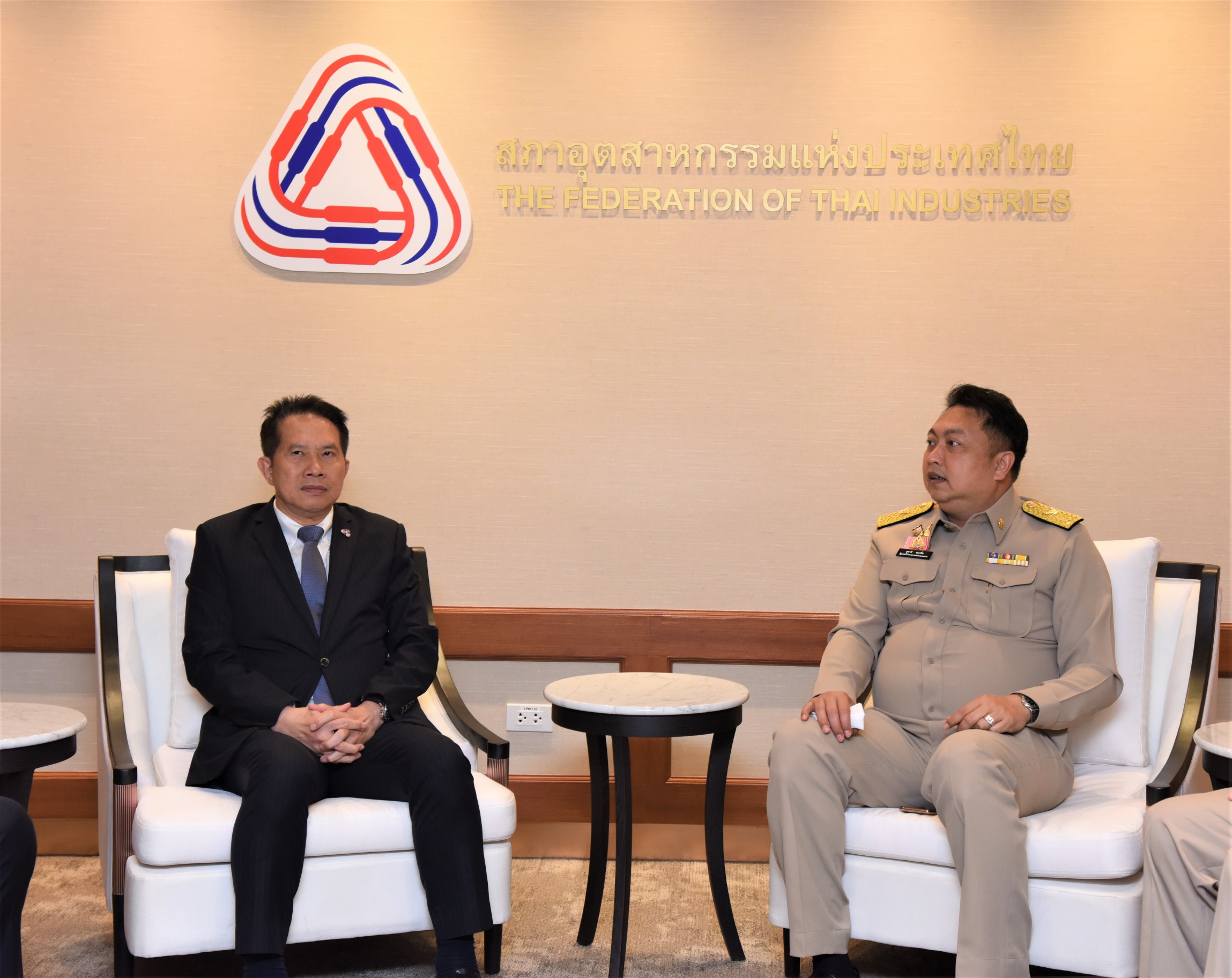 On October 19, 2020, at 15.30 hours, Labour Minister Mr. Suchart Chomklin, Permanent Secretary of Labour Mr. Suthi Sukosol, and the Ministry of Labour’s executives joined a discussion with the Chairman of the Federation of Thai Industries Mr. Suphan Mongkolsuthee and committee, to acknowledge the Ministry of Labour’s policies on solving labour issues during Covid-19, and after the Covid-19 situation. The meeting also discussed cooperation between the government and the private sector in supporting workers sustainably, which took place at the reception room, 8th floor, Federation of Thai Industries.