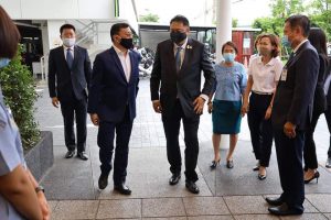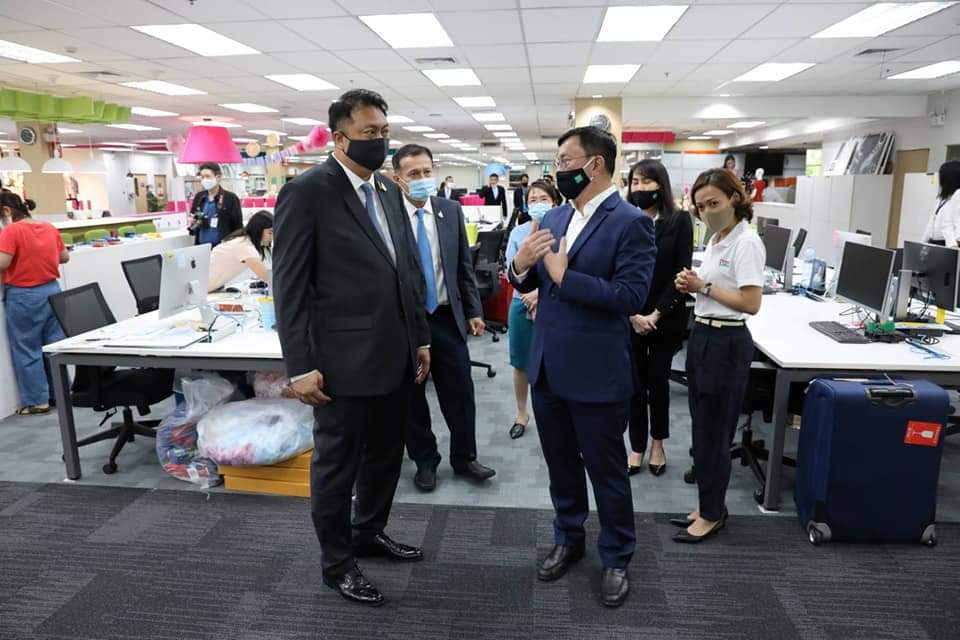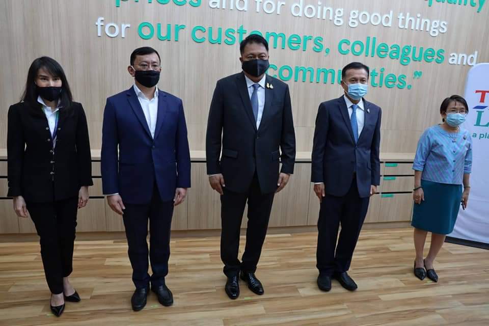 On August 21, 2020, Labour Minister Mr. Suchart Chomklin met with Chairman of the Executive Committee, Ek-Chai Distribution System Co., Ltd. (Tesco Lotus) Mr. Sompong Rungnirattisai, to listen to employment promotion measures. He also visited Tesco Lotus employees at the Tesco Lotus Head Office and Sukhaphiban 1 Branch, on Nawamin Road, Bueng Kum, Bangkok. Permanent Secretary of Labour Mr. Suthi Sukosol and Deputy Permanent Secretary of Labour Mrs. Theanrat Nawamawat also joined the occasion. The Labour Minister said that the government under the leadership of Prime Minister and Defense Minister General Prayuth Chan-ocha, places great importance on driving the country forward accelerating economic recovery after the Covid-19 situation eases. The government has introduced the “Uniting Thailand to Build a Nation” policy, with the goal of joining forces from all sectors to come together to plan and determine the future of Thailand. From now on, the government will have to work with all sectors at all levels in society to get involved and have a greater role in helping to determine the future of the country. The Ministry of Labour’s policy is to meet large private organizations to ask for cooperation in arranging job vacancies for workers who are in trouble and unemployed so that they can return to the employment system as soon as possible, which will help drive the economy forward.