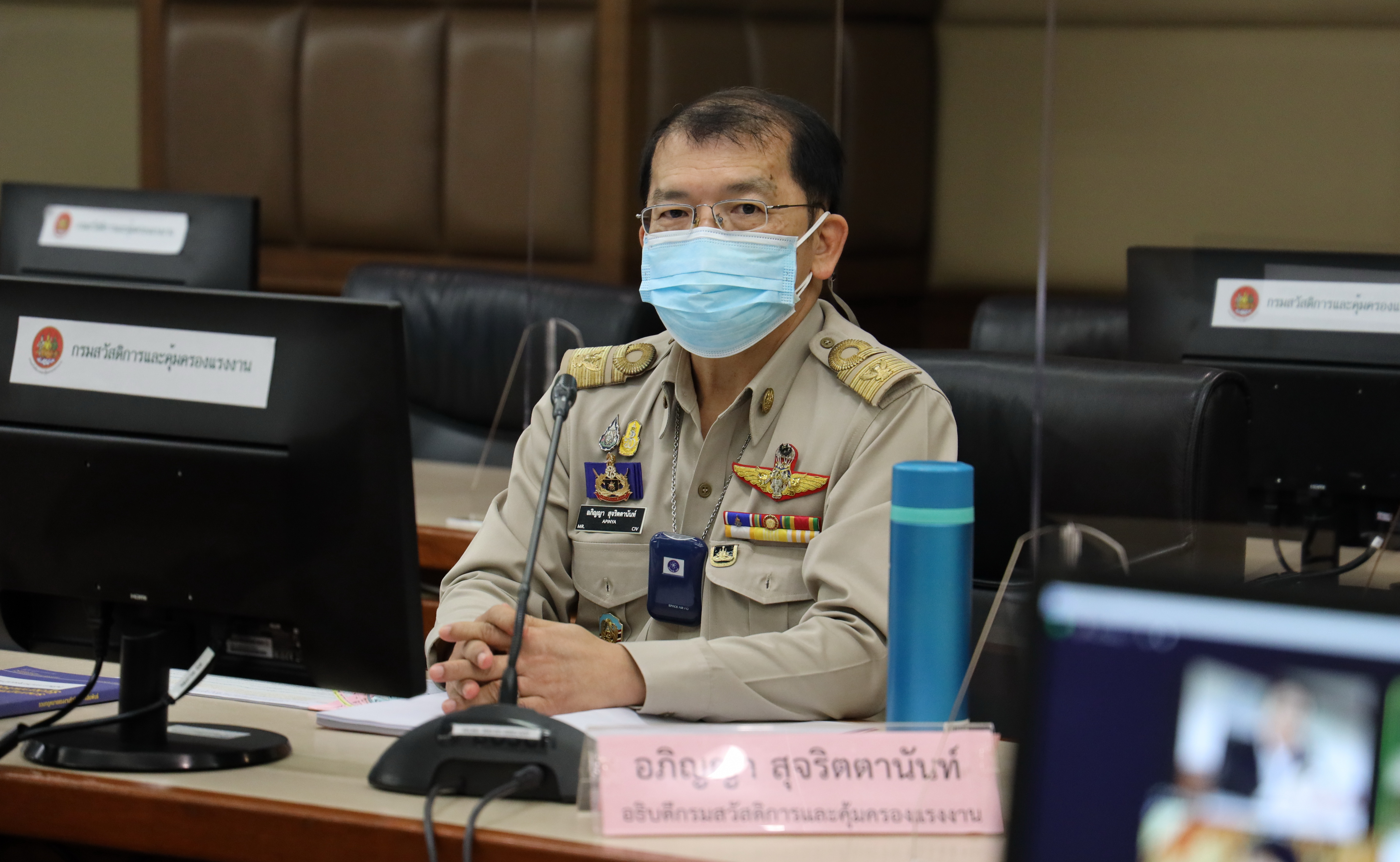 On September 13, 2021, at 14.00 hours, Deputy Permanent Secretary of Labour Ms. Aumpun Thuwawit chaired the State Enterprise Labour Relations Committee Meeting No. 6/2021 via Zoom, along with the Department of Labour Protection and Welfare’s Director-General Mr. Apinya Sucharitanan, government representatives, employers and employee representatives, and relevant officials. The meeting considered improving the welfare related to motorcycles for use in off-site work for employees of the Metropolitan Waterworks Authority and setting the criteria for considering special welfare for employees working in the risky areas of the southern border provinces. The meeting took place at the Prof. Nikom Chandravithu meeting room, 5th floor, Department of Labour Protection and Welfare, Ministry of Labour.