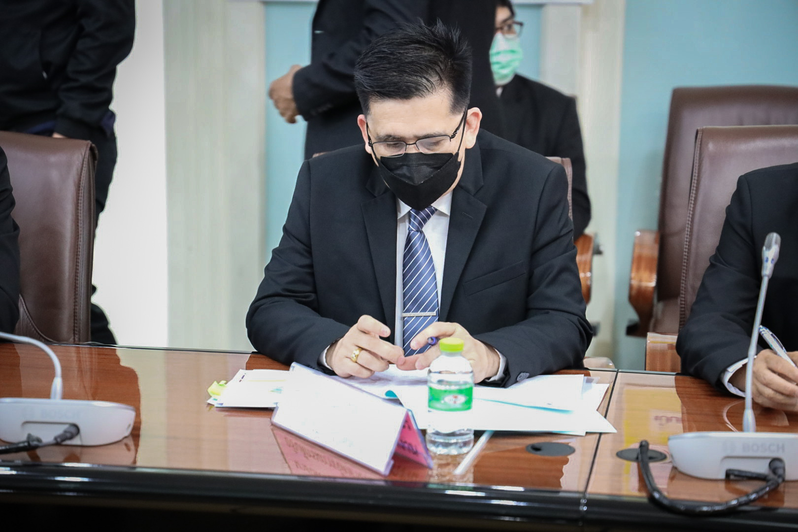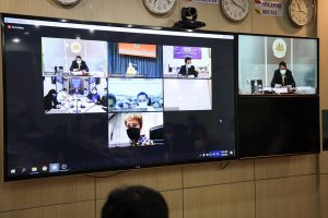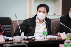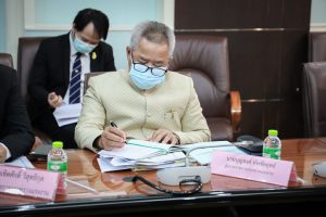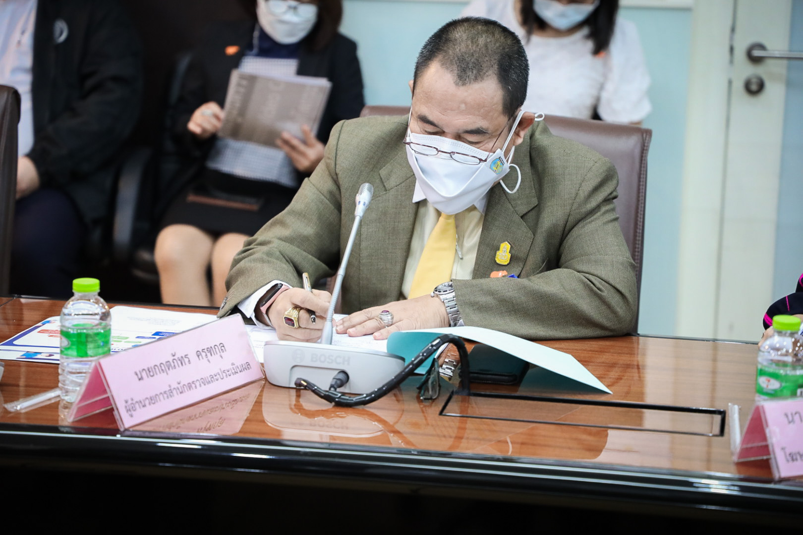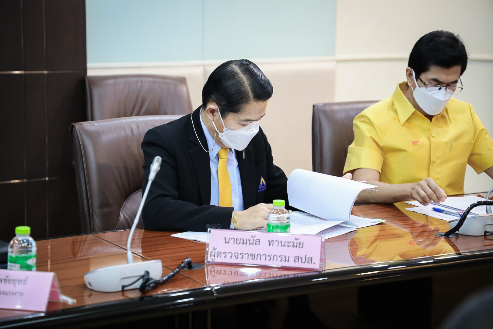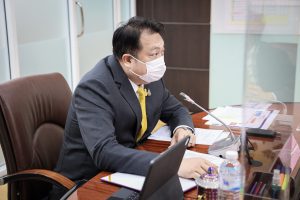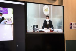On July 30, 2021, at 10.00 hours, Labour Minister Mr. Suchart Chomklin chaired the meeting to monitor the COVID-19 situation in Nonthaburi, Pathum Thani, and Samut Sakhon, which took place via Zoom. Assistant to the Labour Minister Mr. Surachai Chaitrakulthong, the Labour Minister’s Secretariat Mr. Suthep Chitvong, the Ministry of Labour’s Spokesperson (on politics) Mrs. Theanrat Nawamawat, Permanent Secretary of Labour Mr. Suthi Sukosol, Nonthaburi Provincial Governor Mr. Suchin Chaichumsak, Pathum Thani Provincial Governor Mr. Chaiwat Chuenkosum, Samut Sakhon Provincial Governor Mr. Wirasak Withitsaengsri and the Ministry of Labour’s executives also joined the occasion at the Saengsingkaew meeting room, 5th floor, Ministry of Labour.
