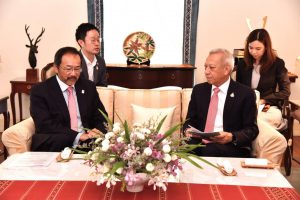 On May 15, 2024, at 11.30 hours, the Labour Minister, Mr. Phiphat Ratchakitprakarn met with the Ambassador of Japan to Thailand, Mr. Otaka Masato, on a courtesy call and to discuss government matters regarding labour. The Assistant to the Labour Minister, Mr. Siraphop Duangsodsri, the Secretariat to the Labour Minister, Mr. Aree Krainara, and the Department of Employment’s Director-General, Mr. Somchai Morakotsriwan, joined in the discussion at the Embassy of Japan in Thailand.