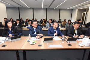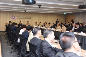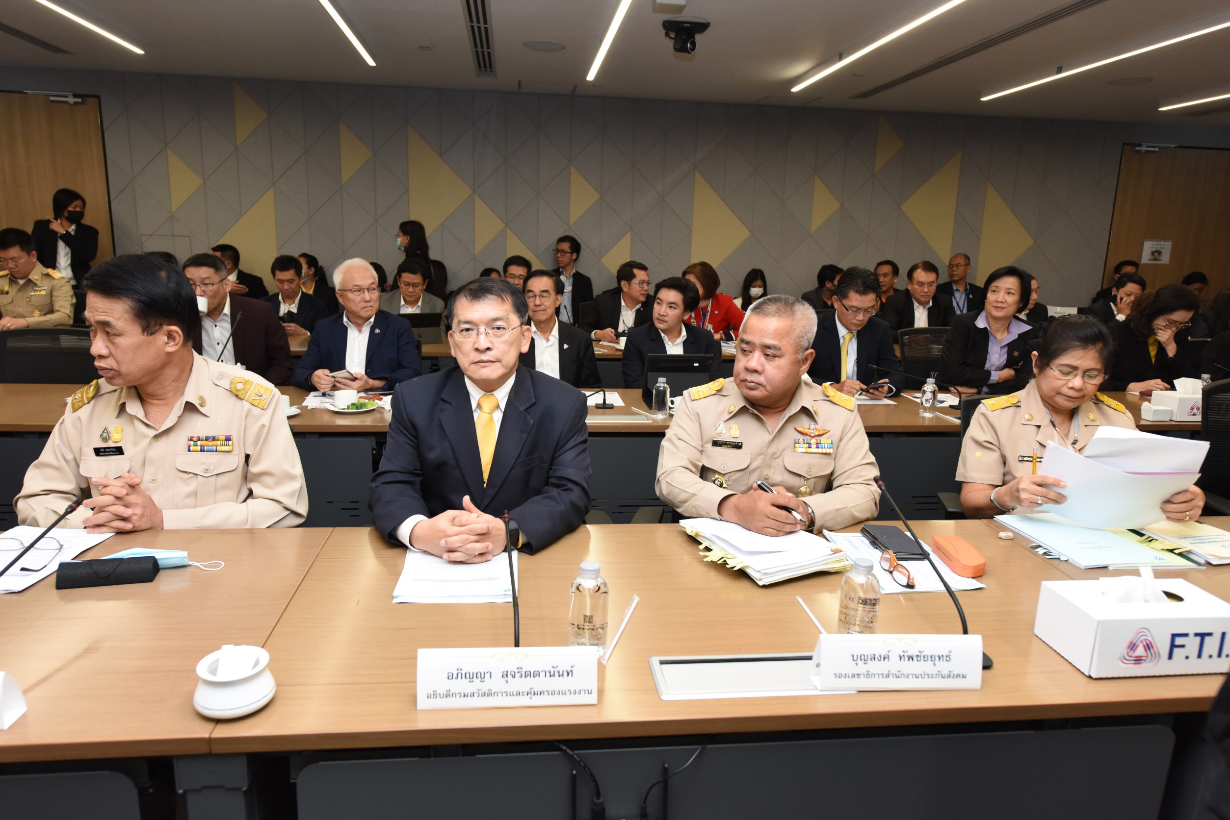 On October 19, 2020, at 16.00 hours, Labour Minister Mr. Suchart Chomklin, Permanent Secretary of Labour Mr. Suthi Sukosol, and the Ministry of Labour’s executives joined a discussion with the Chairman of the Federation of Thai Industries Mr. Suphan Mongkolsuthee and committee, to acknowledge the Ministry of Labour’s policies on solving labour issues during Covid-19, and after the Covid-19 situation. The meeting also discussed cooperation between the government and private sector in supporting workers sustainably, which took place at the Passion 802 meeting room, 8th floor, Federation of Thai Industries.