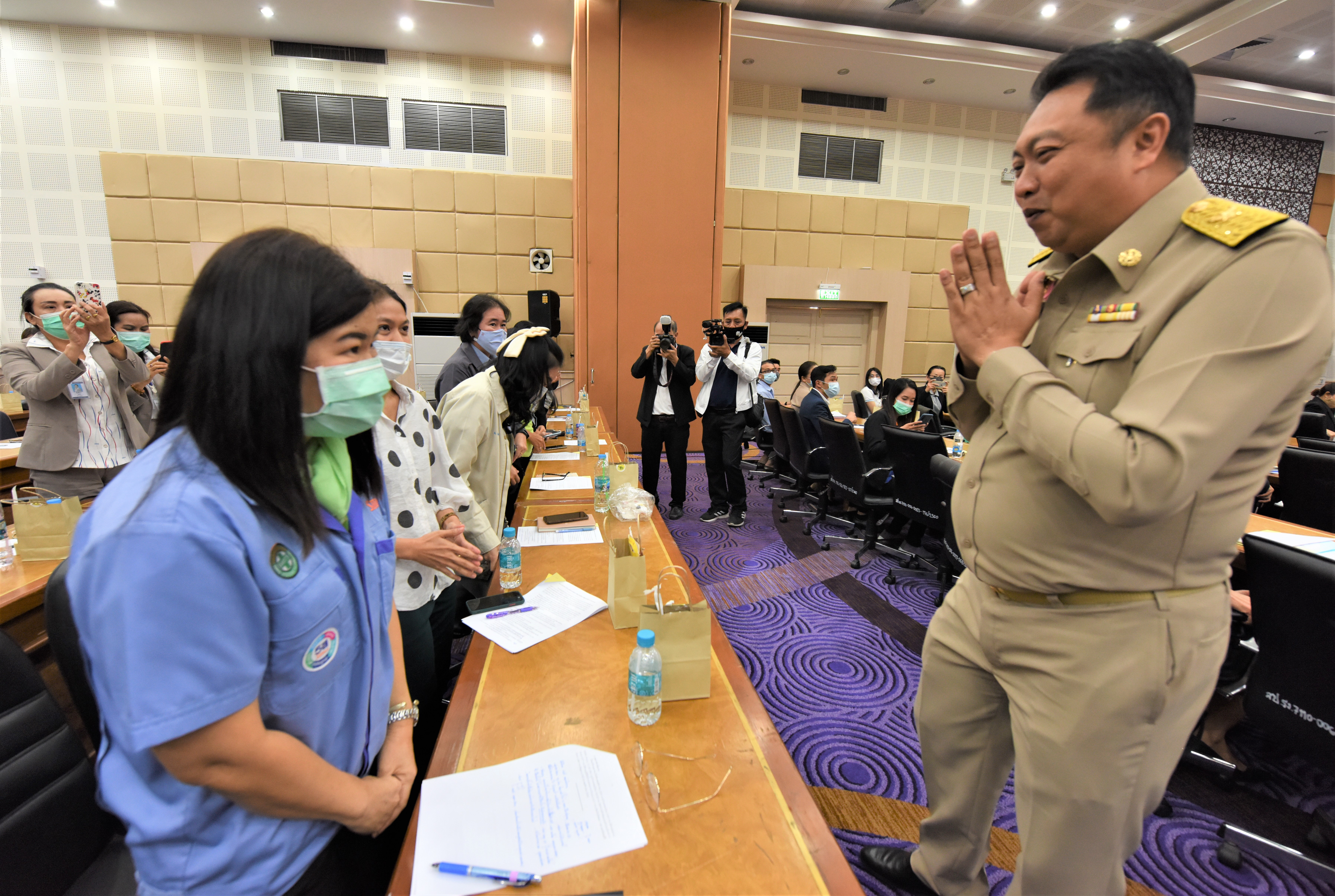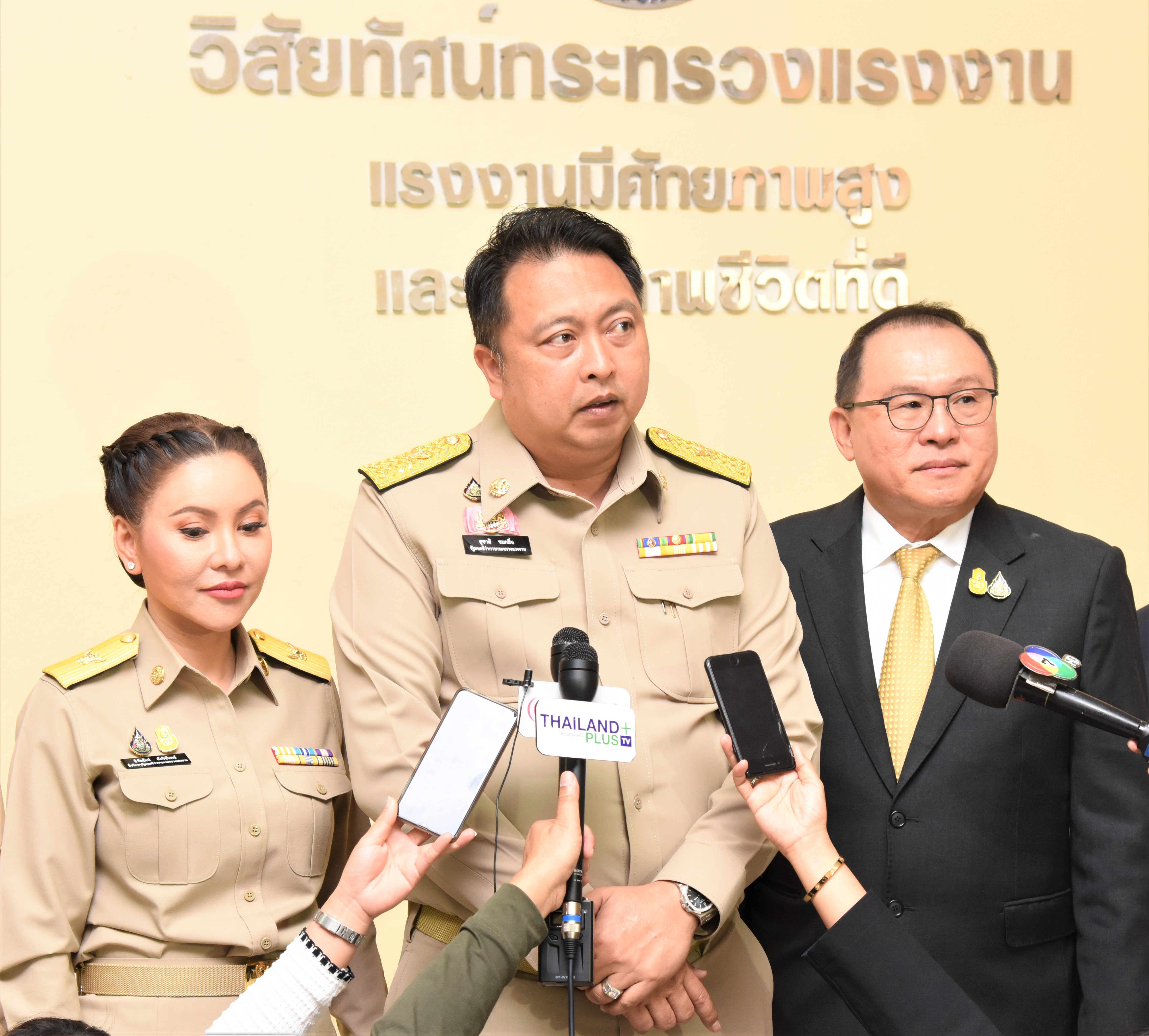 On November 30, 2020, at 13.30 hours, the Labour Minister chaired the meeting with government agencies’ heads under the Ministry of Labour in the central region to discuss the Co-payment project’s implementation. The meeting acknowledged the direction to drive the employment promotion program for new graduates by the public and private sectors and work together to create sustainability for the workforce. The meeting also shared employers’ perspectives on enhancing labour potential and employers in building economic strength and competitiveness sustainably. Assistant to the Labour Minister Mr. Surachai Chaitrakulthong, Advisor to the Labour Minister Mrs. Thiwalrat Angkinan, Permanent Secretary of Labour Mr. Suthi Sukosol, and the Ministry of Labour’s executives also joined the meeting, which took place at the Jompol P. Pibulsongkhram meeting room, Ministry of Labour.