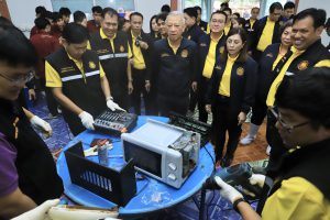 Mr. Phiphat continued that in the past, the Ministry of Labour assigned subordinate agencies to deliver consumer goods, including over 90,000 bottles of drinking water, rice, dried foods, medical supplies, and relief bags, to flood victims in the North and Northeastern regions. This continues to encourage and help people continuously, both in terms of supplies and knowledge of repairing electrical appliances. Therefore, people who wish to receive assistance in equipment reparations should immediately notify the Department of Skill Development in the province.