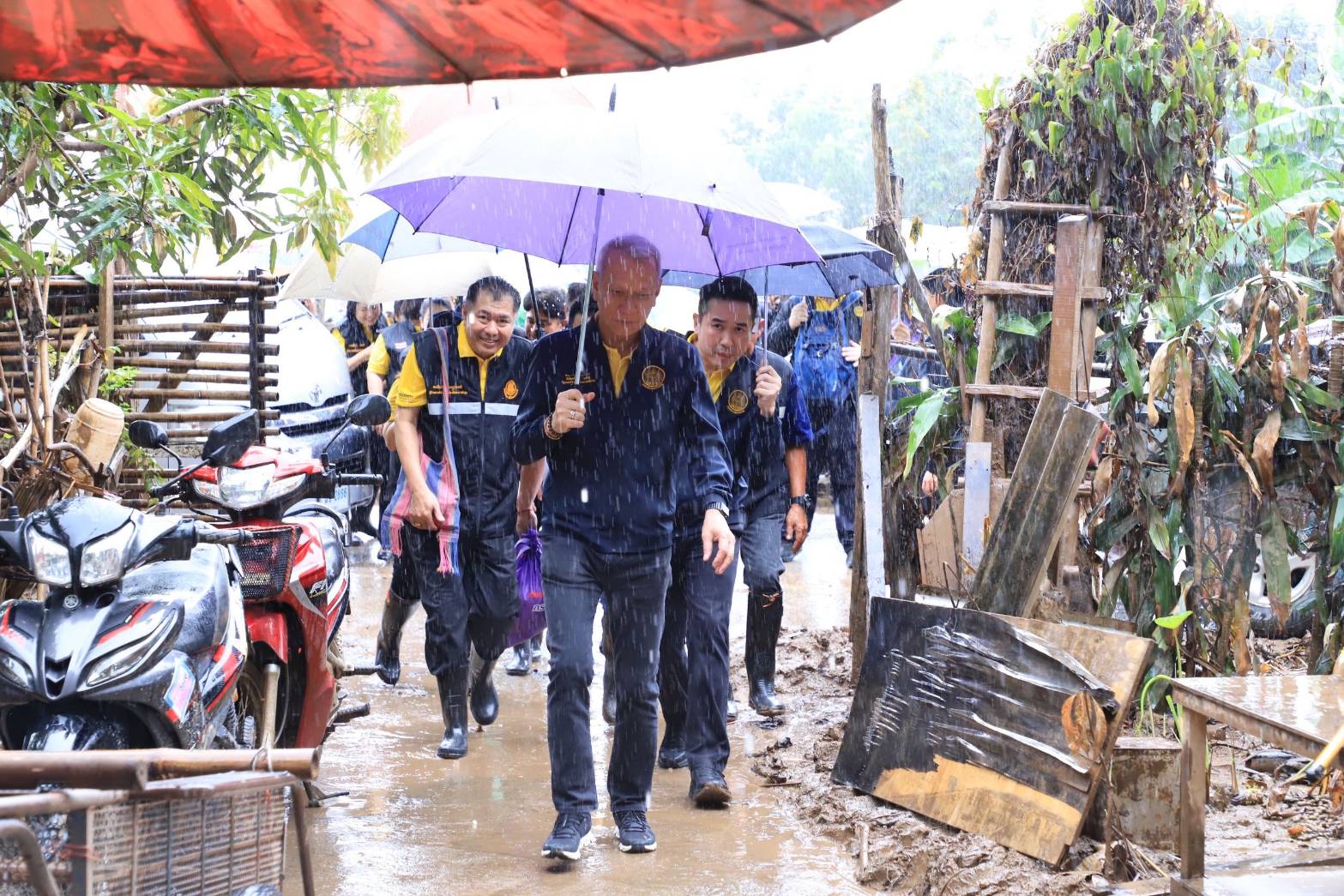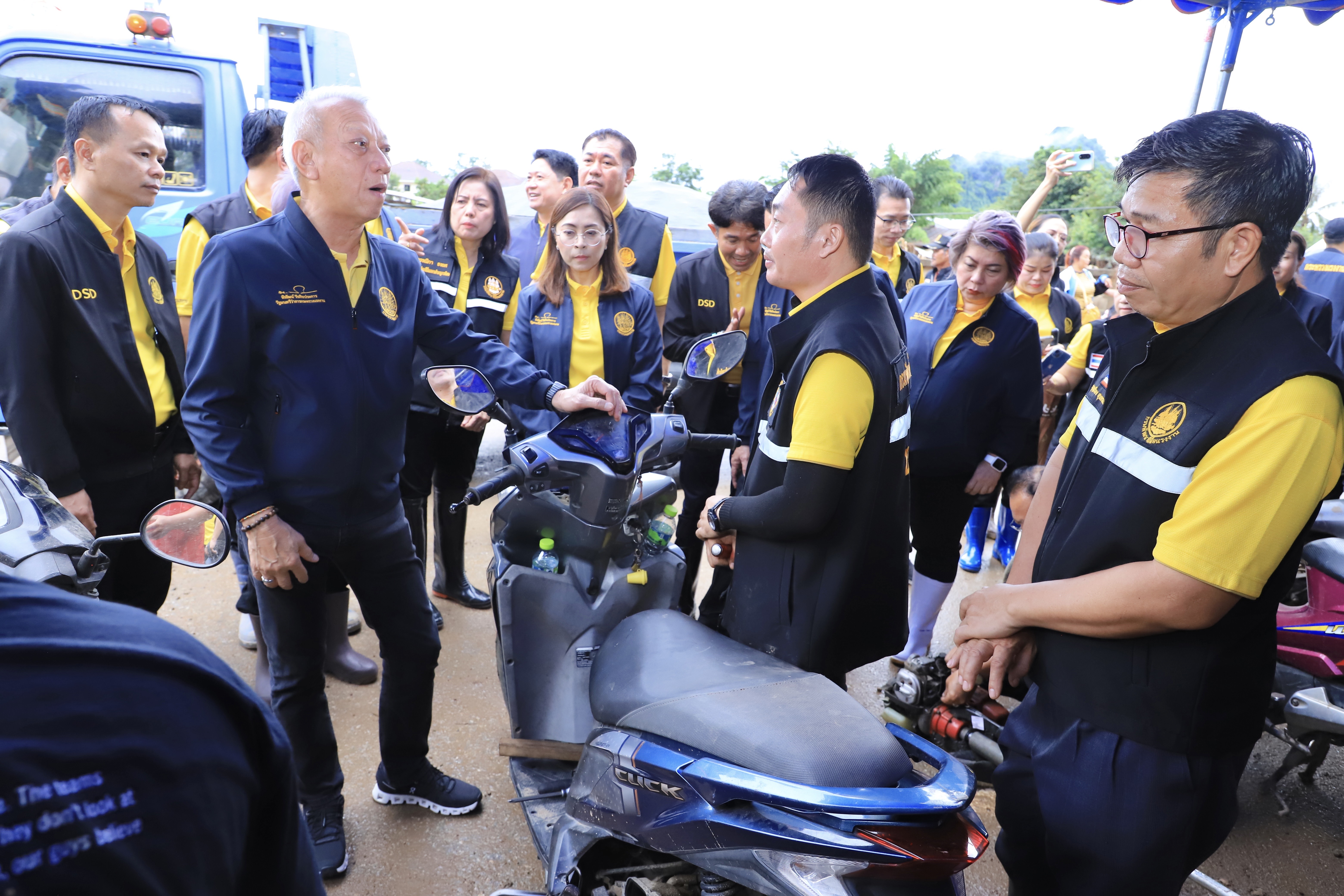 On September 25, 2024, at 10.30 hours, the Labour Minister, Mr. Phiphat Ratchakitprakarn, reported that today, he and the Department of Skill Development’s Director-General, Ms. Bubpha Rueangsud, the Ministry of Labour’s Inspector-General, Mr. Santi Nantasuwan, the Ministry of Labour’s executives, and the Deputy Mayor of Chiang Rai Municipality, Ms. Bang-on Malidin, and labour network officers, had the opportunity to visit Moo. 3, Rim Kok Subdistrict, Mueang District, Chiang Rai Province, where the rain continued to fall. In the Thawi Rat community, approximately 720 households have experienced flooding over 2 meters high. To make matters worse, a large amount of mud flowed into houses and remained. When the water level receded, electrical systems in the house, equipment used for work, motorcycles, etc., were still damaged. He said that the Ministry of Labour is concerned about the lives of those who still have to work and take care of their families to be able to get through this crisis. Today, he led a team of skilled workers from the Department of Skill Development under the Ministry of Labour in the northern region of Lampang, Lamphun, Phayao, Phrae, Nan, Uttaradit, and Chiang Mai to work with the skill development network in Chiang Rai to plan short-term and long-term assistance. Initially, consumer goods were given to the people, along with repairs to electrical appliances and basic knowledge on repairing electrical appliances in the home for the safety of everyone. There were five centers set up to report and receive repairs from the Department of Skill Development throughout October 2024 in Chiang Rai Province.