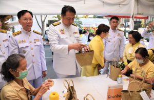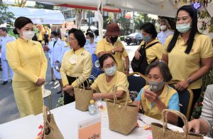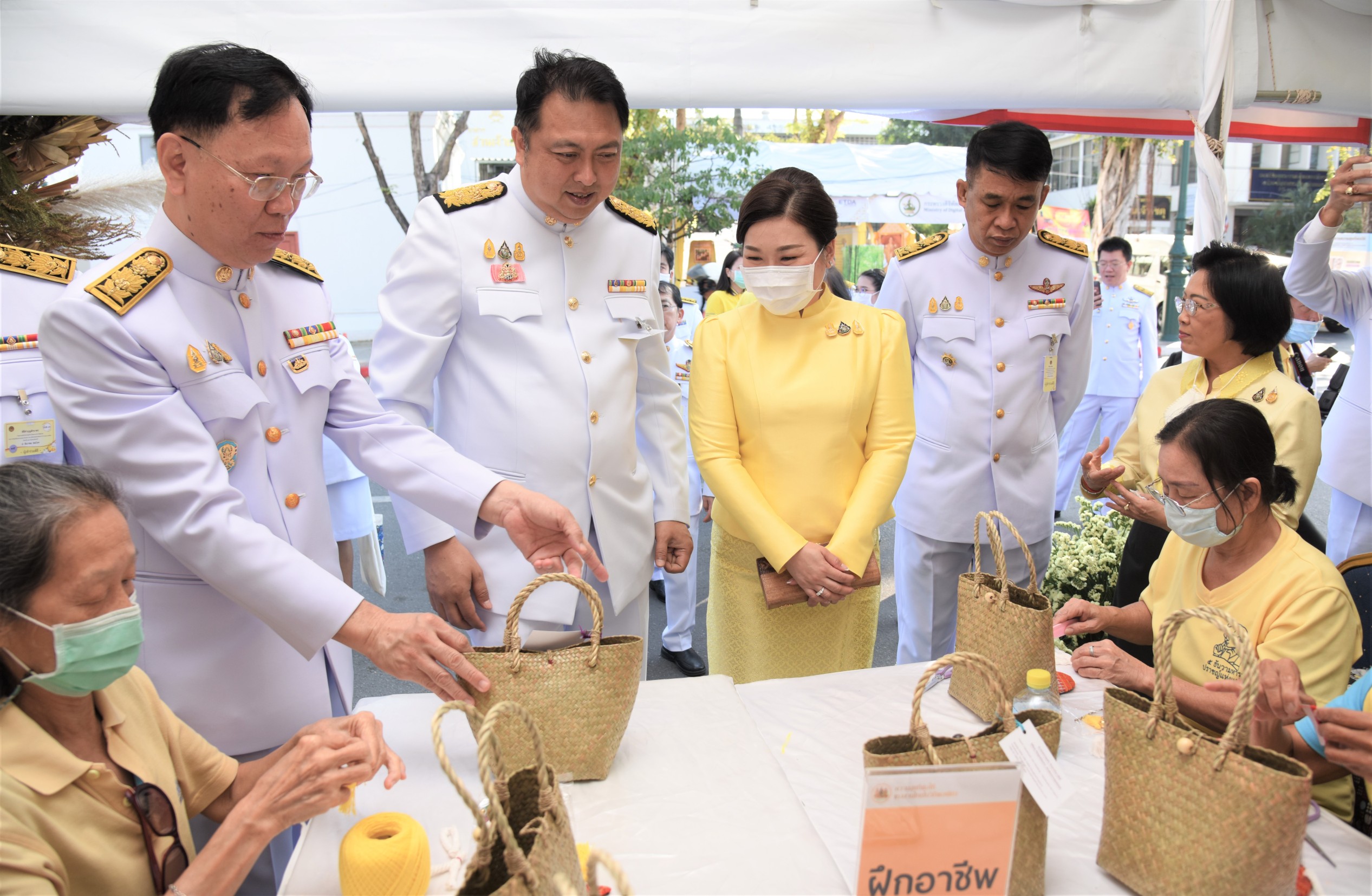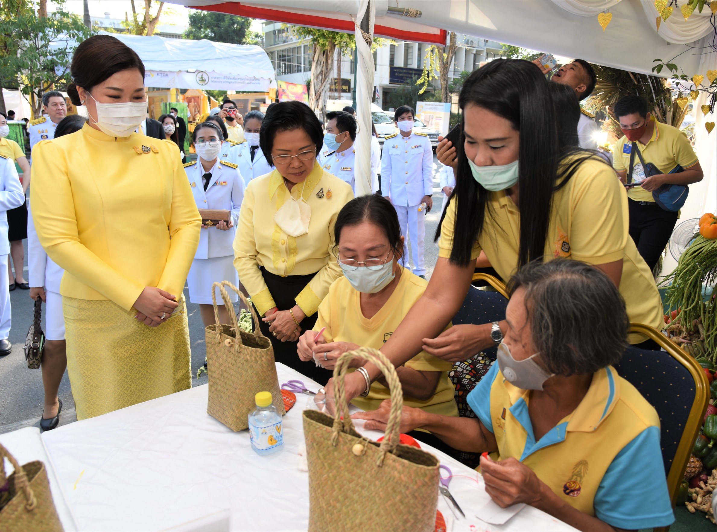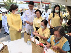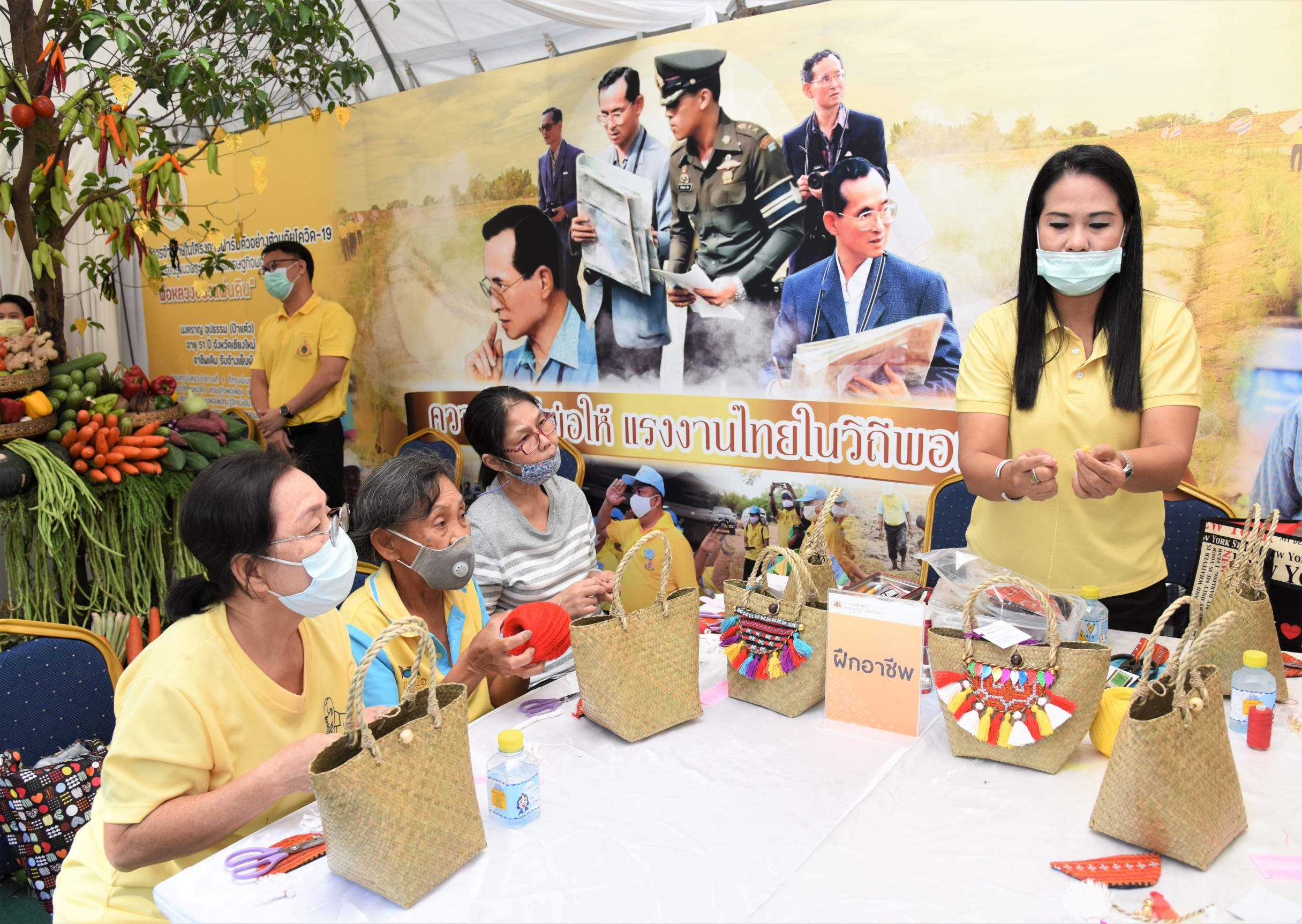 The Ministry of Labour hosted booths, which consisted of vocational training and self-employment demonstrations such as making bags from rags, cold tie-dye for bags, canvas shoes painting, making decoupage, and decorating Krajood bags, and weaving of plastic baskets. It also provides consulting services for labour/labour lawyers, for example, providing knowledge about building security with Social Security Section 40 and giving general advice on social security.