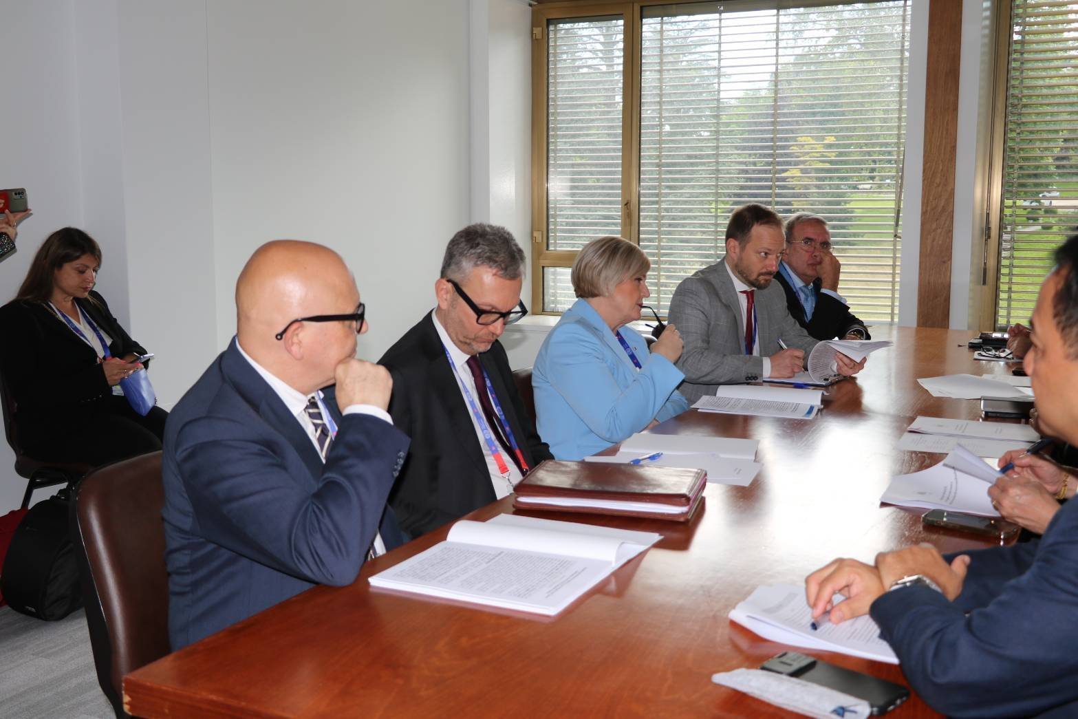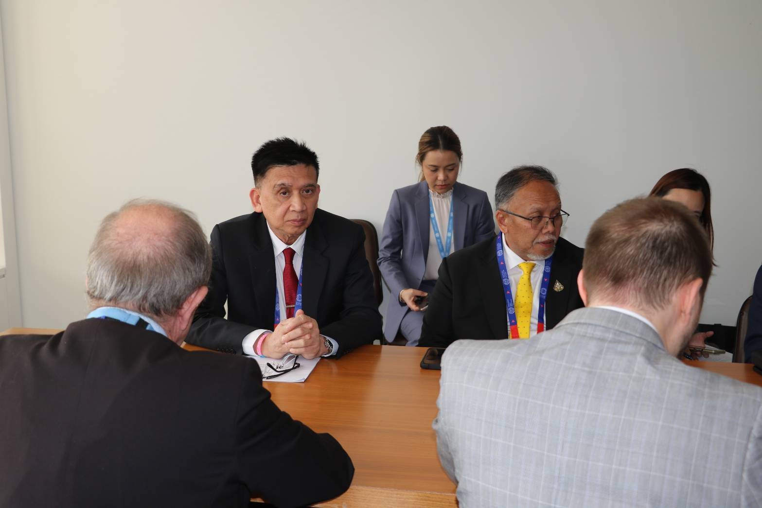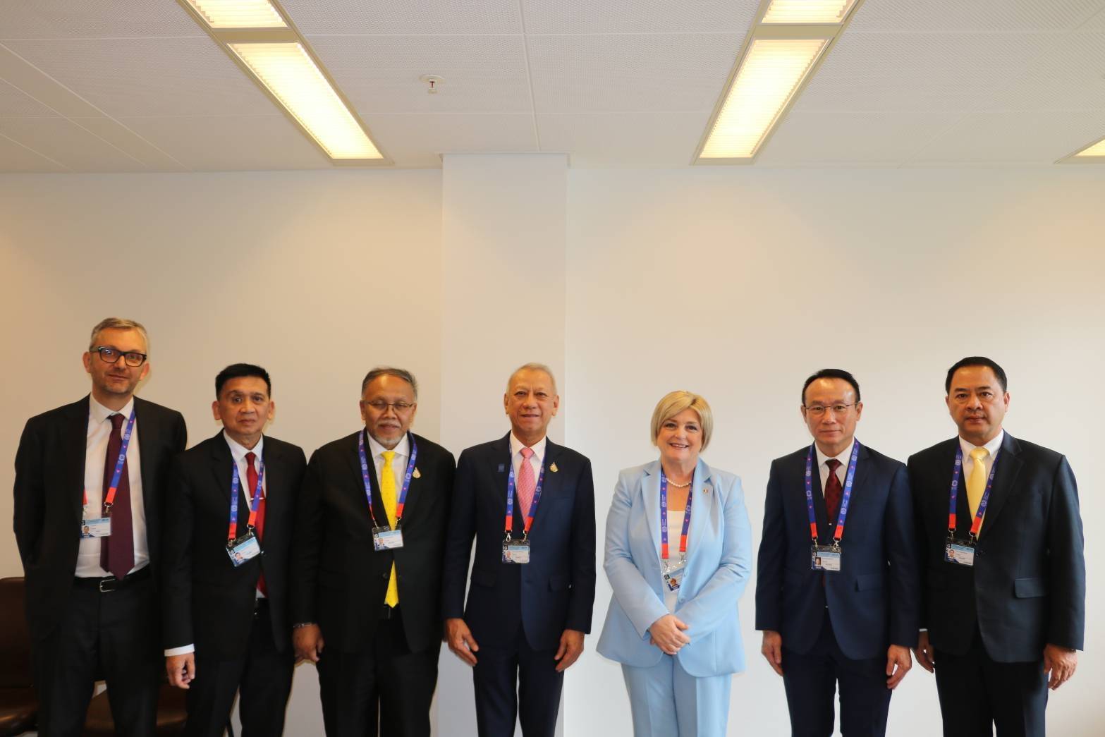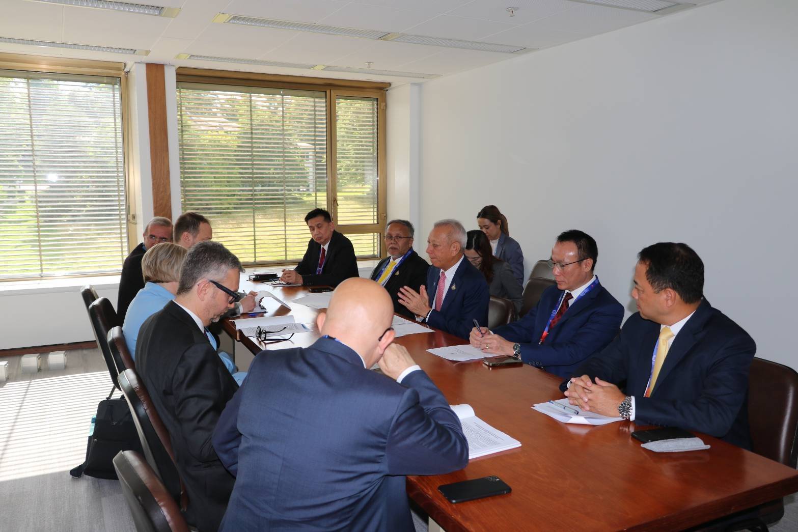 The Labour Minister, Mr. Phiphat Ratchakitprakarn joined bilateral discussions to strengthen labour cooperation with the Italian Minister of Labour and Social Policies, Marina Elvira Calderone. The discussions took place at the United Nations Building in Geneva, Switzerland. The Assistant to the Labour Minister, Mr. Siraphop Duangsodsri, the Permanent Secretary of Labour, Mr. Pairoj Chotikasathien, the Department of Employment’s Director-General, Mr. Somchai Morakotsriwan, the Ministry of Labour’;s Inspector-Generals, Mr. Samat Pattamasukon, and the Ministry of Labour’s executives joined the occasion.