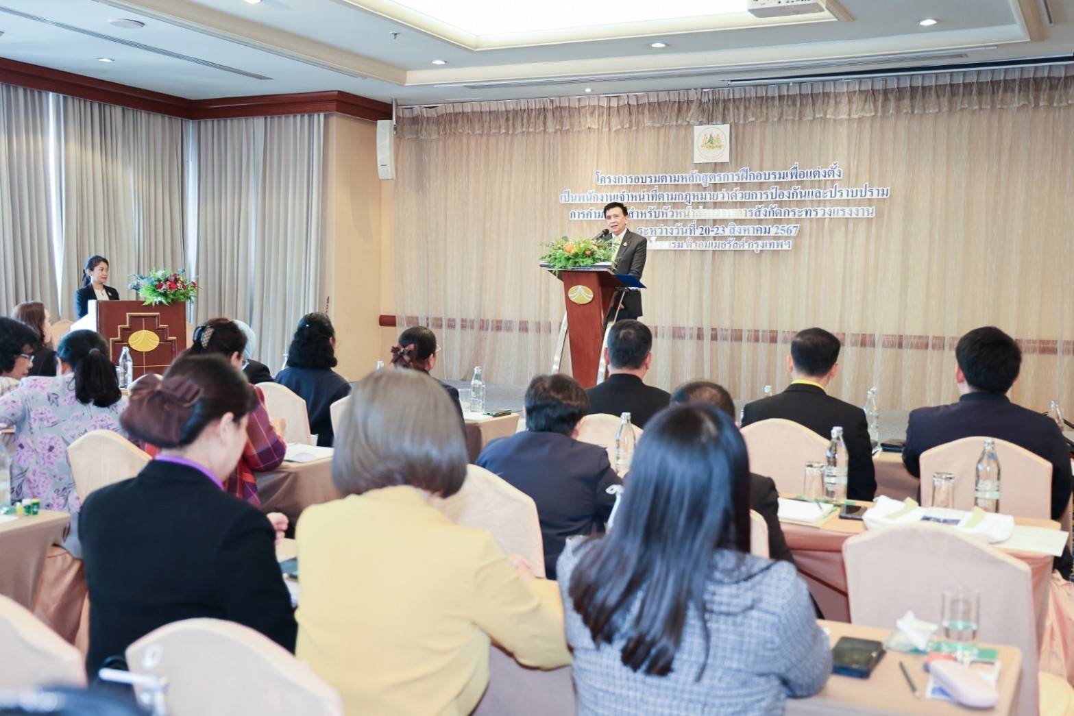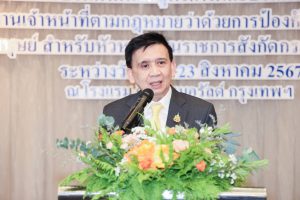 On August 20, 2024, the Ministry of Labour’s Spokesperson, Mr. Phumiphat Mueanchan, said that the Labour Minister, Mr. Phiphat Ratchakitprakarn, gives importance to raising the standards of protection and care and preventing Thai and foreign workers from becoming victims of human trafficking. Today, the Spokesperson was assigned to preside over the opening ceremony of the project to develop the potential to prevent and resolve problems of forced labour or services and human trafficking in labour for labour graduates and labour volunteers to expand the network’s work in Surat Thani Province for the 2024 fiscal year. The Surat Thani Provincial Labour Officer, Ms. Aree Karthiro, gave a report. Member of the House of Representatives of Surat Thani Province, Mr. Pichai Chompoophon, Heads of Departments under the Ministry of Labour in Surat Thani Province, labour graduates and labour volunteers of Surat Thani Province, and trainees joined in giving a welcome at the Diamond Plaza Hotel, Mueang District, Surat Thani Province.
