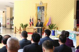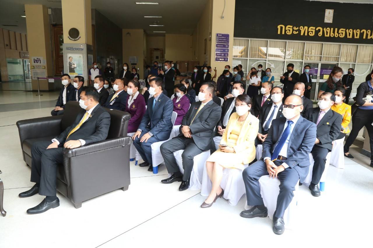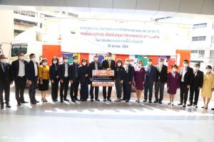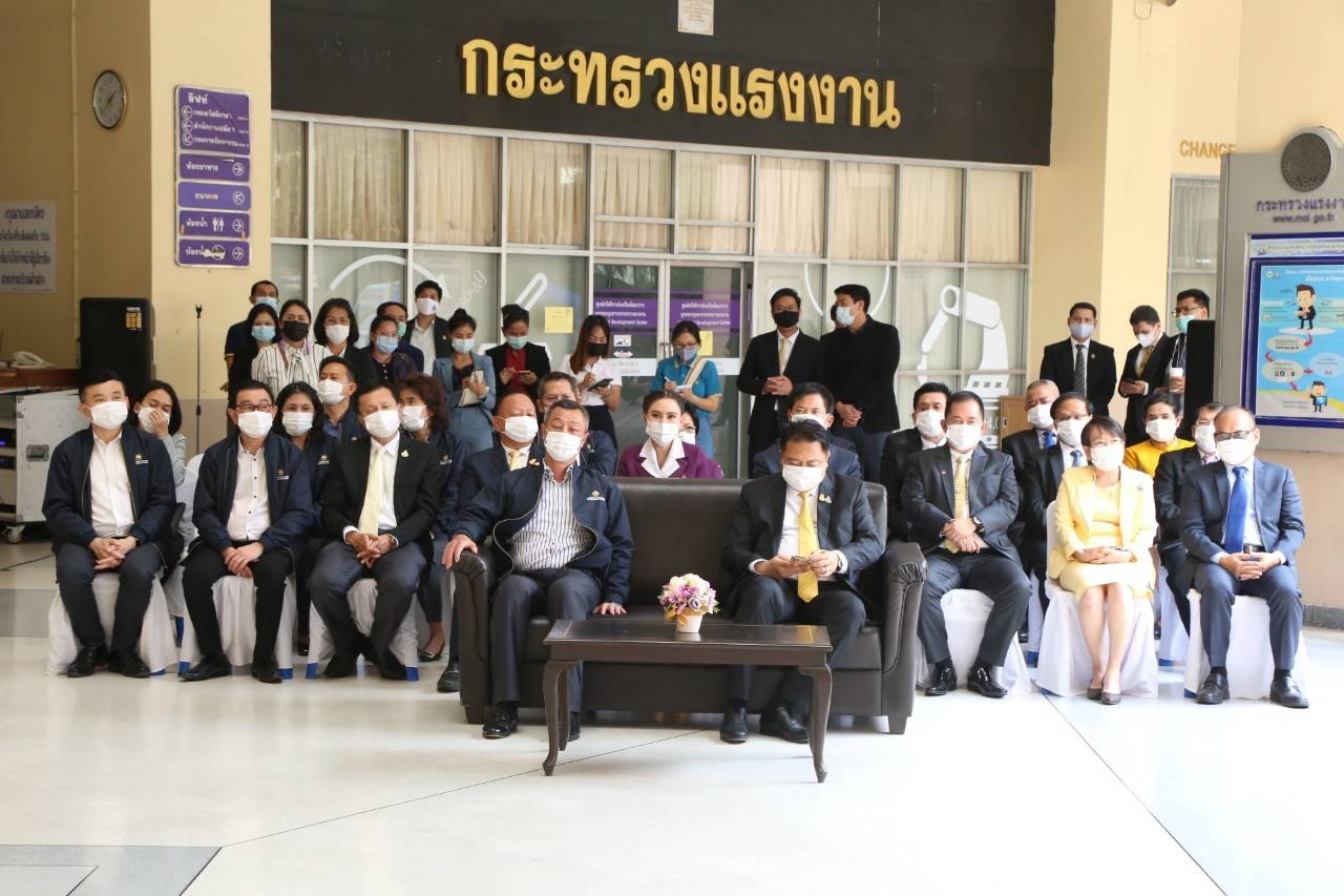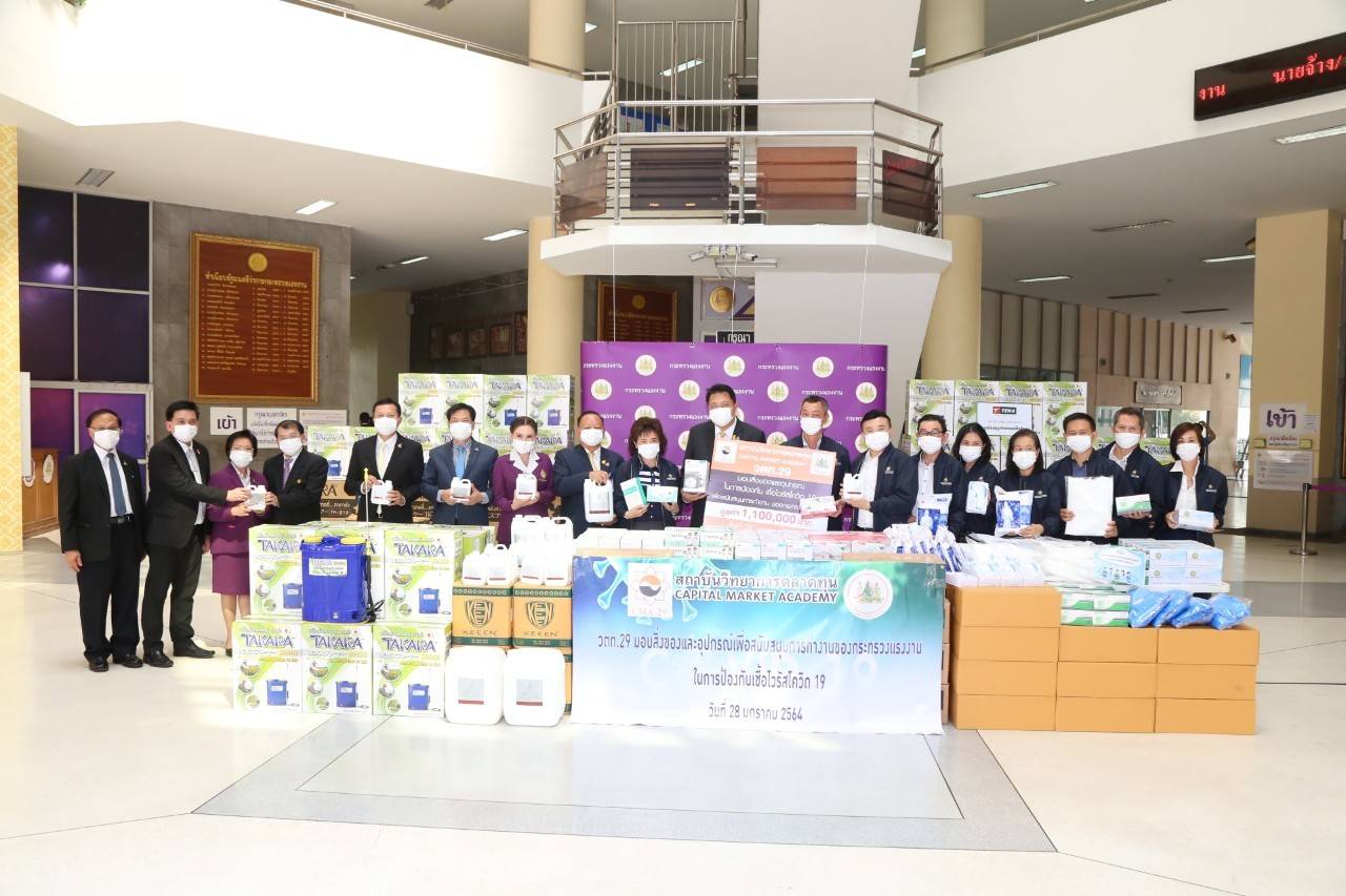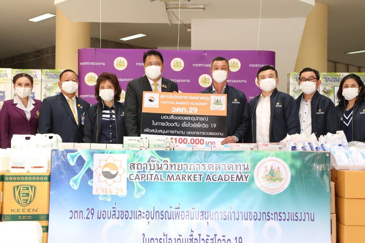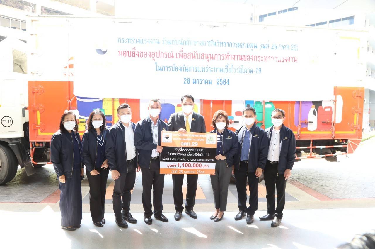 Labour Minister Mr. Suchart Chomklin welcomed the Capital Market Academy (CMA), Class 29, on an opportunity to meet and give supplies and equipment to prevent Covid-19 from being delivered to Samut Sakhon to fight Covid-19.