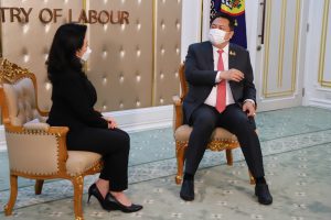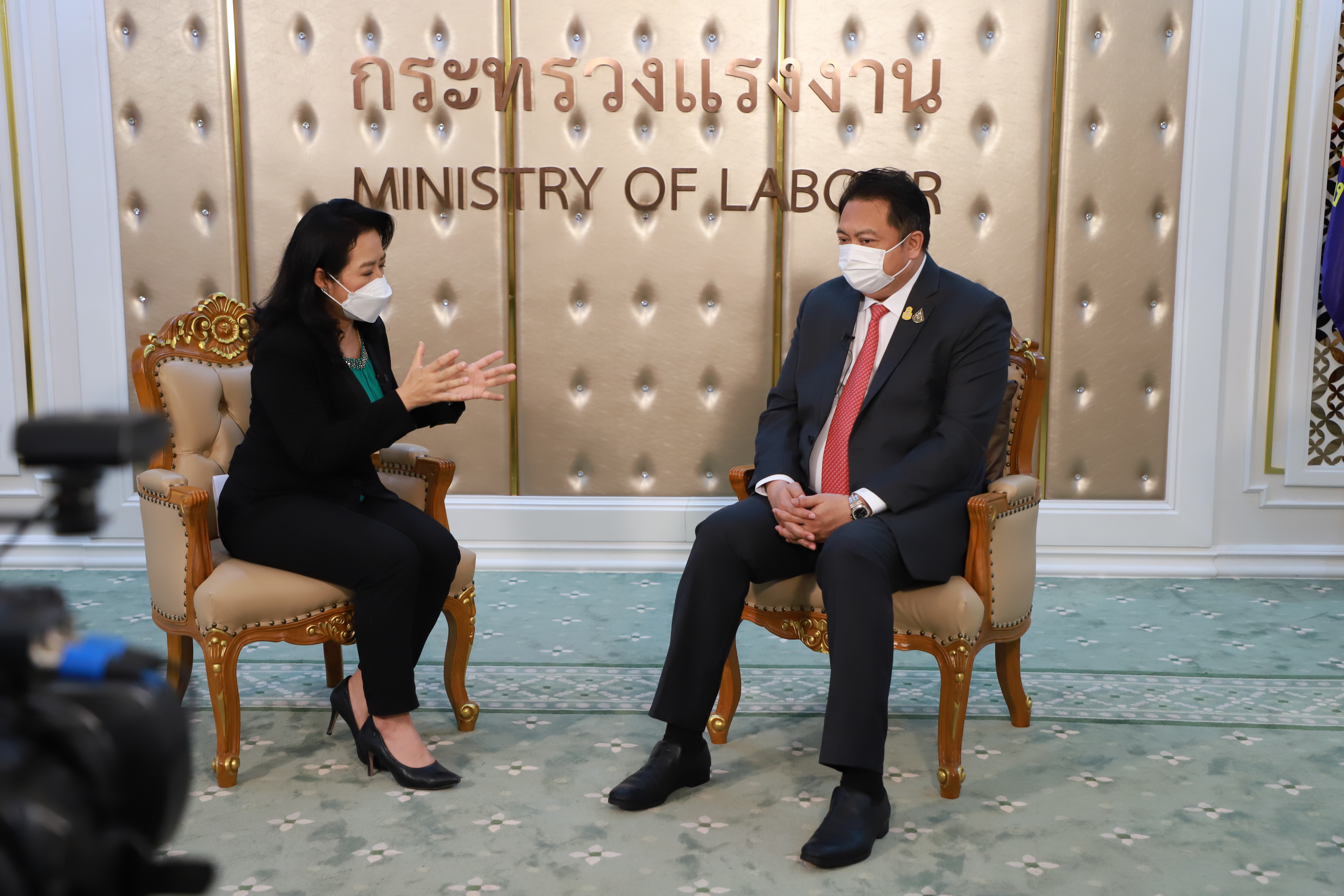 On August 4, 2021, at 13.30 hours, Labour Minister Mr. Suchart Chomklin recorded an interview on the “For the People” program in the “On the Point” section. The interview will be broadcasted on August 7-8, 2021, from 17.30 to 18.00 hours, on the Royal Thai Air Force 5 HD1 channel. The interview took place at the Chatumongkol Room, 6th floor, Ministry of Labour.