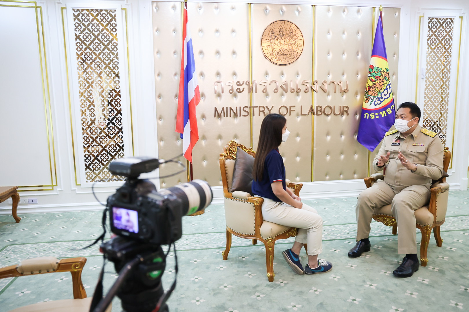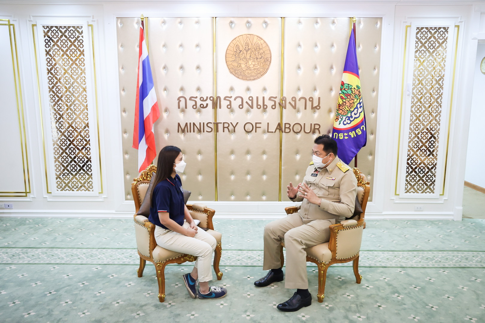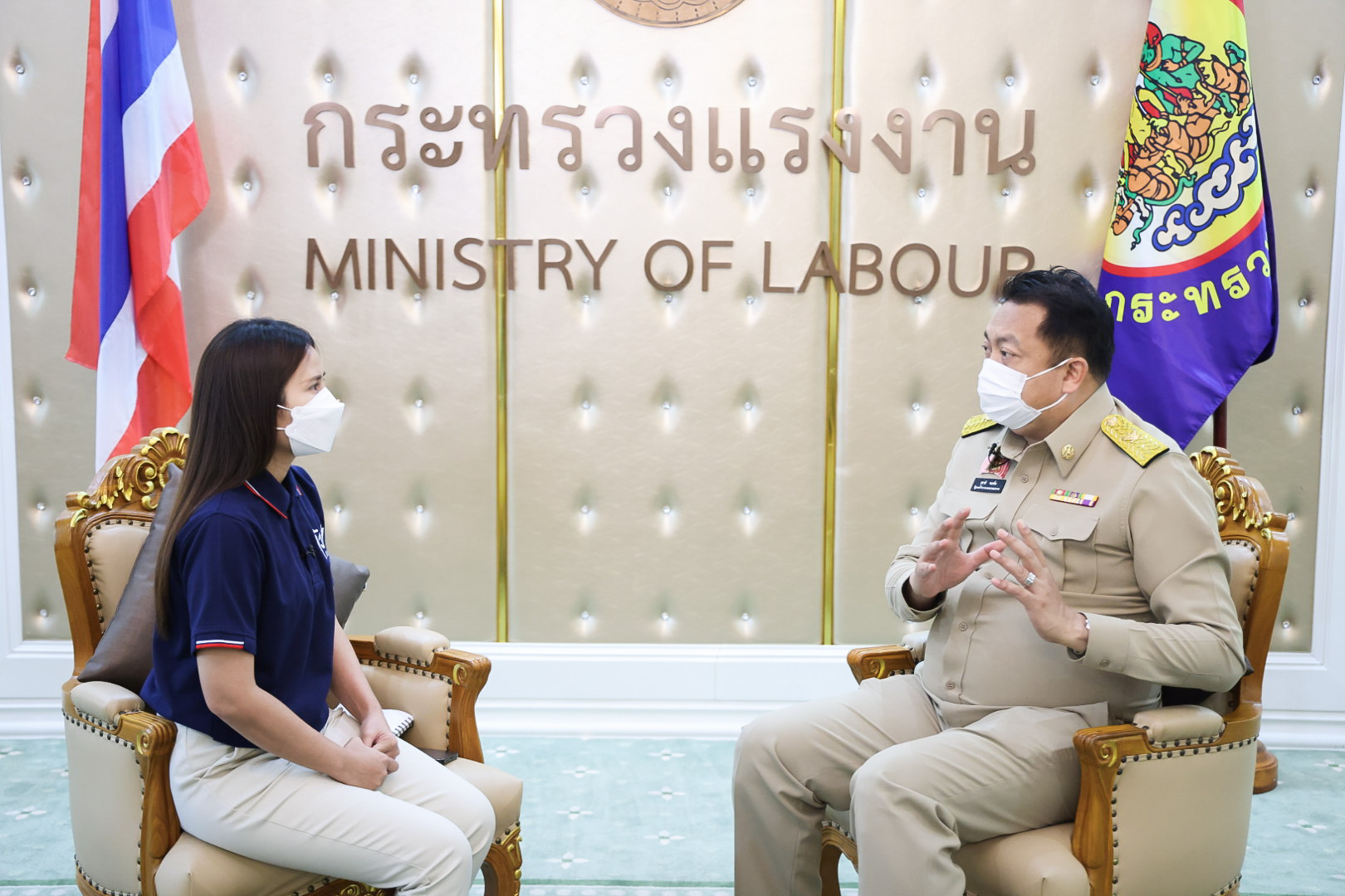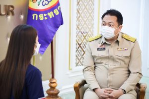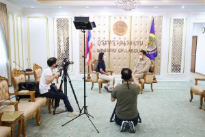 Today (February 7, 2022) at 10.30 hours, Labour Minister Mr. Suchart Chomklin recorded the interview on the “Tua Jing Sanam Kao” show on the topic of “sending Thai workers for work and skill development following the needs of Saudi Arabia.” The interview will be broadcasted on Nation TV, Channel 22, on Sunday, February 13, 2022, at 22:30 hours.