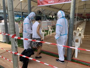 Ms. Duanghathai Poombansao, a visually impaired person, lives in the Khan Na Yao district. She is an insured person under Section 39 and was the first person at the site to get Covid-19 tested at 07.39 hours. She revealed that last week, she traveled to participate in public activities in Rayong province. A participant informed that he had traveled to a risky location and that she had been in close contact with the person during the duration of the activity. Knowing that there was proactive Covid-19 screening for insured persons at the Thai-Japan Bangkok Youth Center in Din Daeng, she asked relatives to apply and reserve a queue through the https://sso.icntracking.com/icntracking/self_register.php system and got a queue this morning. She said that she is happy and thankful to the government for this program, making it more convenient for insured persons, whereby the screening was quick.
