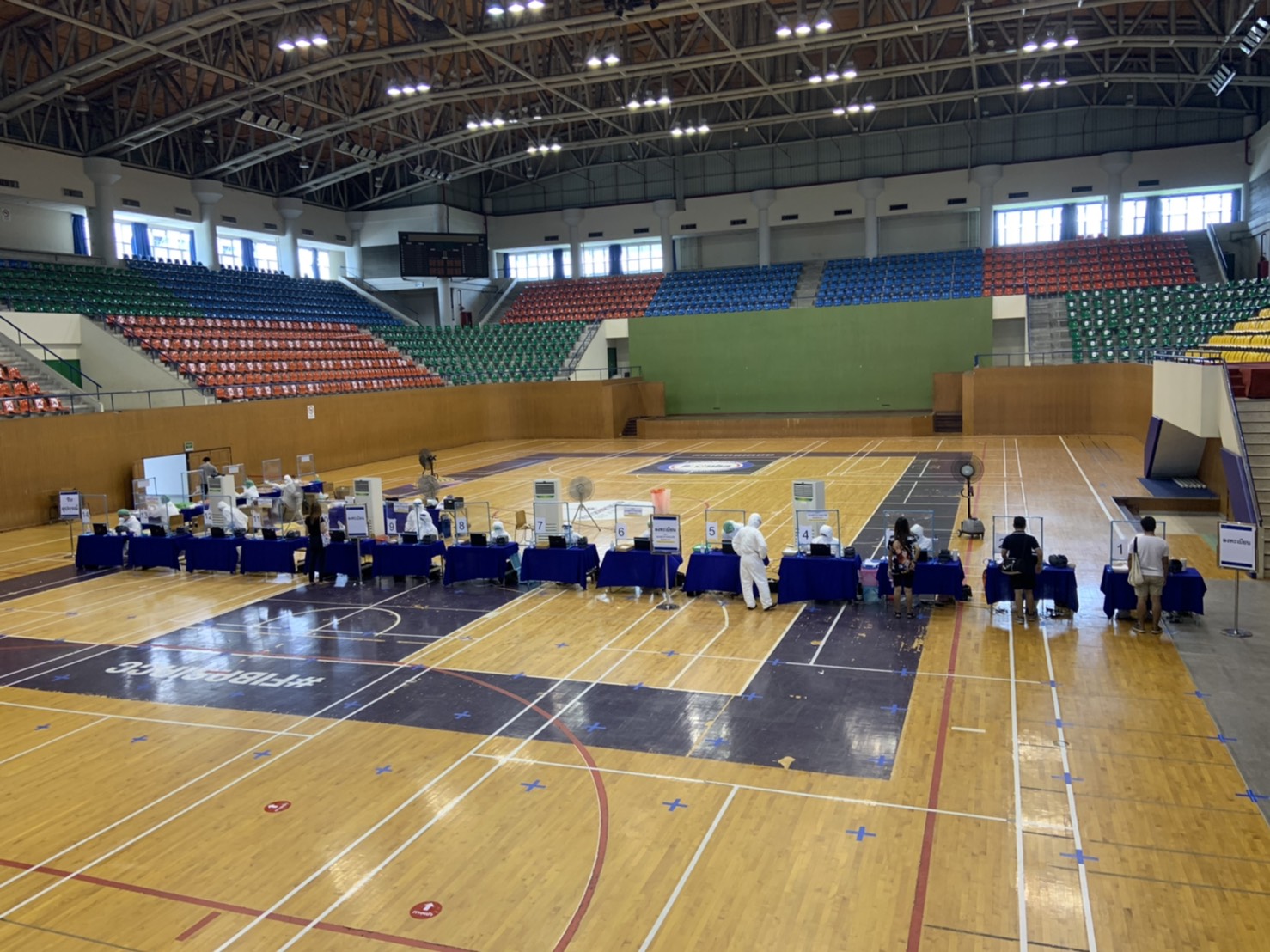 On April 17, 2021, Labour Minister Mr. Suchart Chomklin reported the proactive Covid-19 screening program for insured persons. Today was the first day of the proactive Covid-19 screening services for insured persons in the social security system under Sections 33, 39, and 40 located in Bangkok. The efforts aim to reduce congestion and facilitate service users, utilizing the West Sports Building 1, Bangkok Youth Center (Thai-Japan), Din Daeng, Bangkok, as a test site. In this regard, Prime Minister General Prayuth Chan-ocha has concerns for insured persons who returned to the provinces and visited risky places over the Songkran festival. The Ministry of Labour has joined with the Ministry of Interior (Bangkok) and the National Health Security Office (NHSO) to organize a proactive Covid-19 screening program for insured persons. Today is the first day of the services. The Labour Minister monitored the situation and urged the Social Security Office to examine the procedures to facilitate the insured persons. From the preliminary report, no obstacles were found. Everything operated smoothly following the steps and measures prescribed by the Department of Disease Control, Ministry of Public Health.