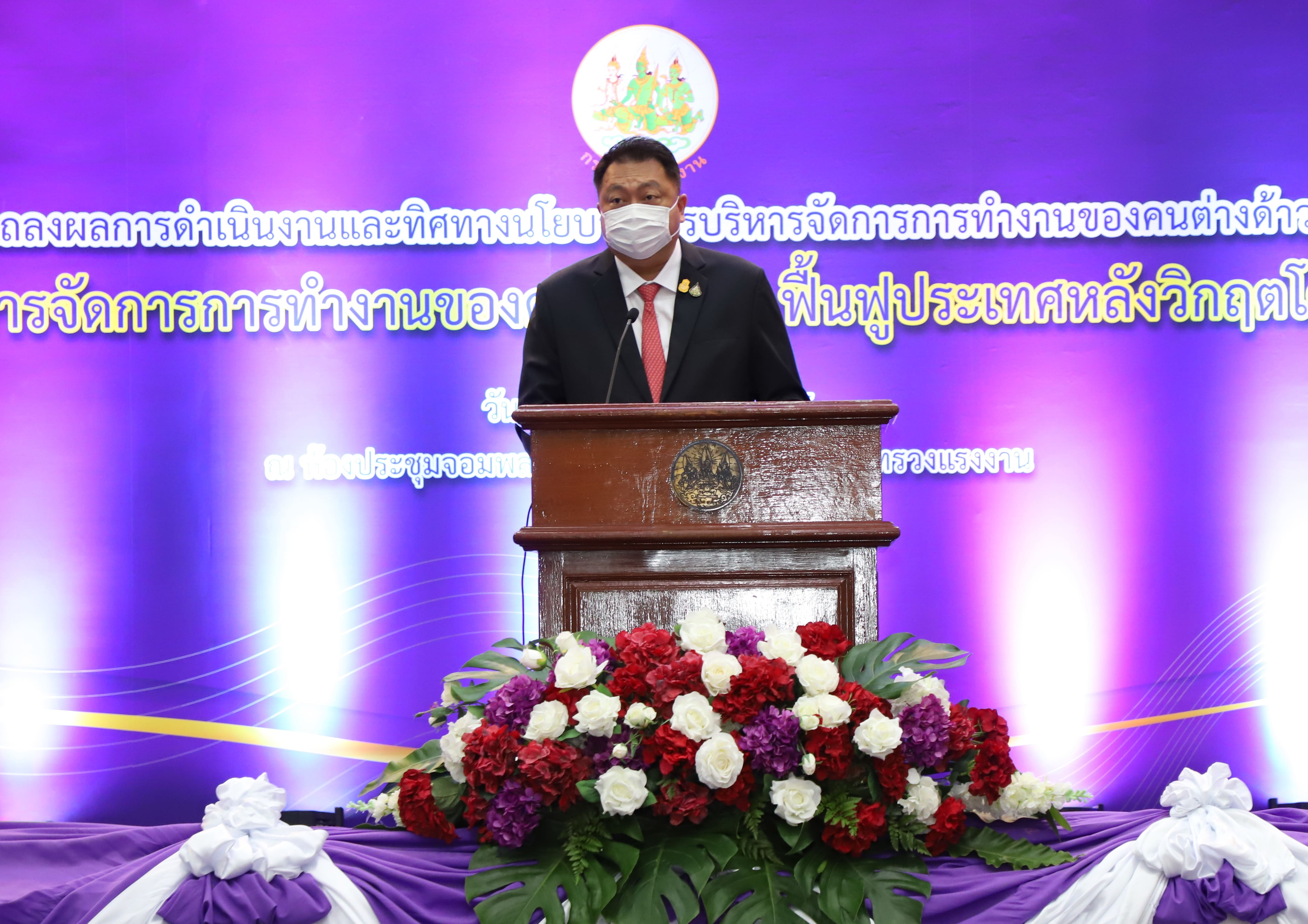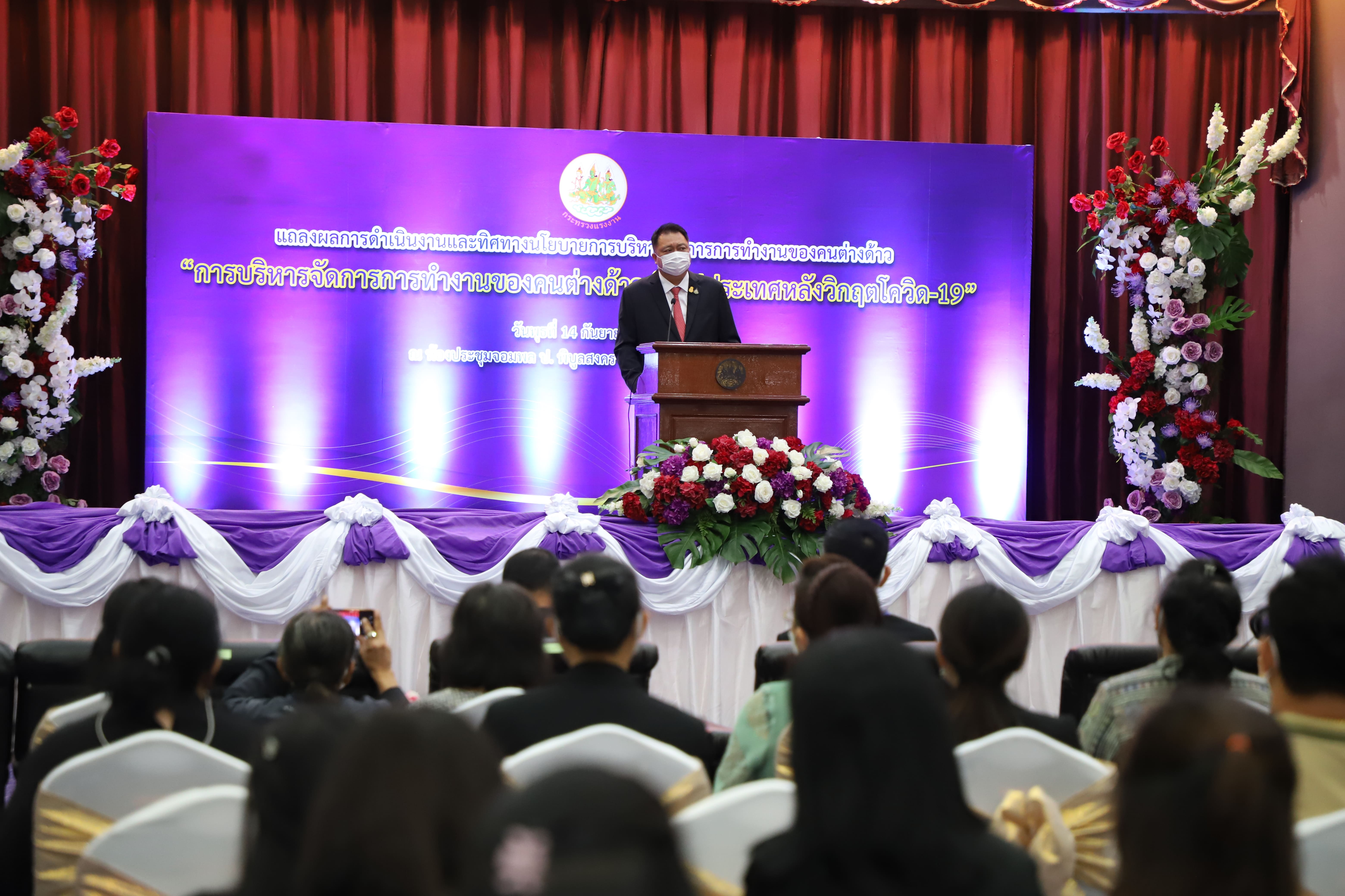 On September 14, 2022, the Labour Minister Mr. Suchart Chomklin presided over the announcement of the operating results and policy direction for managing foreign workers. The Permanent Secretary of Labour, Mr. Boonchob Suttamanaswon, reported the event’s objectives. The Ministry of Labour’s executives, association representatives, organizations, civil society/employers, and related agencies also participated in the event, which took place at the Ministry of Labour’s meeting room, 5th floor, Ministry of Labour.