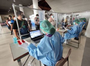 On July 23, 2021, Labour Minister Mr. Suchart Chomklin reported a summary on the proactive COVID-19 screening for insured persons and the public, following the “Workforce Fighting Together” project at the Bangkok Youth Center (Thai-Japan), Din Daeng District, Bangkok. Today was the last day of screenings. He said that this new wave of COVID-19 outbreaks has caused many people to have close contact with high-risk groups and need to be tested for infection. This has caused many public and private hospitals to be congested, having to wait in long queues. To facilitate insured persons and the public to get tested quickly, Prime Minister and Defense Minister General Prayuth Chan-ocha instructed the Ministry of Labour under the supervision of Deputy Prime Minister General Prawit Wongsuwan to work with the Ministry of Interior, the Bangkok Metropolitan Administration, and the Ministry of Public Health by the NHSO to provide proactive COVID-19 screening under the “Workforce Fighting Together” project, whereby the tests are free of charge. Today (July 23, 2021) was the last day of service. Overall, the proactive COVID-19 screening services were satisfactory.