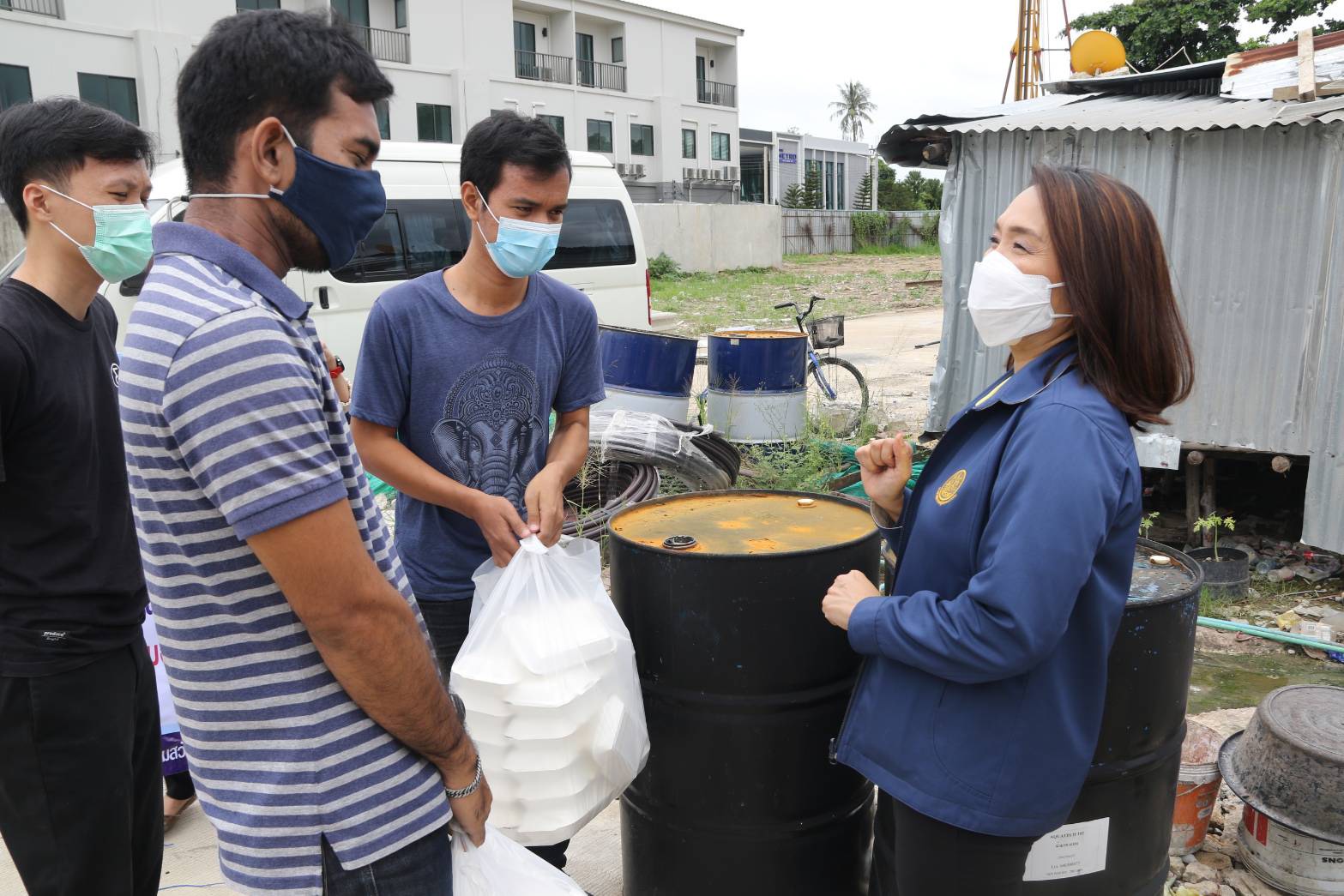 The Deputy Director-General of the Department of Labour Protection and Welfare, Mrs. Sopa Kieatnircha, added that the Department of Welfare has continued to help construction camp workers through the “sharing kindness to fight COVID-19” activities that have been ongoing since the beginning of July. Today, the department has gone to the area to donate 150 sets of food boxes and consumer goods to construction workers in the Phasi Charoen area, at two sites under the responsibility of the Bangkok Labour Protection and Welfare Office Area 7. The sites included the construction workers camp at The Key Building by Siam System Build Co., Ltd., with 82 people, and the construction workers camp at the Metro Village Construction Project by Property P Perfect PCL with 38 people. In addition, they visited the area to distribute food boxes to the people in the Khlong Lat Phachi community, where over 150 people lost their jobs and had to remain in quarantine. Mrs. Chaweewan Trakultham, chairman of the community, was the recipient of the food boxes. In this regard, the department has assigned agencies under its jurisdiction to urgently assist workers in the red zone areas until the COVID-19 pandemic ends.