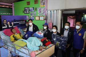 Mr. Suthep said that Prime Minister and Minister of Defense General Prayuth Chan-ocha, Deputy Prime Minister General Prawit Wongsuwan, who oversees the Ministry of Labour and Labour Minister Mr. Suchart Chomklin, is concerned about the workers and the public who have been affected by the flood situation and gives importance to caring for insured persons in all aspects, to receive benefits in all 7 cases. If employees or insured persons are in danger or are facing insecure situations, they must not be left behind. Today, he was assigned to visit the area in Phra Nakhon Si Ayutthaya Province. He visited two people with disabilities. The first was a Section 39 insured person who became a person with disabilities from an accident. The insured person is a bedridden patient in the care of their mother. The second case was a person with disabilities from illness with high blood pressure, hyperlipidemia, cervical vertebrae pressing on their nerves, both legs were numb and weak, and handicapped. Both insured persons receive compensation for lack of income in the case of disabilities from the Social Security Office, for 2,400 Baht per person per month, continuing for life. They also receive old-age pension funds and received flowers from the visit.