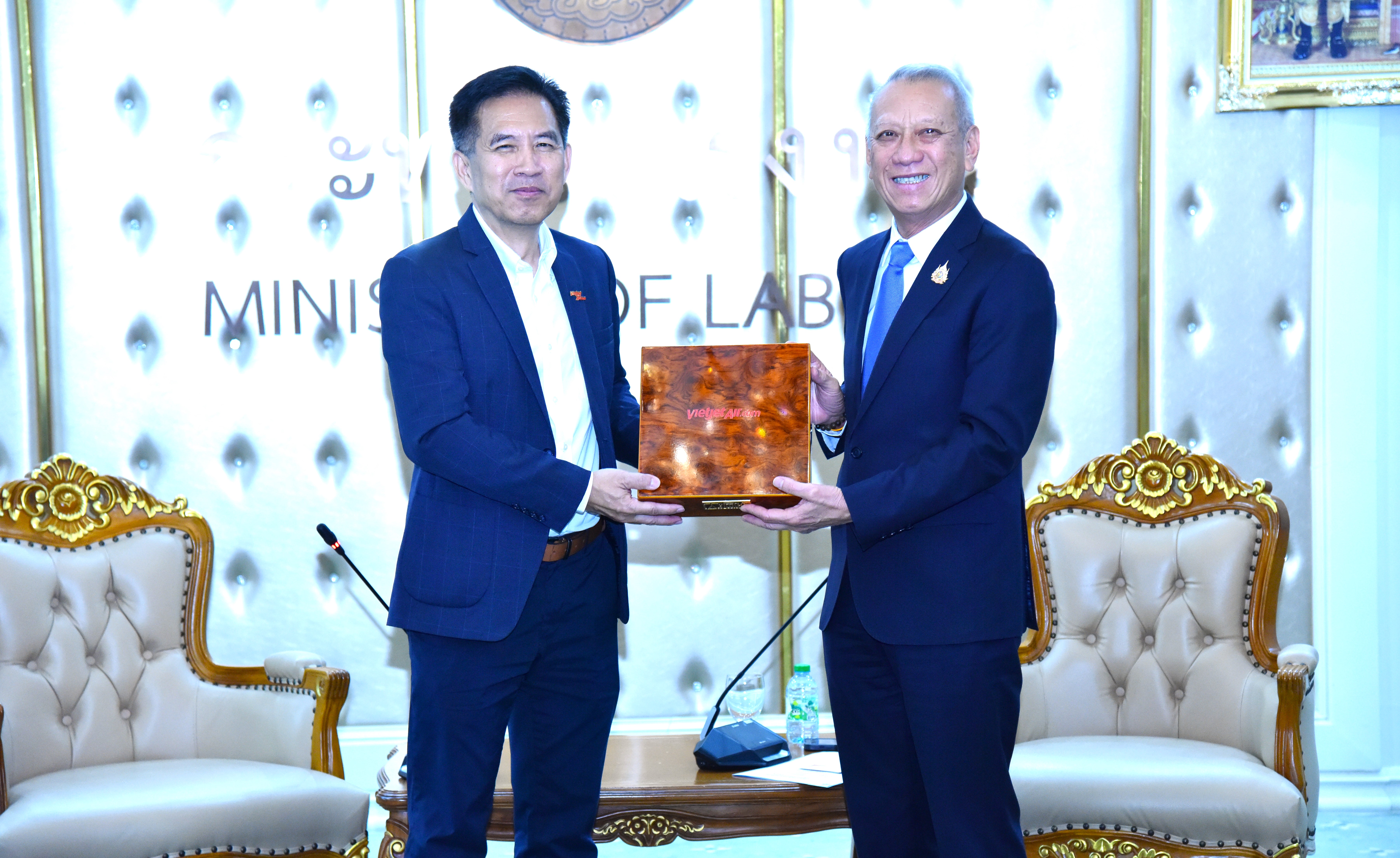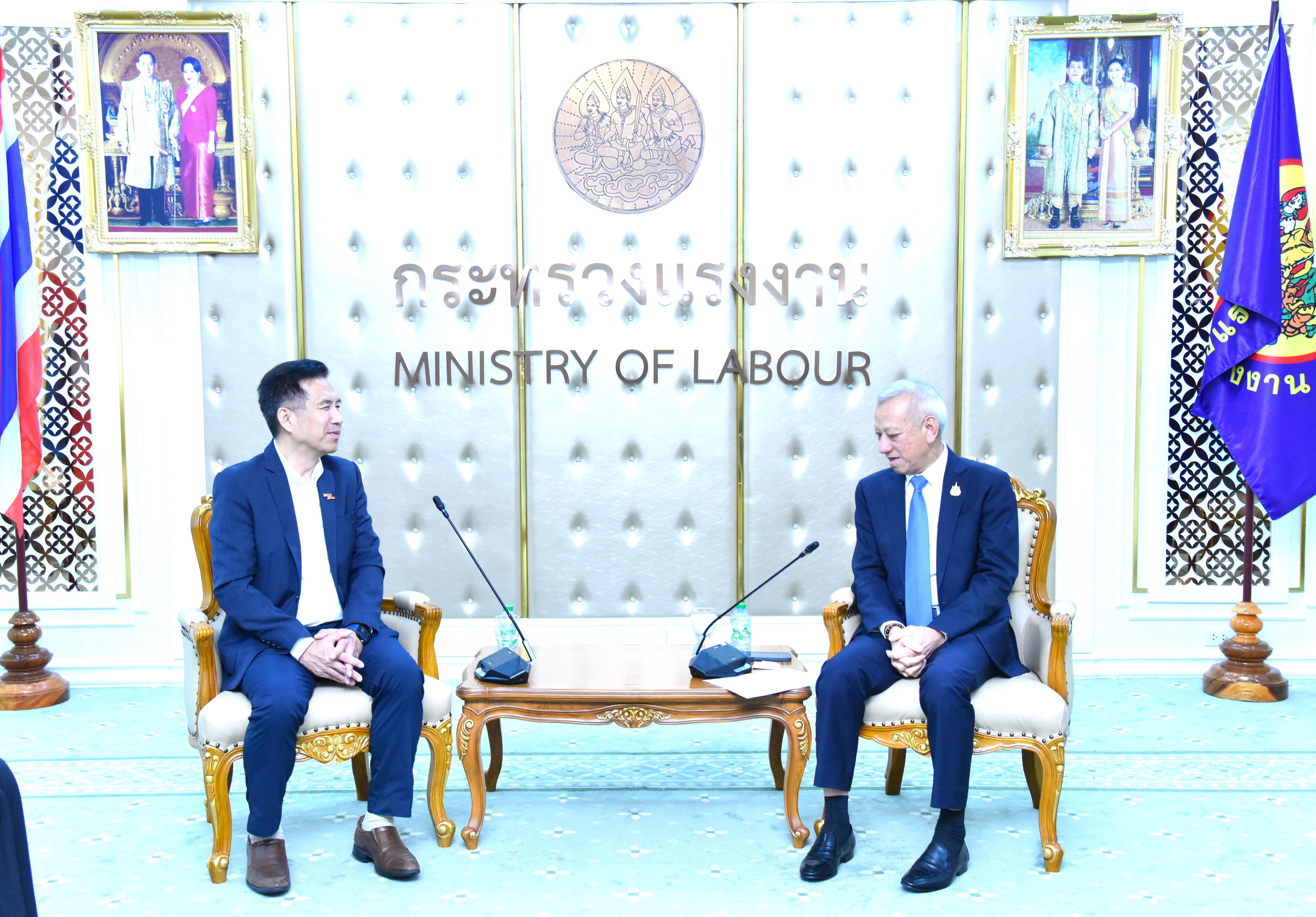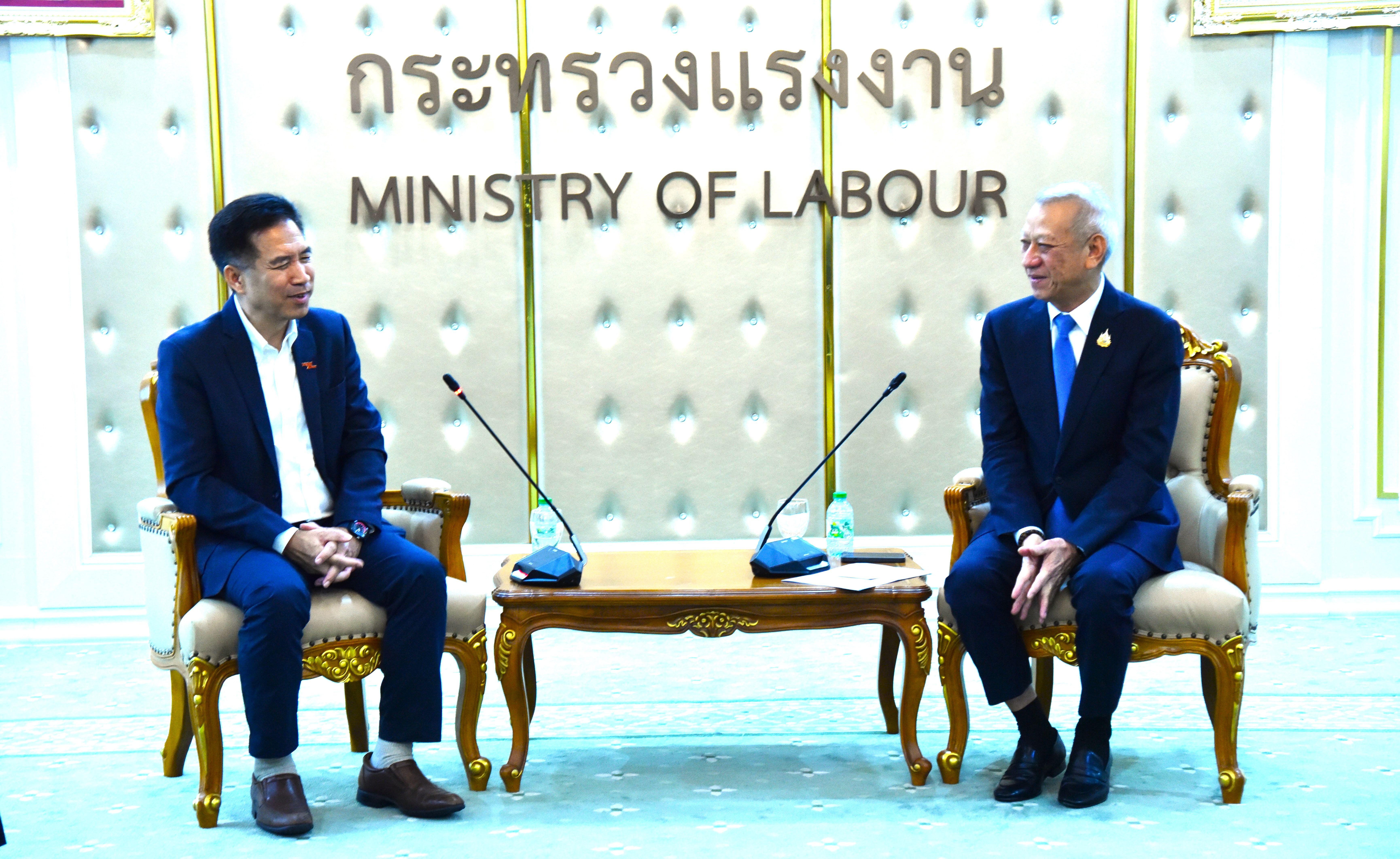 On August 14, 2024, at 13.30 hours, the Labour Minister, Mr. Phiphat Ratchakitprakarn, welcomed the Chief Executive Officer of Thai Vietjet Air Joint Stock Company Limited, Mr. Woranee Laprabang, on the occasion of paying a courtesy call and discussing the promotion of increased employment in the aviation industry to promote tourism. From the Prime Minister’s Secretariat’s Office, performing duties for the Ministry of Labour, Mr. Phuchong Worasri, the Deputy Permanent Secretaries of Labour, Mr. Wannarat Srisuksai and Mr. Decha Phruekpattanarak, and the Department of Employment’s Director-General, Mr. Somchai Morakotsriwan joined the occasion at the Chatumongkol Room, 6th floor, Ministry of Labour.