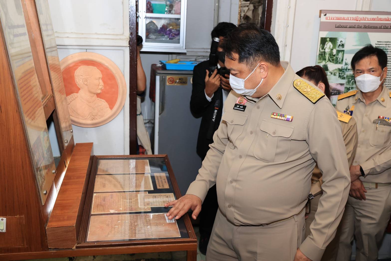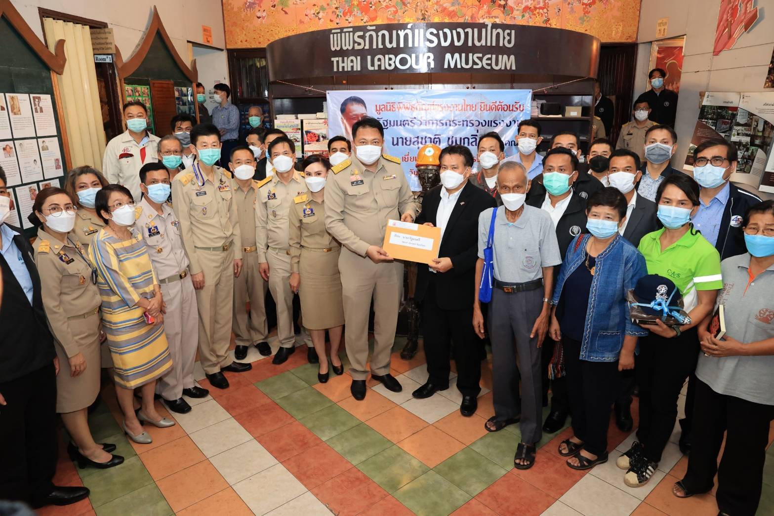 On October 11, 2021, Labour Minister Mr. Suchart Chomklin visited the Thai Labour Museum. The Labour Minister’s Advisor, Mrs. Thiwalrat Angkinan, Secretariat to the Labour Minister Mr. Suthep Chitayawong, the Ministry of Labour’s Spokesperson (on politics) Mrs. Theanrat Nawamawat, Permanent Secretary of Labour Mr. Boonchob Suttamanaswong, and the Ministry of Labour’s executives also joined the occasion. The Labour Minister and delegation visited the exhibition and met to discuss ways to support the Thai Labour Museum. On the same occasion, the Labor Minister received a presentation summarizing the background and challenges by the museum manager and received a letter to request support, including the exchange and set guidelines to support the Thai Labour Museum. The occasion occurred at the Thai Labour Museum, located at 503/20, Makkasan Railway Nikom Road, Makkasan Subdistrict, Ratchathewi District, Bangkok.