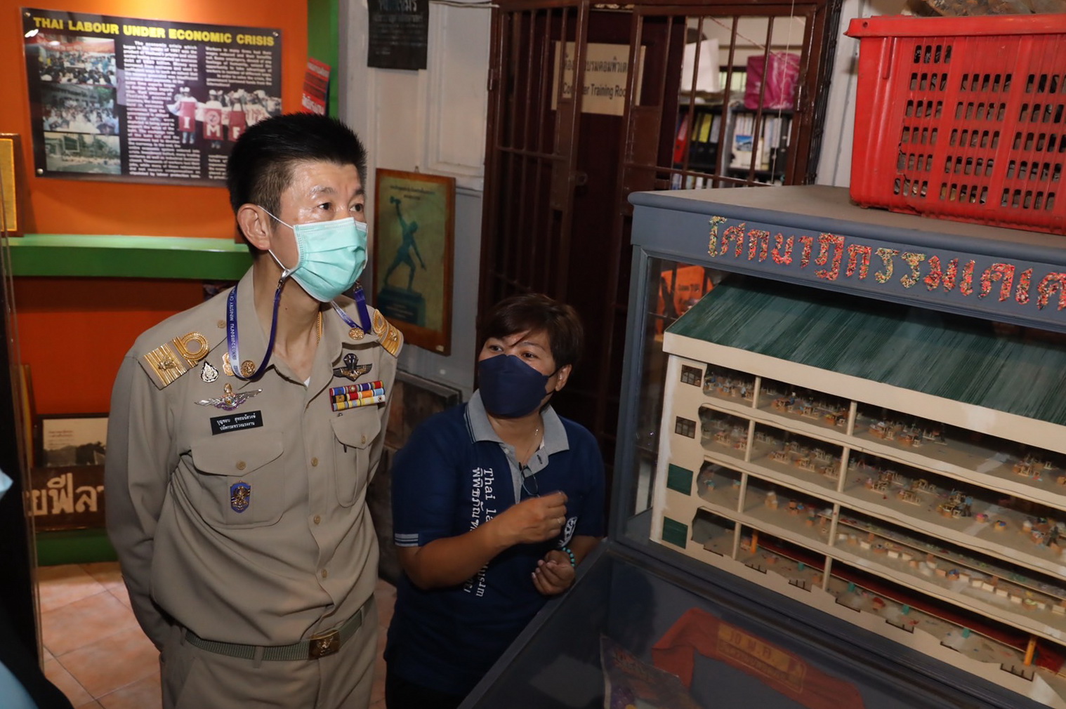 Mr. Suchart continued that today, his team and he visited the Thai Labour Museum to discuss supporting its continued operations with its set objectives. The Thai Labour Museum was established on December 1, 1991, by the Labour Organization, NGOs, labour academics, historians, and archivists. There was a consensus to establish the Thai Labour Museum is a place for collecting and displaying stories of Thai workers. The old one-story building that once served as a railway police station and railway union office is now the first labour museum in Thailand through joint efforts. It tells the story of the working class. The official inauguration ceremony was held on October 17, 1993, with four objectives, namely, to showcase the story, history, life, and work of the workforce, to be a place for studying, researching, collecting, and disseminating knowledge about Thai workers history, to be a center for collecting information, documents, books, audio, and video recordings about Thai workers for providing services to the public and to be a labour arts and culture center that organizes activities for workers and the public.