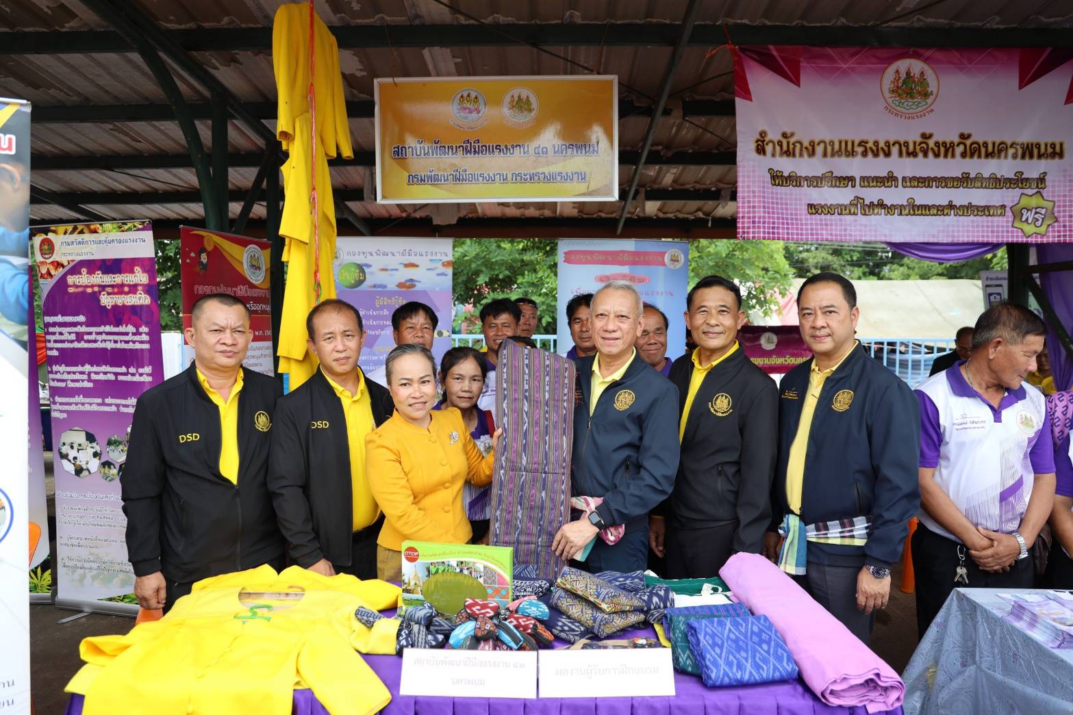 Mr. Phiphat and the delegation visited the activity booths of agencies under the Ministry of Labour in Nakhon Phanom Province, such as the booths providing consultations, requesting benefits for workers overseas, recruiting for roles in the country and abroad, labour protection laws, recruiting and advising on the rights of insured persons under Section 40, and the mobile unit providing one-stop social security services. The event received a lot of interest from labour volunteers, labour graduates, independent labour networks, insured persons, groups receiving work to do at home, independent occupation groups who received training from the Ministry of Labour who attended the event, and the many people of Nakhon Phanom Province who also participated.