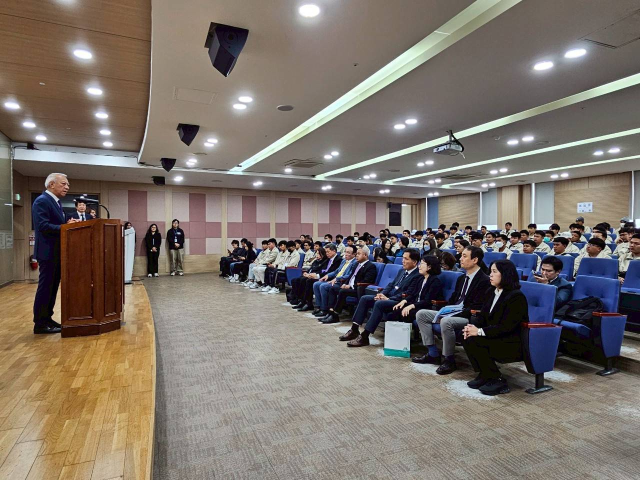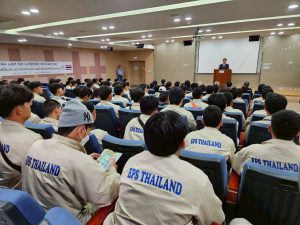Mr. Phiphat stated that KLES (Korea Labour and Employment Service) is an agency under the Ministry of Employment and Labour of South Korea, with the primary responsibility of promoting international labour cooperation, managing the employment of foreign workers under the EPS system, and providing training for foreign workers who have just arrived in the country. This training prepares them in terms of language, culture, labour laws, and various benefits before they begin working. He added that Thailand aims for its workers to progress from E-9 visas to E-7 visas, which represent skilled labour positions with higher incomes and greater recognition from South Korean employers. He urged all workers to diligently study the language, be responsible, and refrain from vices such as gambling, drugs, or any immoral behaviour in order to uphold the good reputation of Thai workers and return home with savings and pride.