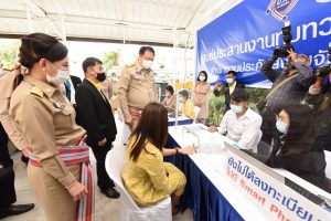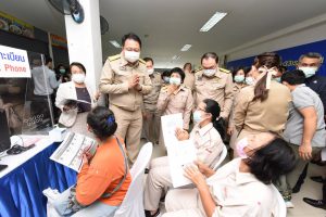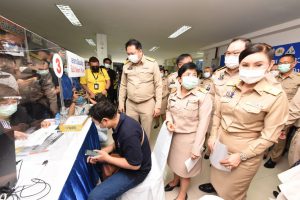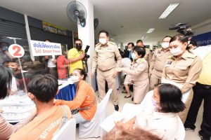 On March 15, 2021, Labour Minister Mr. Suchart Chomklin chaired the visit to observe the services of the Rights Review Coordination Center for the Section 33 We Love Each Other project at the Pathum Thani Social Security Office in Muaeng, Pathum Thani, and the Mobile Coordination Center at Demco PCL, Prik Thai, Muaeng, Pathum Thani. Assistant to the Labour Minister Mr. Surachai Chaitrakulthong, Advisor to the Labour Minister Mrs. Thiwalrat Angkinan, the Labour Minister’s Secretariat Mr. Suthep Chitayavong, Police Major General Nantachat Supamongkol from the Office of the Prime Minister’s Secretariat performing duties for the Ministry of Labour, Permanent Secretary of Labour Mr. Suthi Sukosol, Governor of Pathum Thani Mr. Chaiwat Chuenkosoom, Chairperson of Demco PCL Mrs. Prapee Puipanthawong, together with Ministry of Labour’s senior management, also participate in this occasion. The Labour Minister said that the government under the leadership of Prime Minister and Minister of Defense General Prayuth Chan-ocha, and the Ministry of Labour under the supervision of Deputy Prime Minister General Prawit Wongsuwan, gives importance to the support and remedies to alleviate the cost of living of insured persons under Section 33. The government provided remedies of 4,000 Baht per person, whereby applicants registered online via the www.M33WeLoveEachOther.com website from February 21 to March 7, 2021. There were 8,208,286 registered users who have been checked, processed, and screened for eligibility from March 8 to 14, 2021.