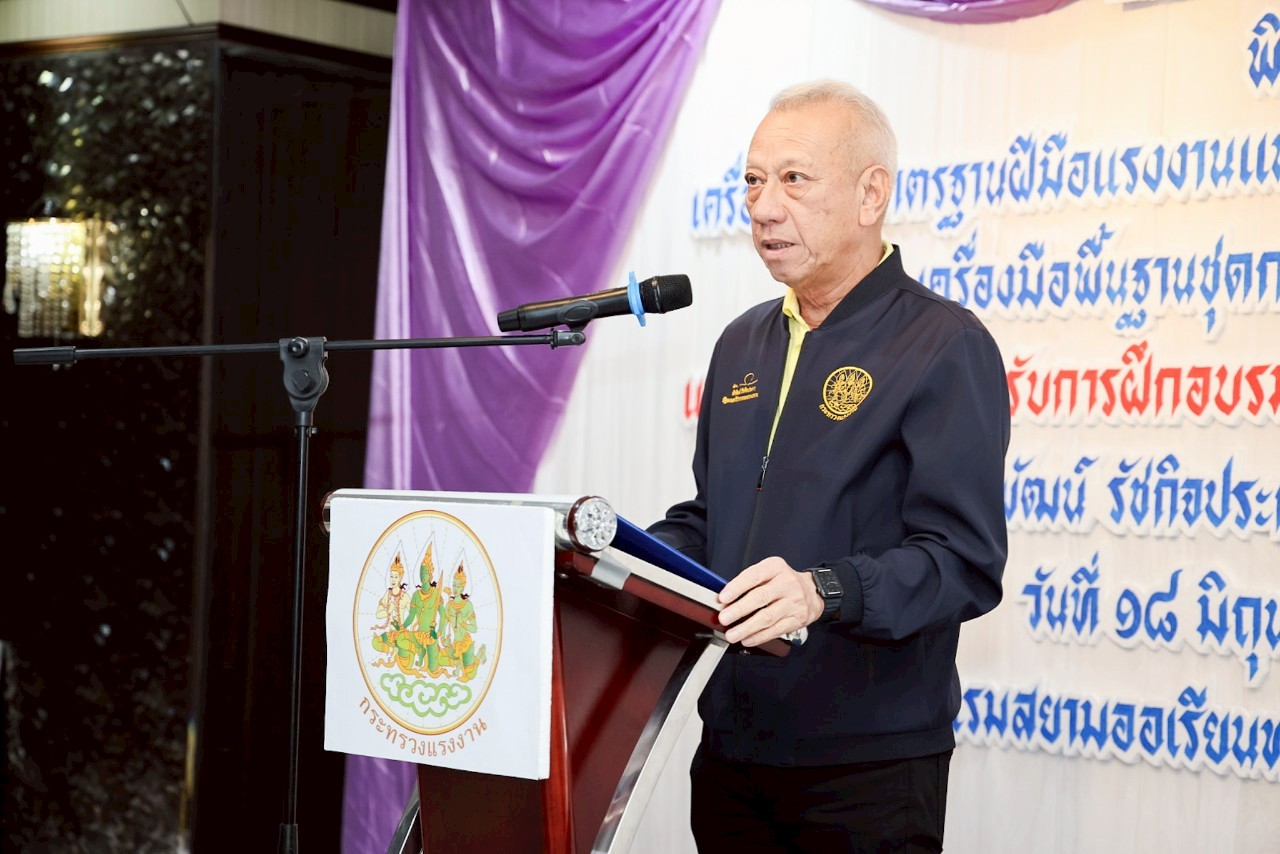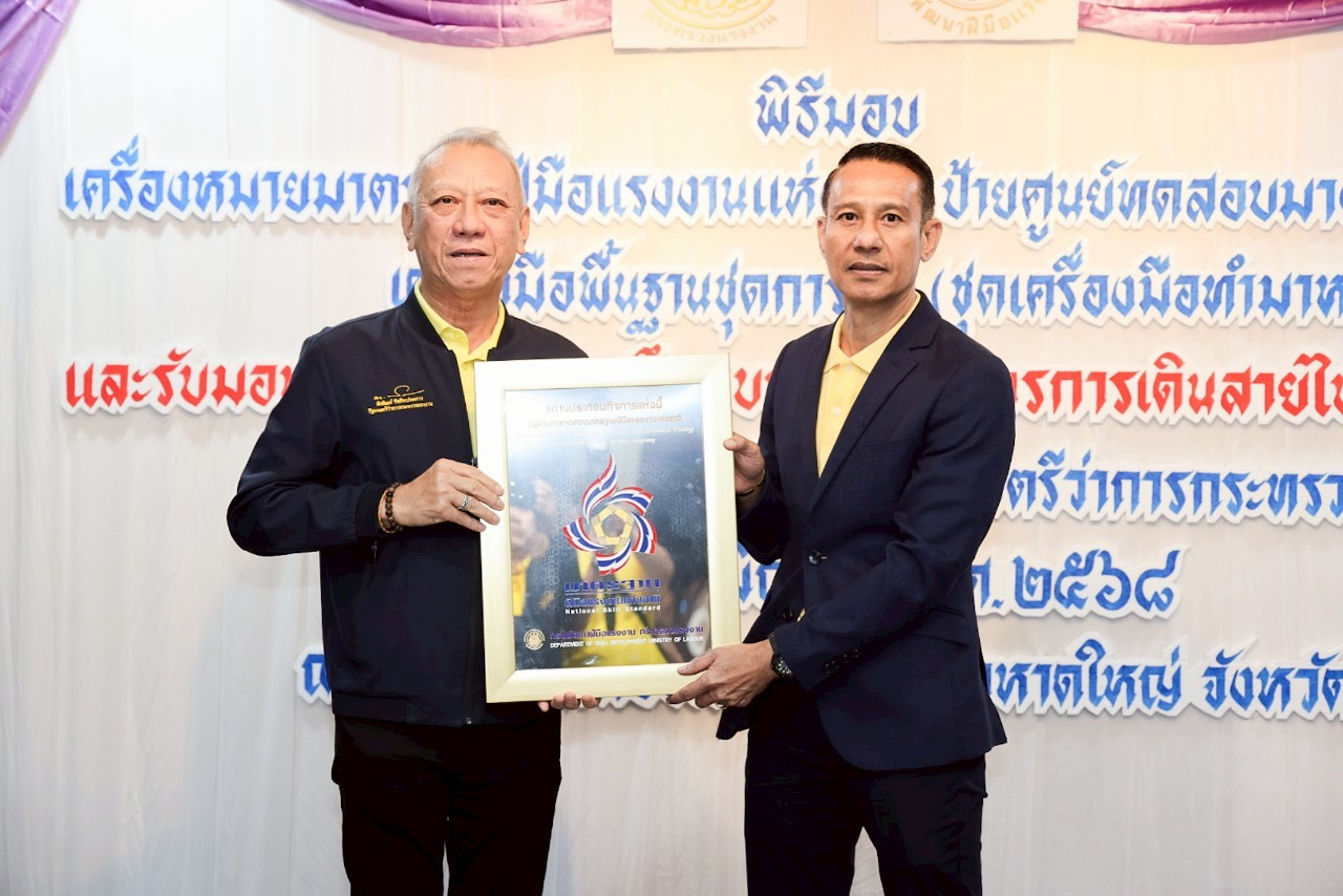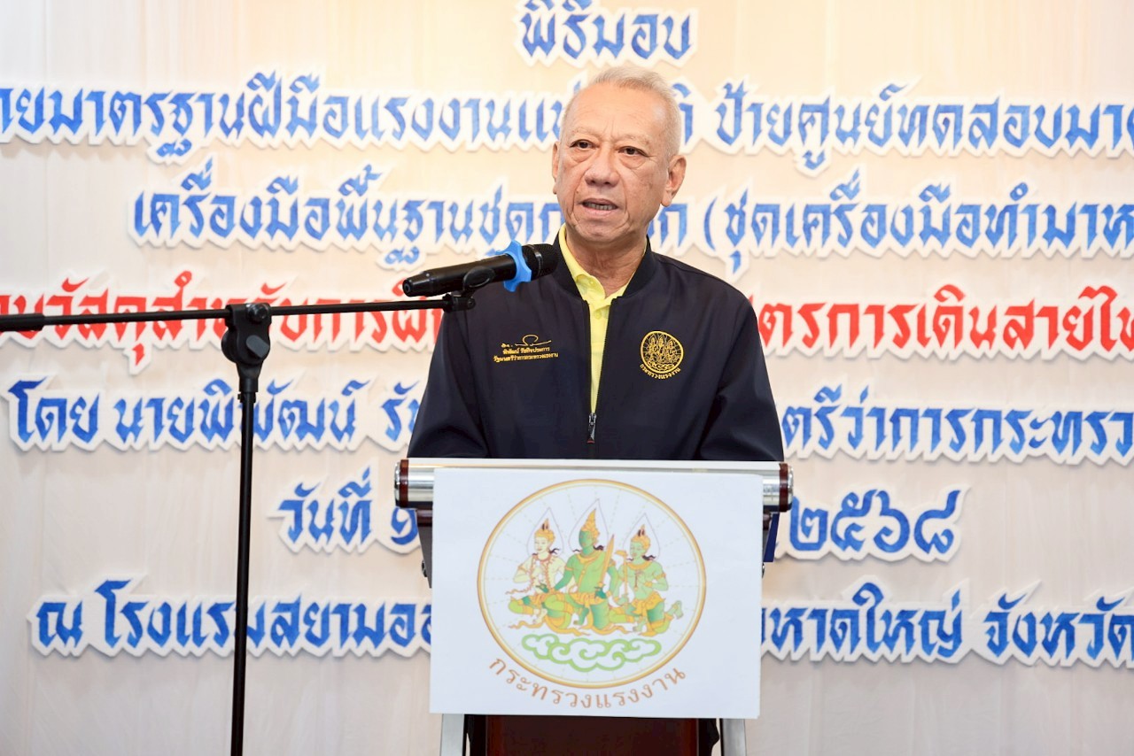 June 18, 2025 – Mr. Phiphat Ratchakitprakarn, Minister of Labour, visited Songkhla Province to preside over a ceremony distributing basic tools to graduates of occupational skill development training programs. He also presented the National Skill Standard Mark, signage for official skill testing centers, and occupational skill qualification certificates. Joining the event were senior officials from the Ministry of Labour, including Mr. Phuchong Worasri, assigned to the Office of the Prime Minister and currently serving at the Ministry of Labour, Mr. Pairoj Chotikasathien, Chairman of the Advisory Board to the Minister of Labour, Air Chief Marshal Athikun Kongmee, Advisor to the Minister on Illegal Worker Management, Mr. Phumipat Mueanchan, the Ministry of Labour’s Spokesperson, Mr. Samat Pattamasukon, the Deputy Permanent Secretary of Labour, Mr. Pichet Thongphan, the Ministry of Labour’s Inspector-General, Mr. Komes Piyaphan, the Department of Skill Development’s Inspector-General, local agency representatives and a large number of informal workers. The event took place at the Siam Oriental Hotel, Hat Yai District, Songkhla Province.