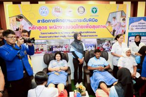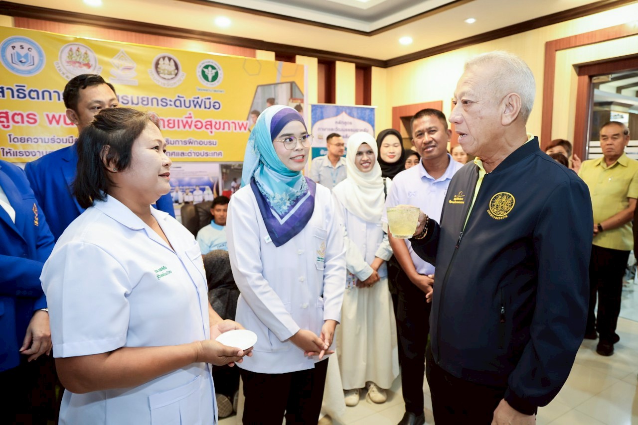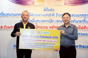 Furthermore, training materials for the electrical wiring installation course were donated valued at 12,747 Baht from Arya Rung-Ruang Co., Ltd., and 62,846 Baht from Schneider (Thailand) Co., Ltd. to support training and alleviate the burden of home repairs for five flood-affected households in Ban Koh Lae Nang, Pak Bang Subdistrict, Thepha District, Songkhla Province. The Labour Minister also visited demonstration booths for logistics and smart inventory system development training (jointly organized by the Songkhla Skill Development Institute 12 and Songkhla Rajabhat University), as well as Thai massage for health courses, implemented in collaboration with the Songkhla Skill Development Institute 12, the Songkhla Provincial Employment Office, Songkhla Community College, Thepha Hospital, and Pattana Songkhla Borirak School.