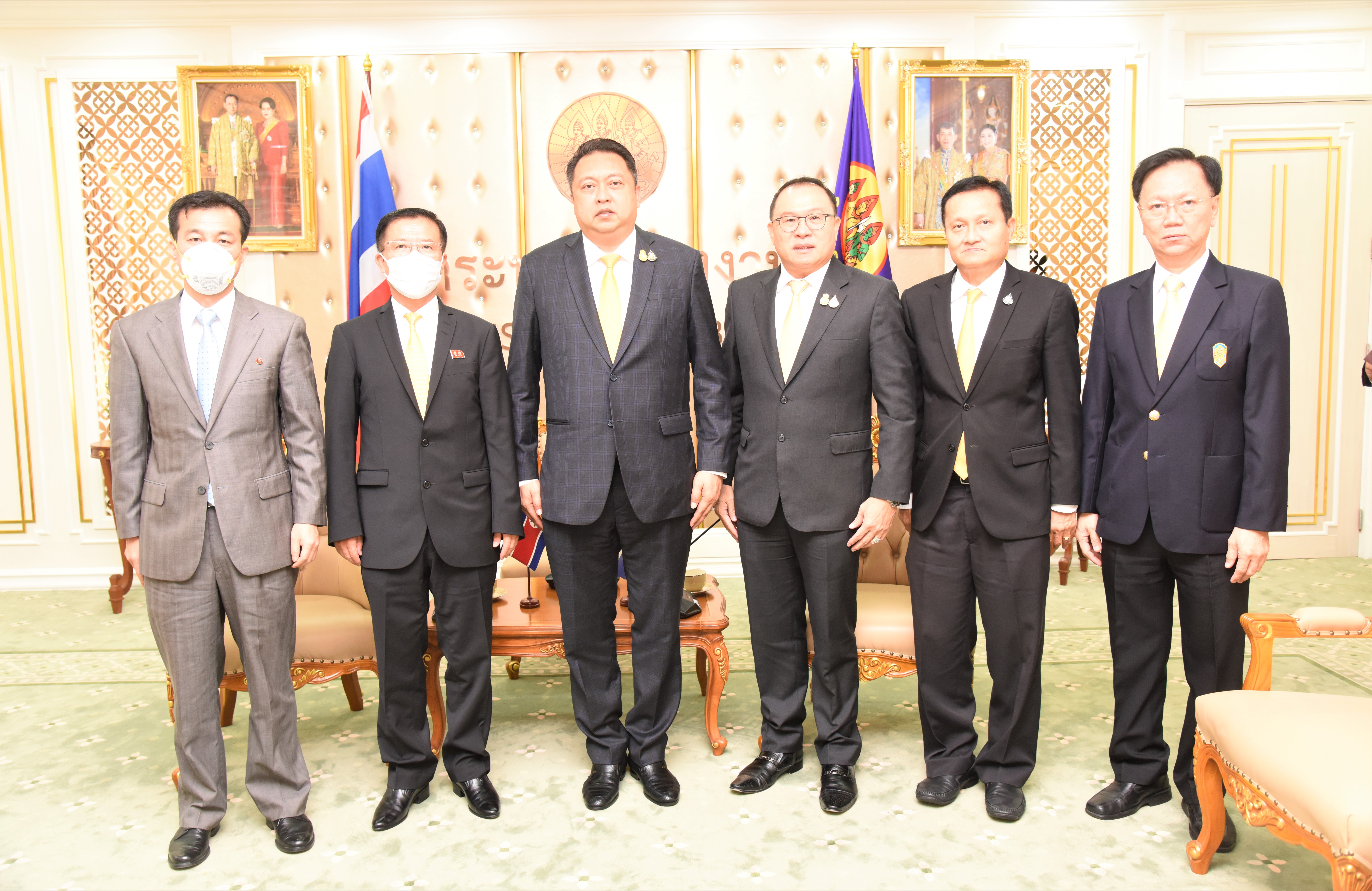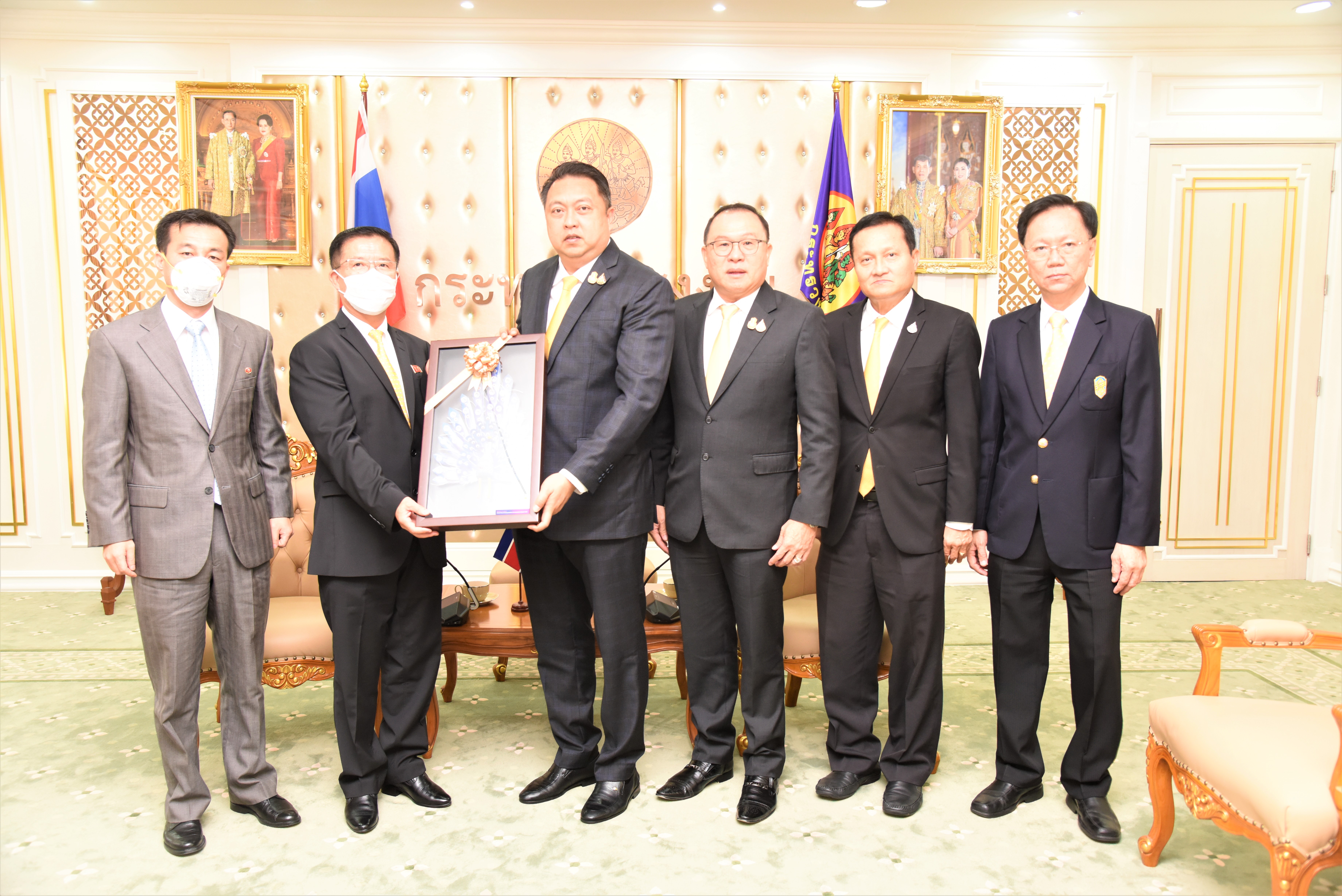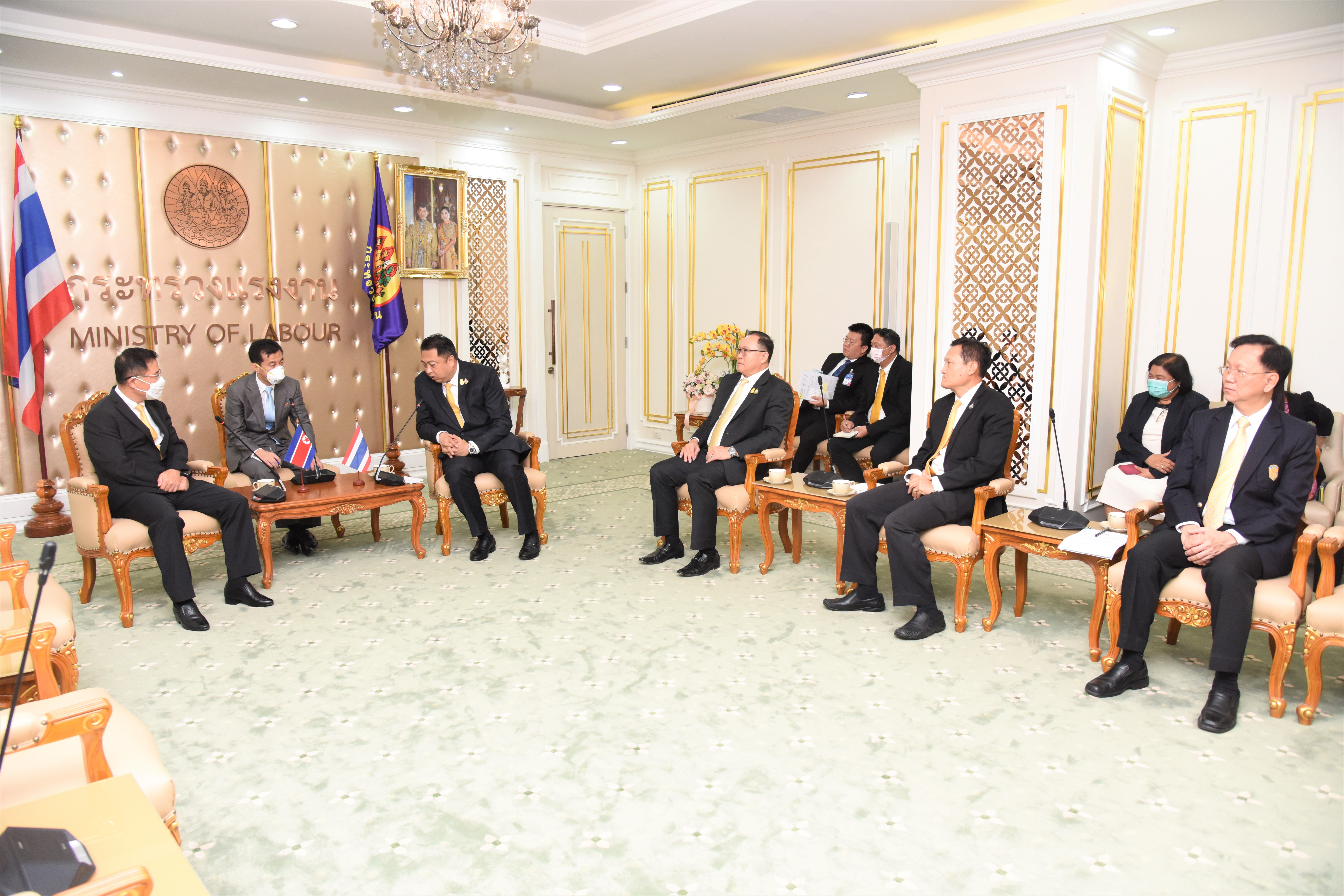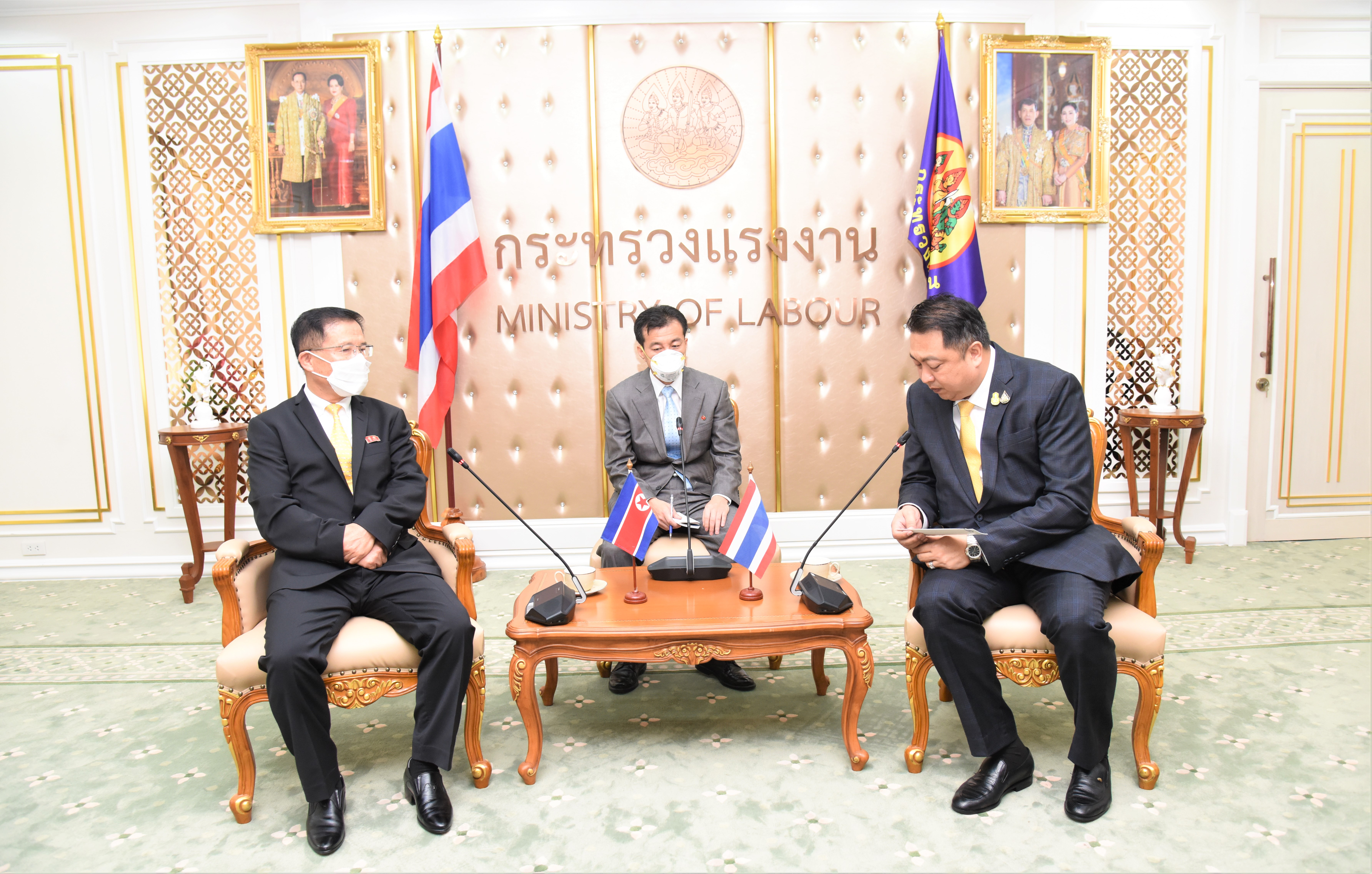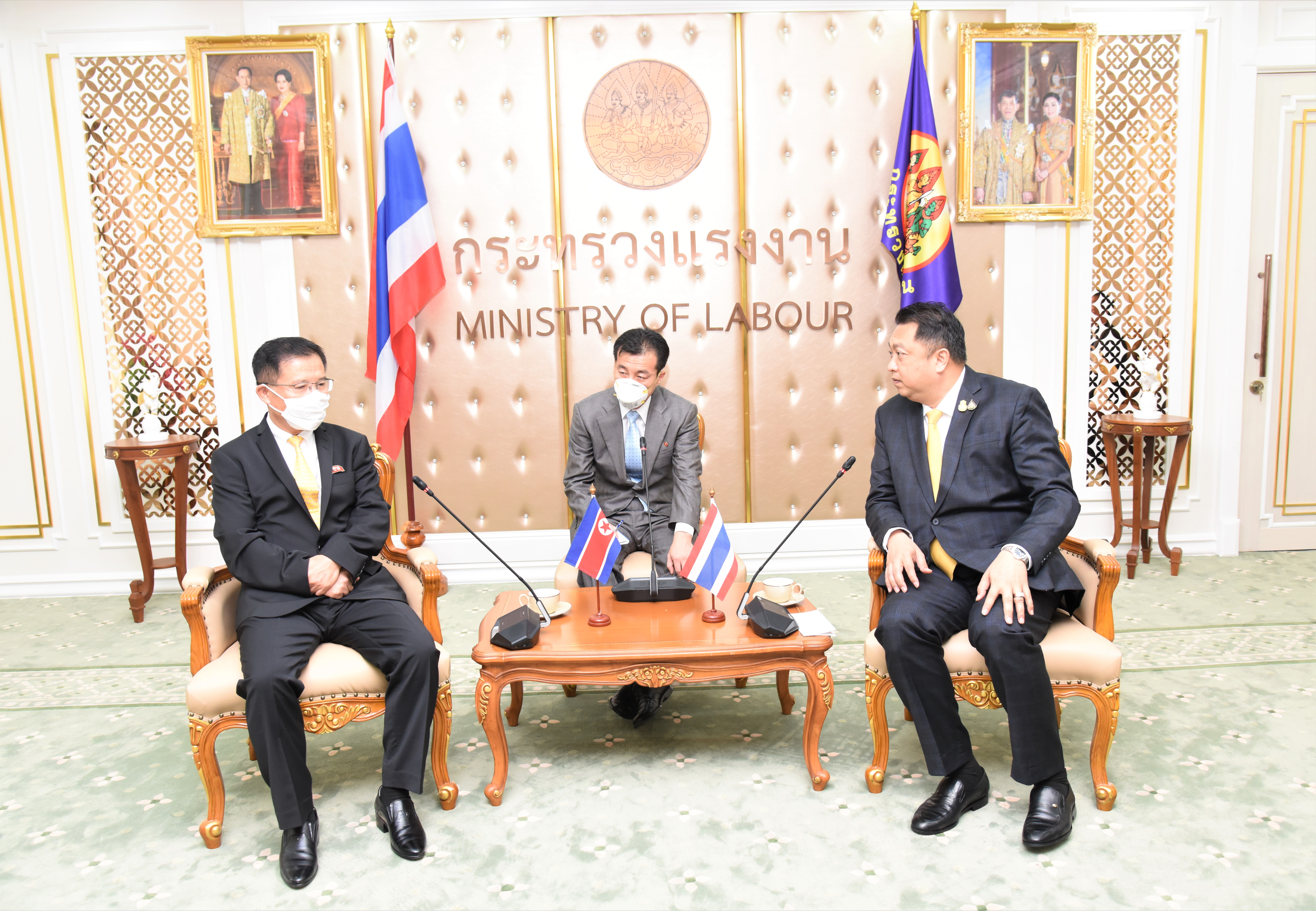 On October 30, 3030, at 13.30 hours, Labour Minister Mr. Suchart Chomklin, together with the Ministry of Labour’s executives, welcomed Mr. Kim Je Bong, Ambassador of the Democratic People’s Republic of Korea (North Korea) to Thailand and delegation, to discuss the development of bilateral labour relations between the two countries. The visiting delegation also requested the Ministry of Labour consider issuing a work permit for North Korean workers in sports coaches, entrepreneurs, investors, and cultural exchanges. Assistant to the Labour Minister Mr. Surachai Chaitrakulthong and Permanent Secretary of Labour Mr. Suthi Sukosol joined the reception at the Chatumongkol Room, 6th floor, Ministry of Labour.