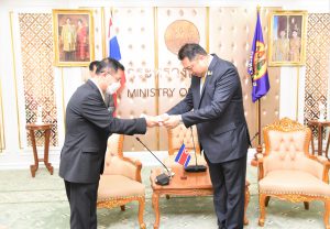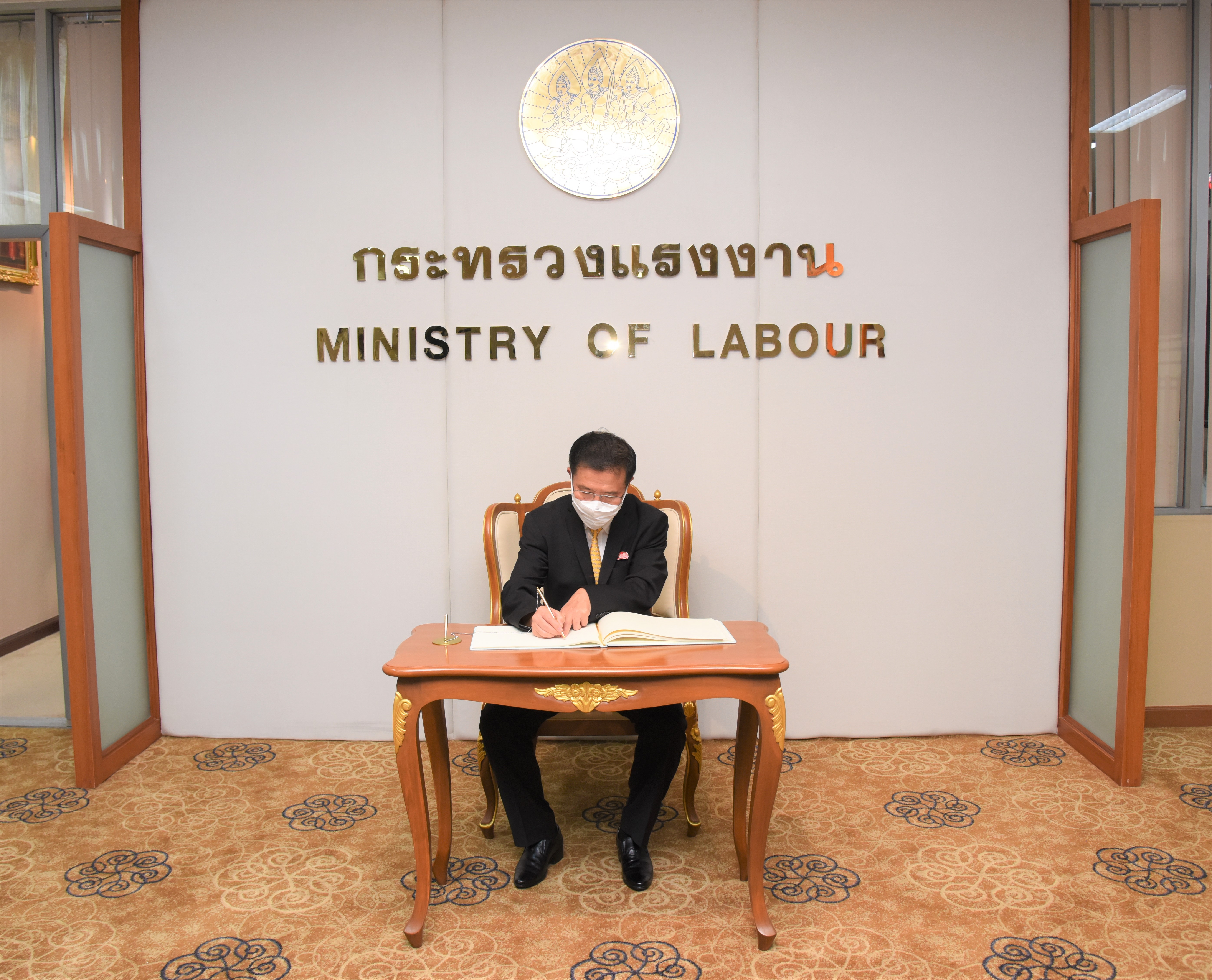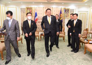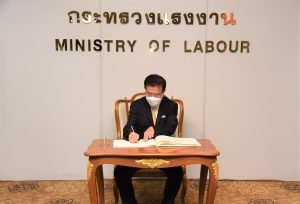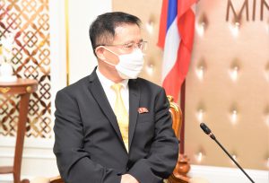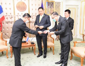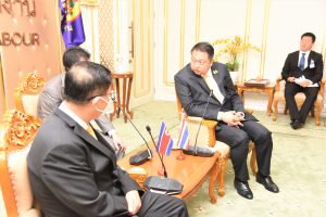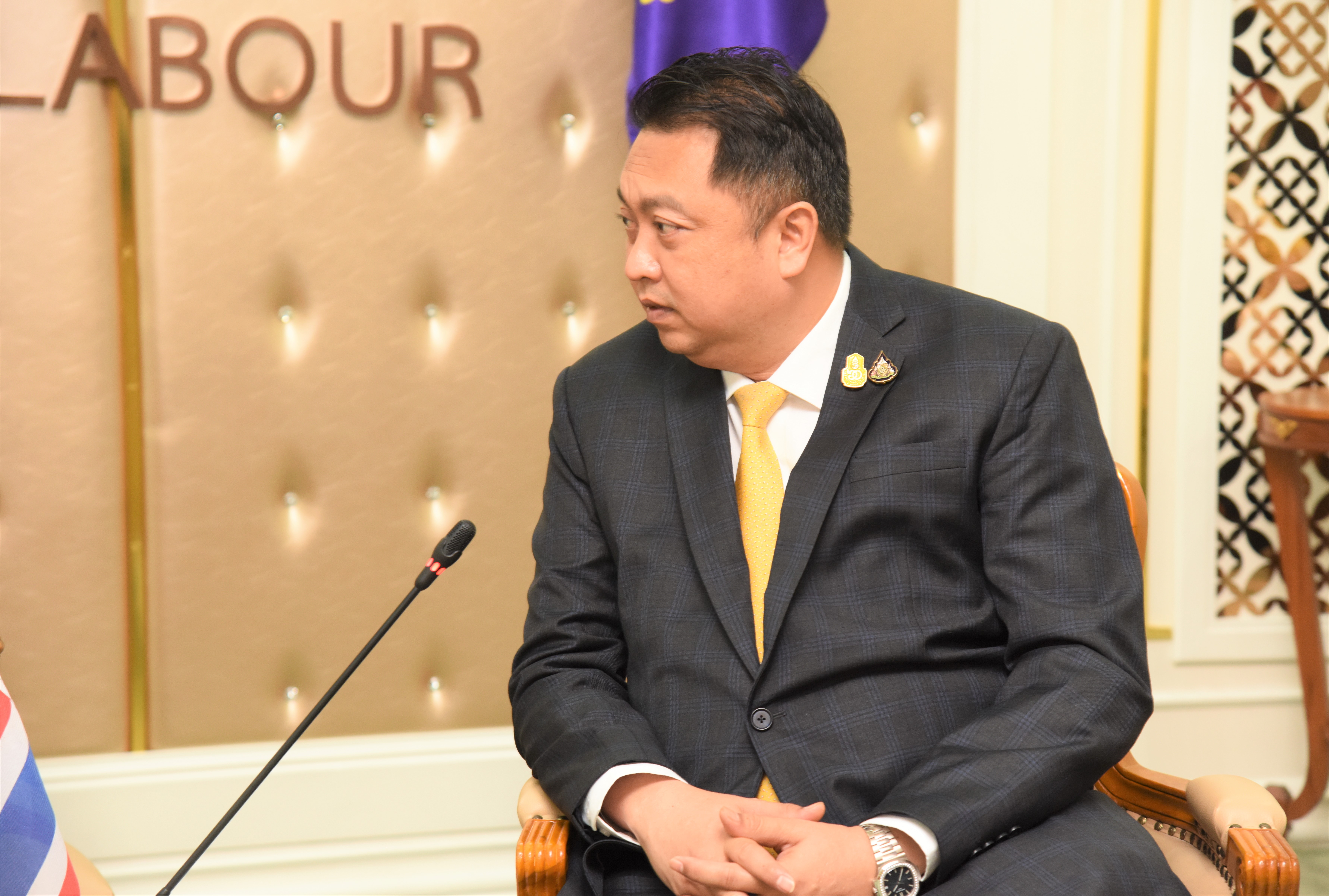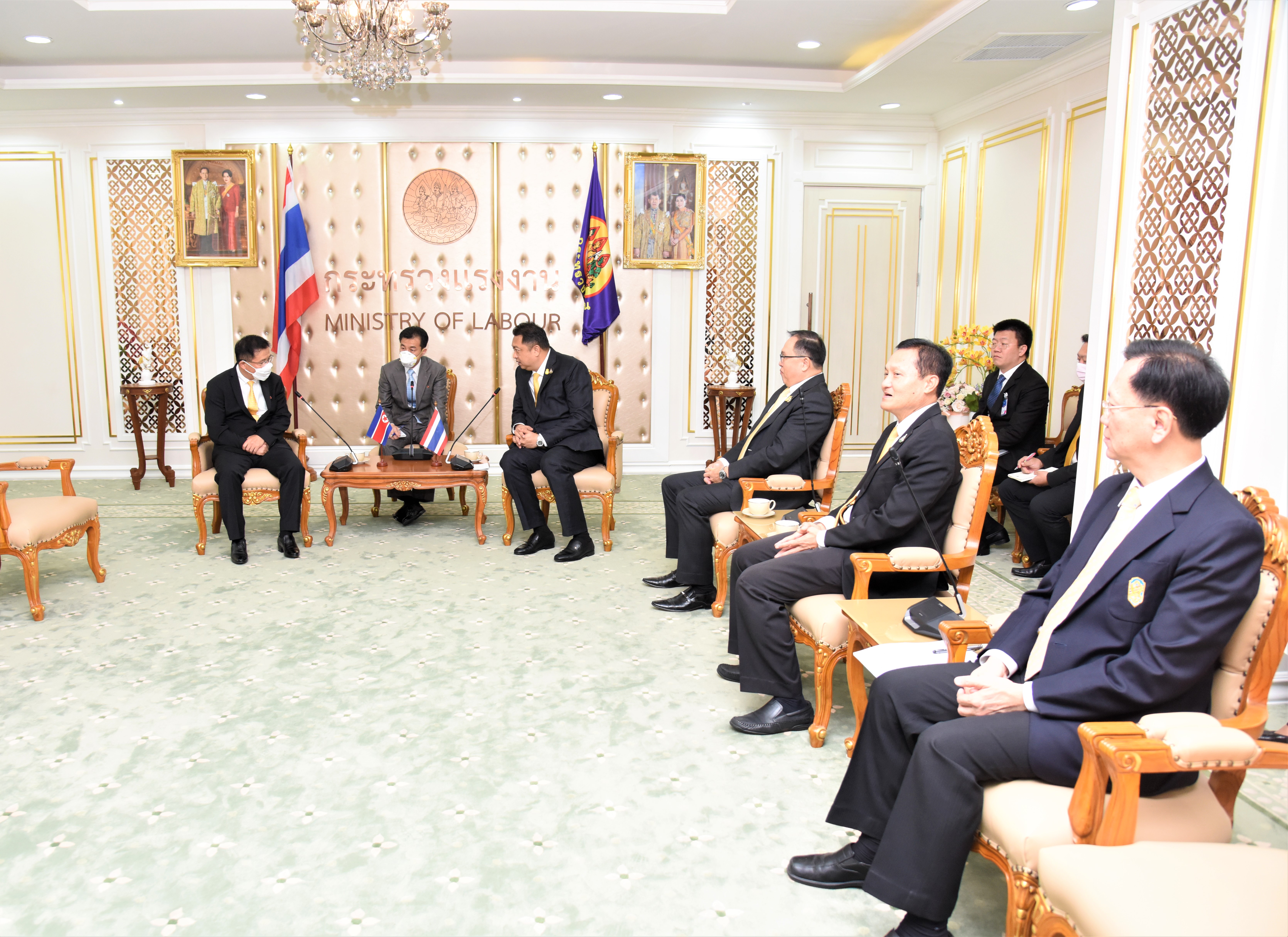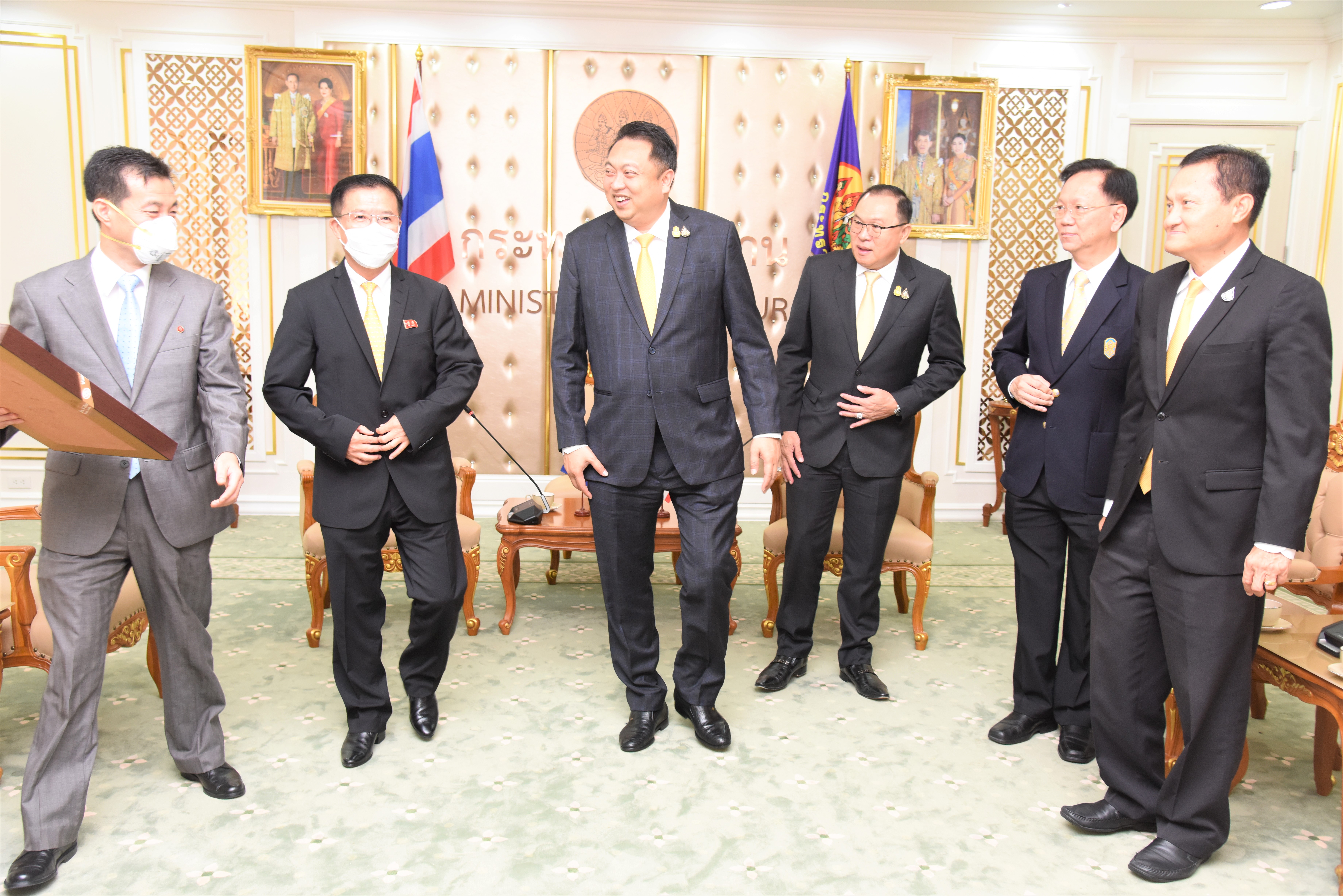 On October 30, 3030, at 13.30 hours, Labour Minister Mr. Suchart Chomklin, together with the Ministry of Labour’s executives, welcomed Mr. Kim Je Bong, Ambassador of the Democratic People’s Republic of Korea (North Korea) to Thailand and delegation, to discuss the development of bilateral labour relations between the two countries. The visiting delegation also requested the Ministry of Labour consider issuing a work permit for North Korean workers in sports coaches, entrepreneurs, investors, and cultural exchanges. Assistant to the Labour Minister Mr. Surachai Chaitrakulthong and Permanent Secretary of Labour Mr. Suthi Sukosol joined the reception at the Chatumongkol Room, 6th floor, Ministry of Labour.