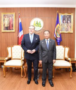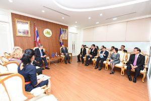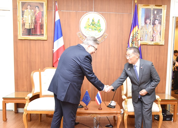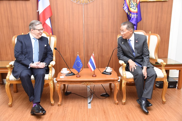 On January 23, 2020, at 10.00 hours, Labour Minister M.R. Chatumongol Sonakul, Permanent Secretary of Labour Mr. Suthi Sukosol and the ministry’s executives welcomed Ambassador of the European Union to Thailand Mr. Pirkka Tapiola and delegation, on a courtesy call to the Labour Minister, and to discuss official matters. The meeting took place at the Saengsingkaew conference room, 5th floor, Ministry of Labour.