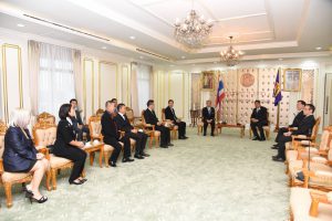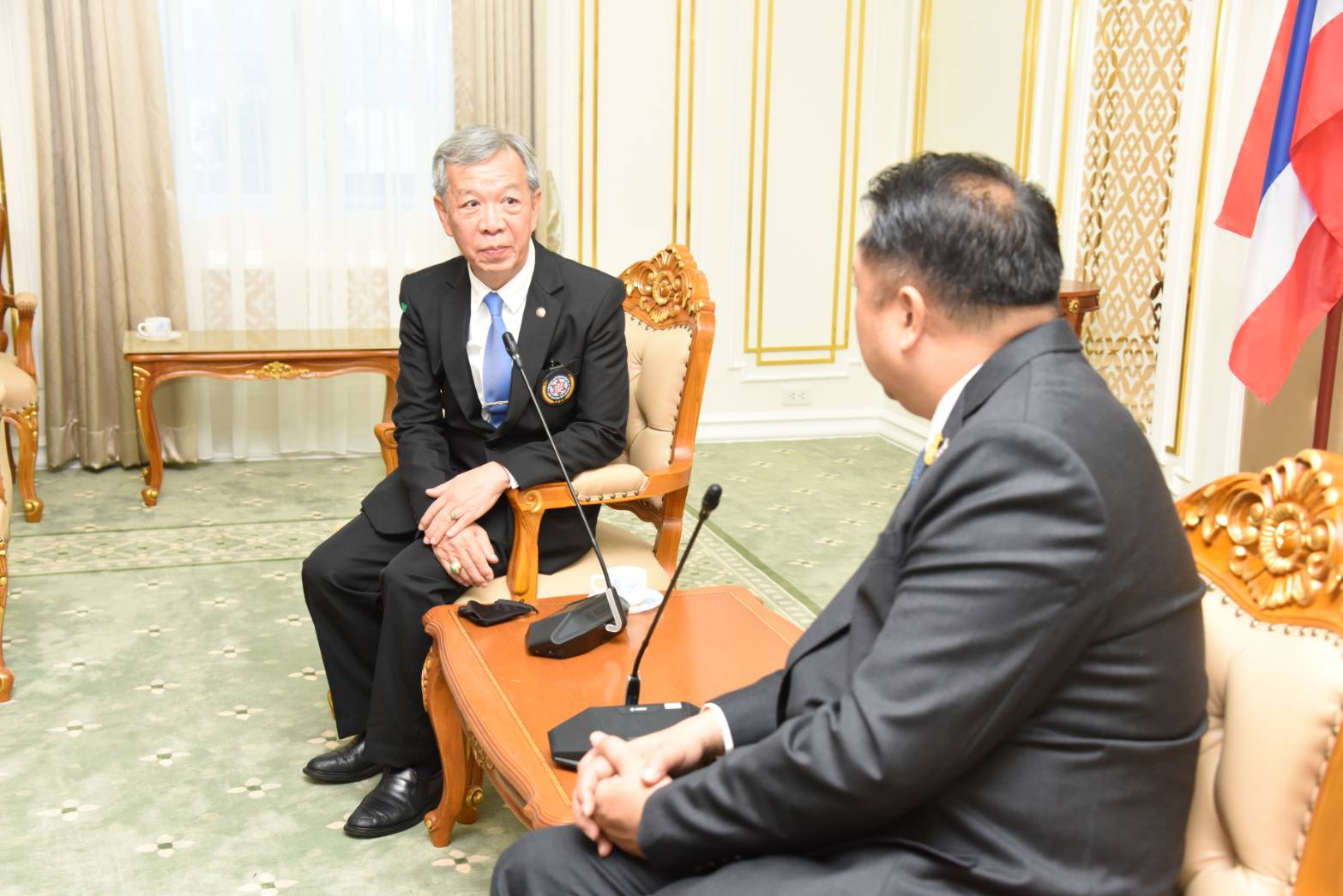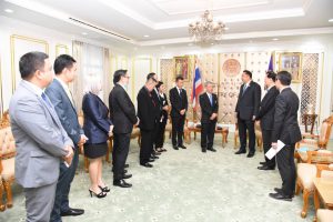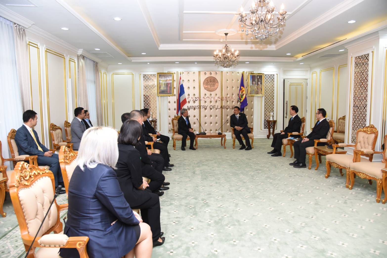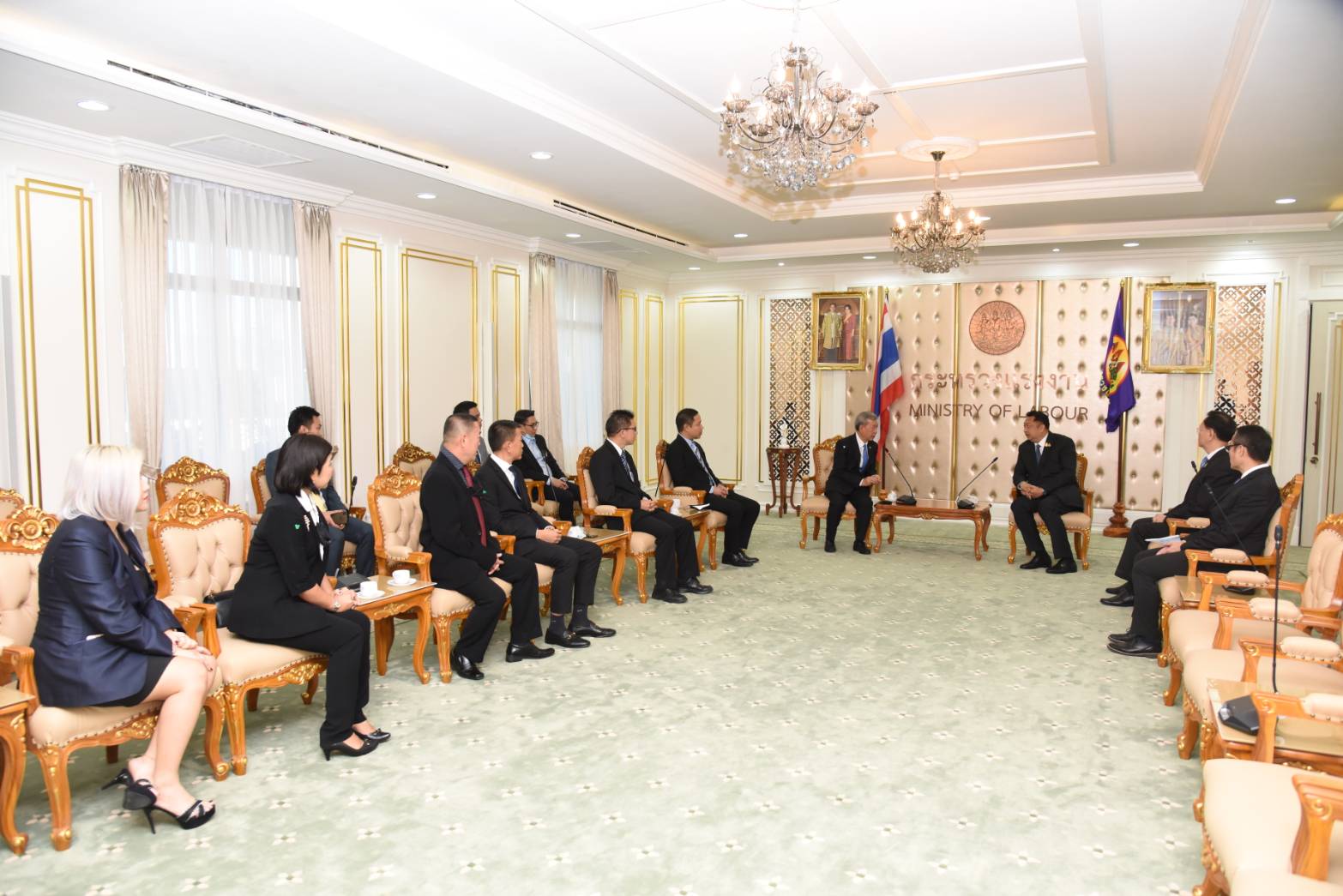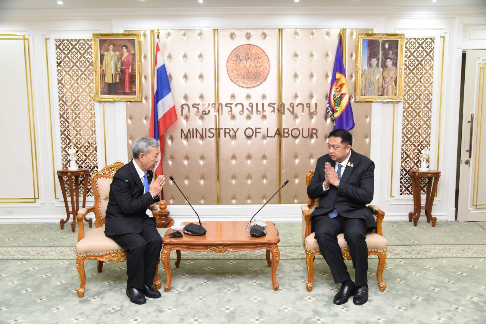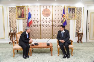 On August 26, 2020, at 09.00 hours, Labour Minister Mr. Suchart Chomklin welcomed President of the Labour Development Trade Association Mr. Thanit Nomanoi and delegation to give a flower basket to congratulate him on occasion his appointment to Labour Minister. The meeting also discussed assistance to workers affected by the Covid-19 situation. The Department of Employment’s Director-General Mr. Suchart Pornchaiwisetkun also attended the meeting at the Chatumongkol Room, 6th floor, Ministry of Labour.