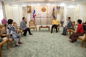 On September 23, 2020, at 10.00 hours, Labour Minister Mr. Suchart Chomklin welcomed the committee from Matichon Newspaper to congratulate him on the Ministry of Labour’s anniversary. The occasion took place at the Chatumongkon meeting room, 6th floor, Ministry of Labour.