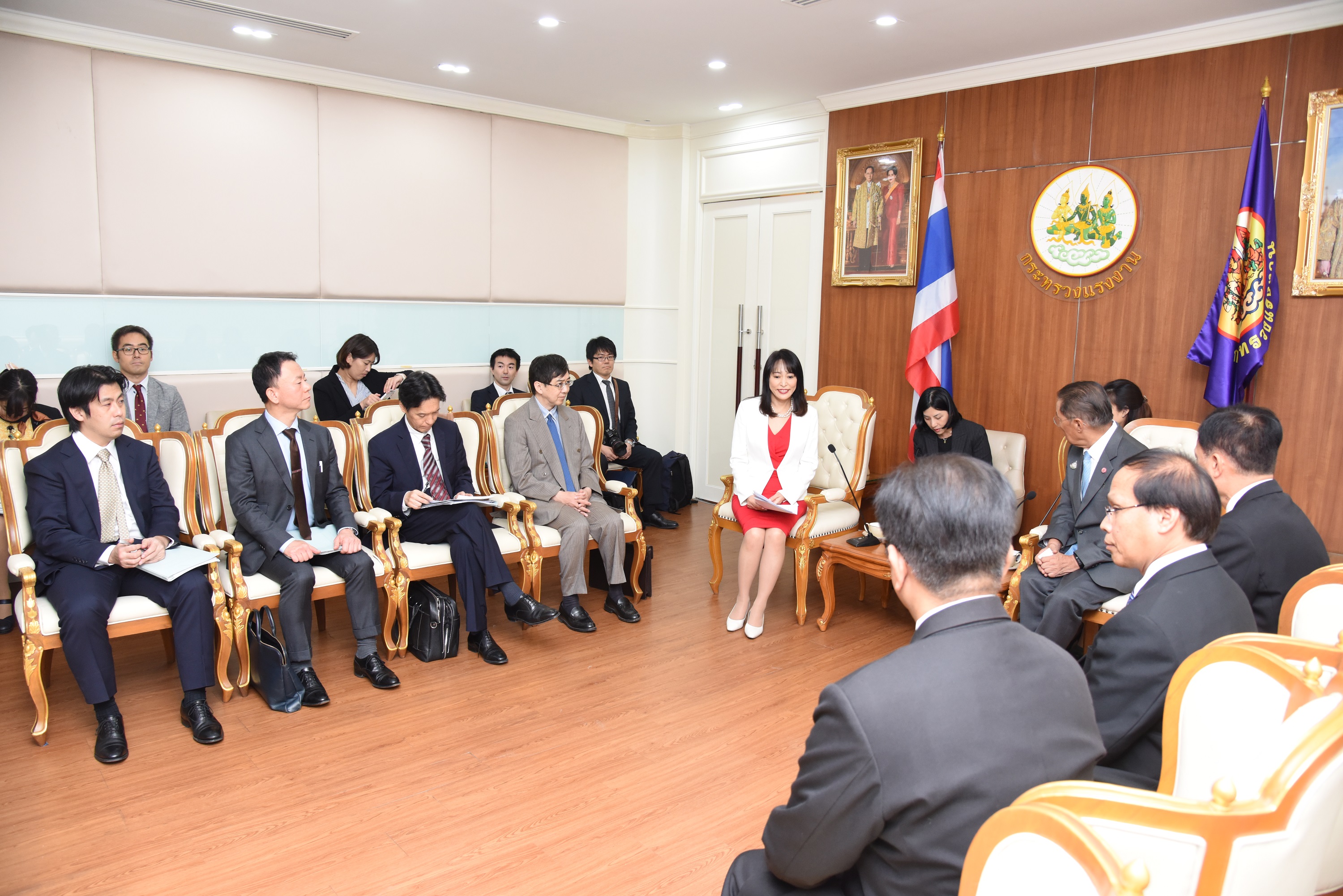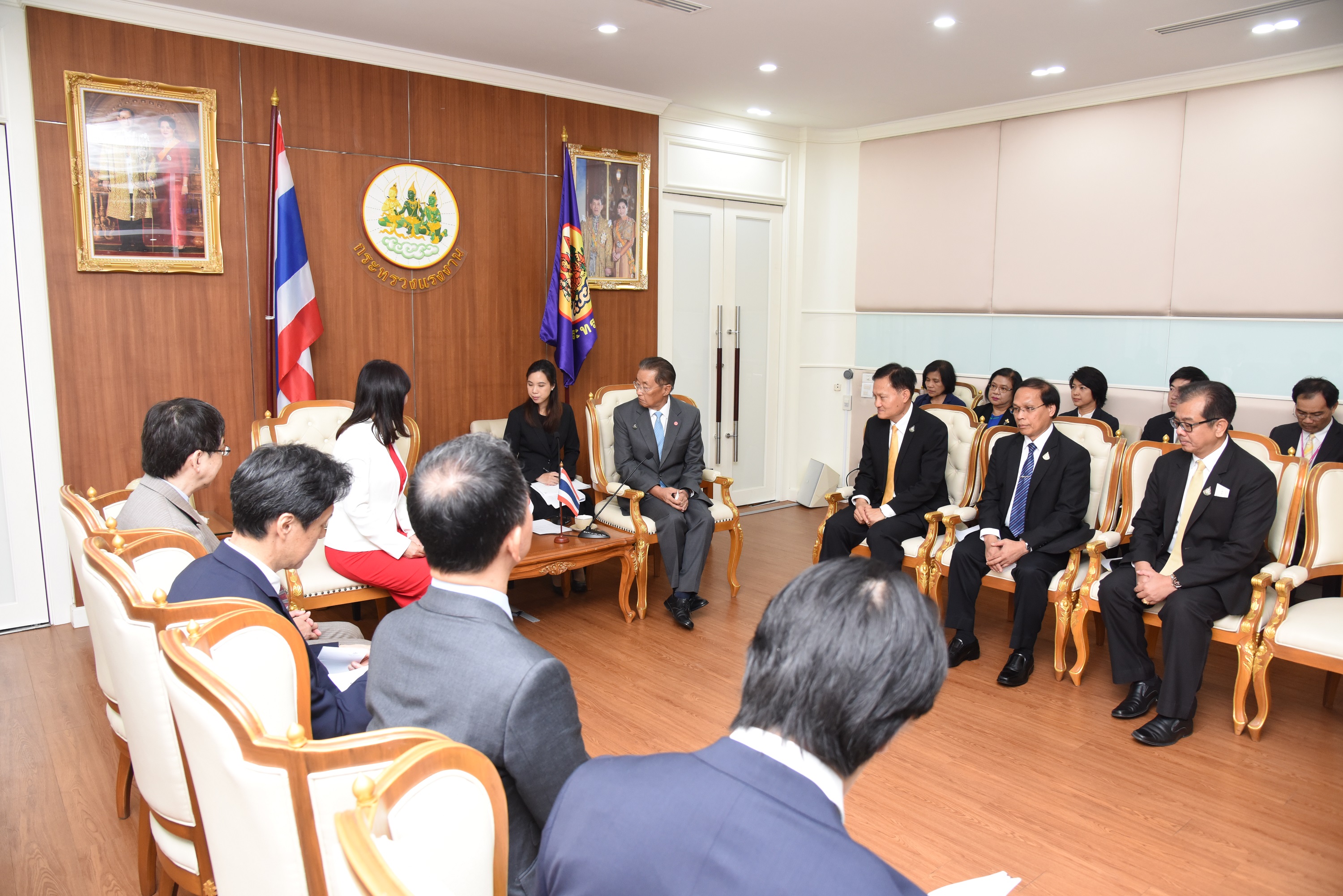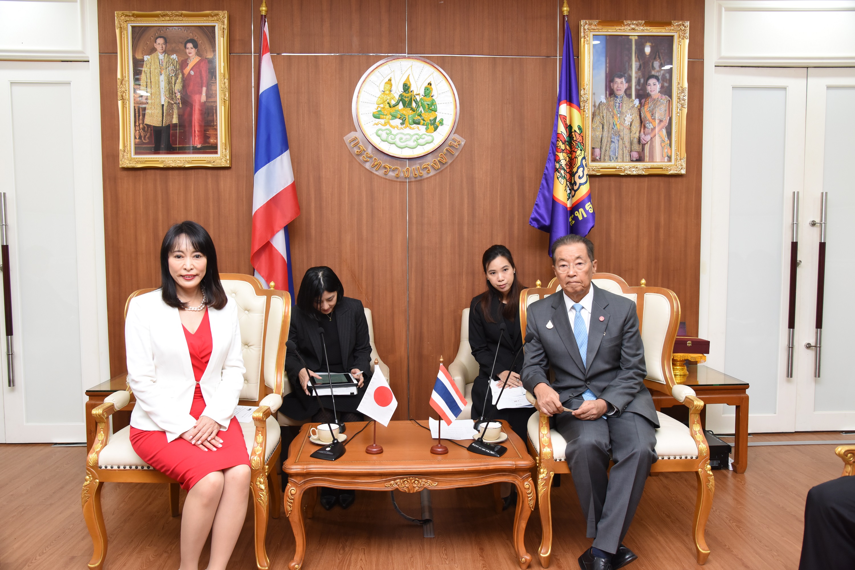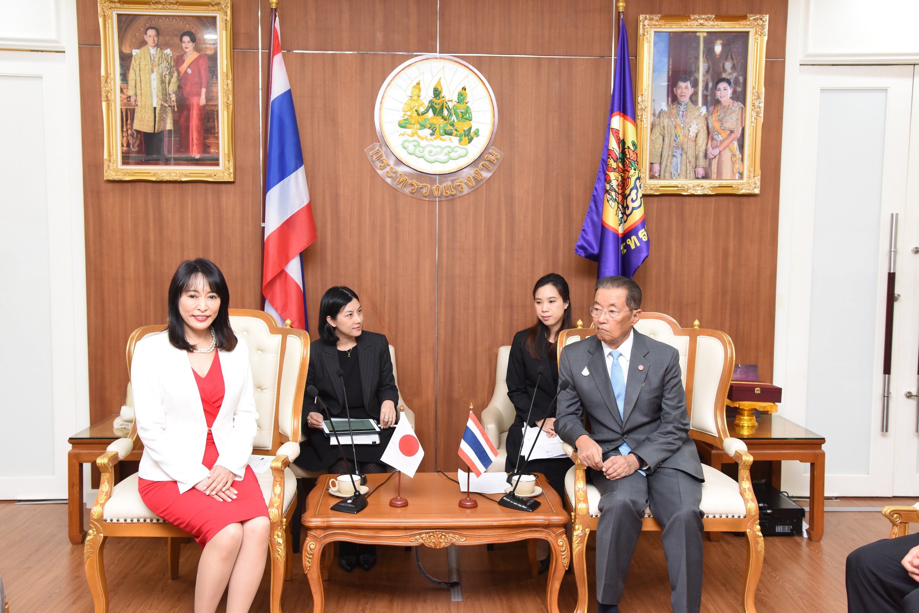 On December 13, 2019, at 10.00 hours, Labour Minister M.R. Chatumongol Sonakul welcomed H.E. Mrs. Masako Mori, Japanese Minister of Justice, at the War Room, 5th floor, Ministry of Labour. Permanent Secretary of Labour Mr. Suthi Sukosol and the ministry’s executives also joined the occasion. The meeting discussed the preparation of the Memorandum of Cooperation on necessary information for the management and residence of skilled workers between the Thai Ministry of Labour and agencies of Japan, including the Ministry of Justice, Ministry of Foreign Affairs, Ministry of Public Health, Labour and Welfare and the National Police Agency.