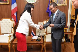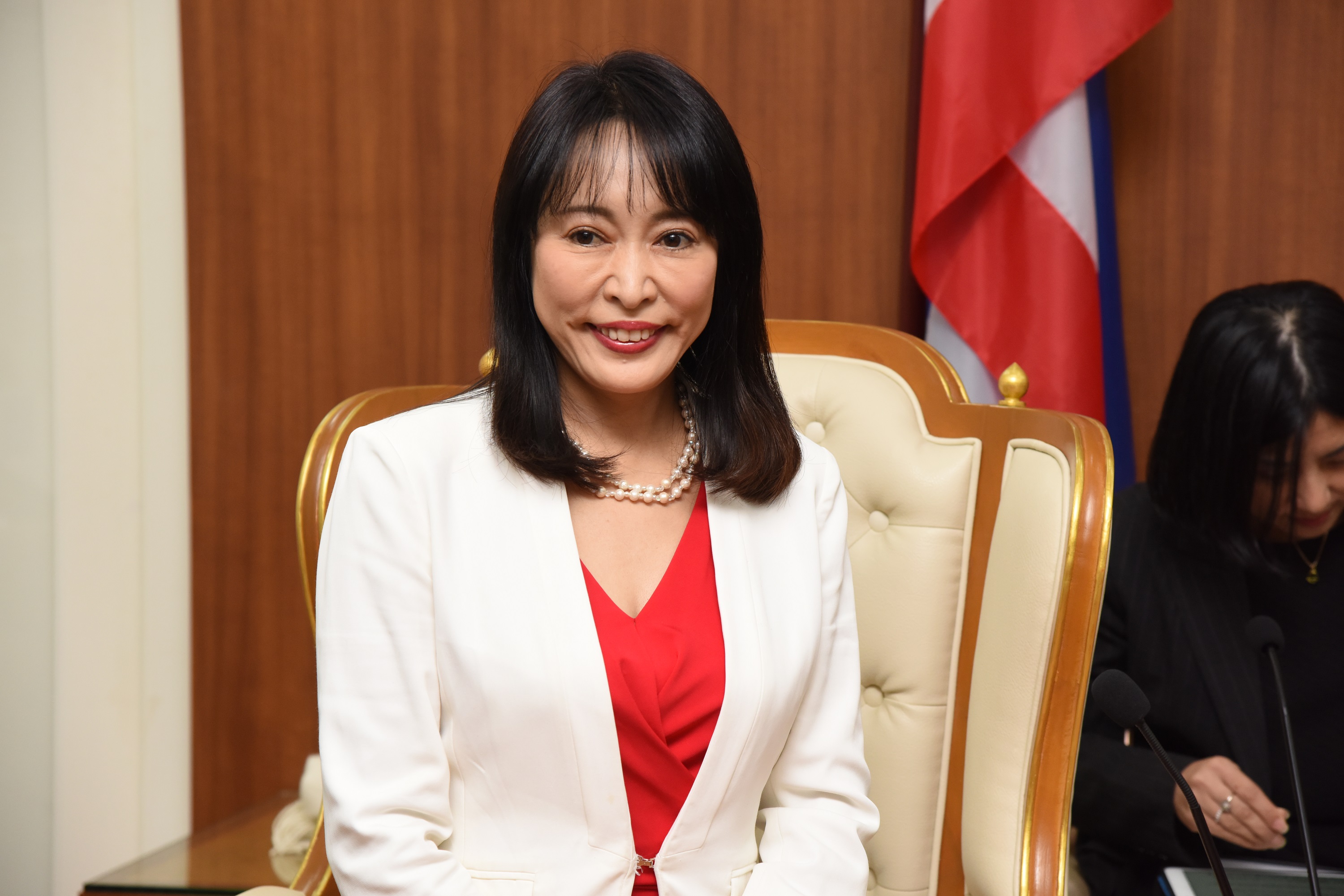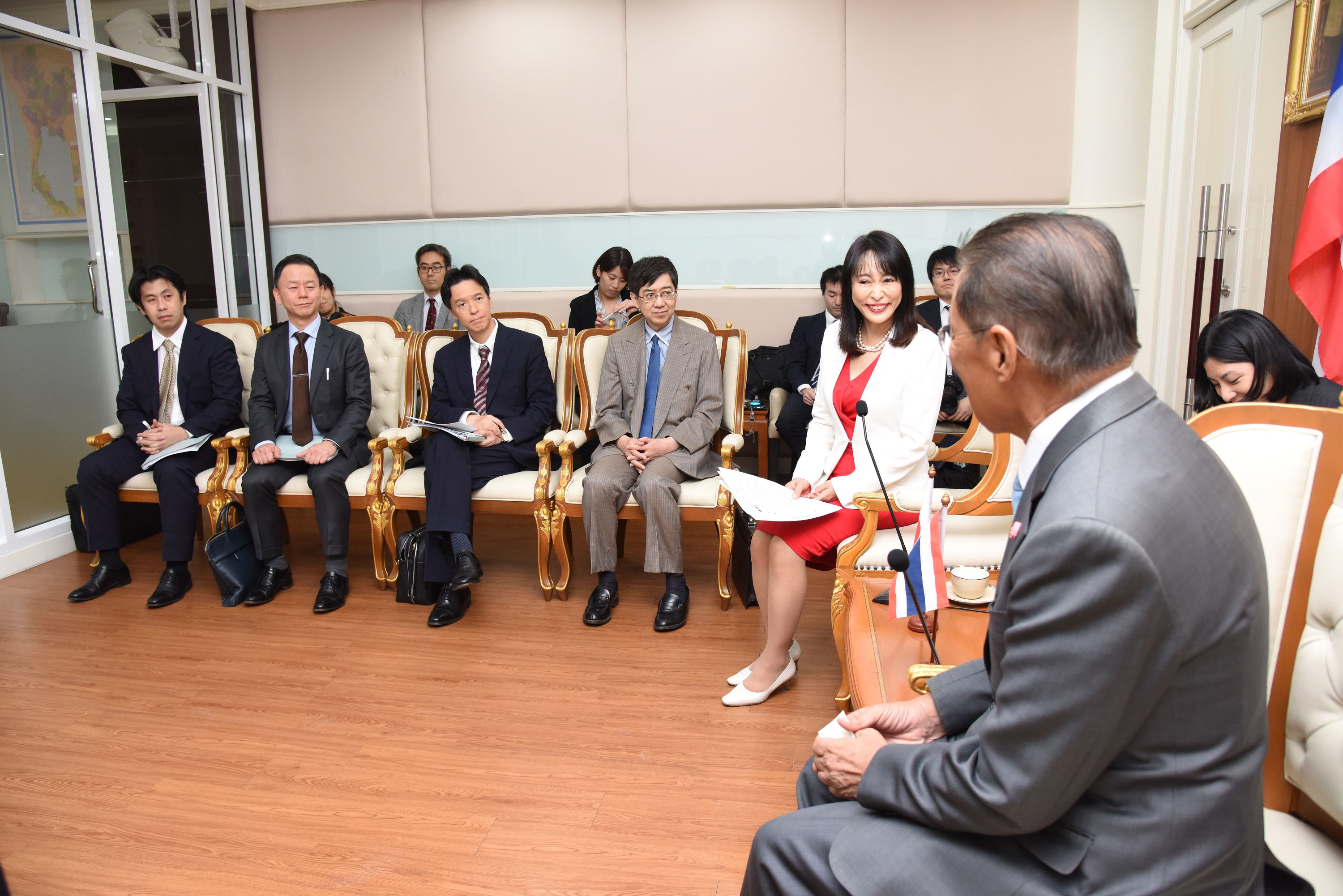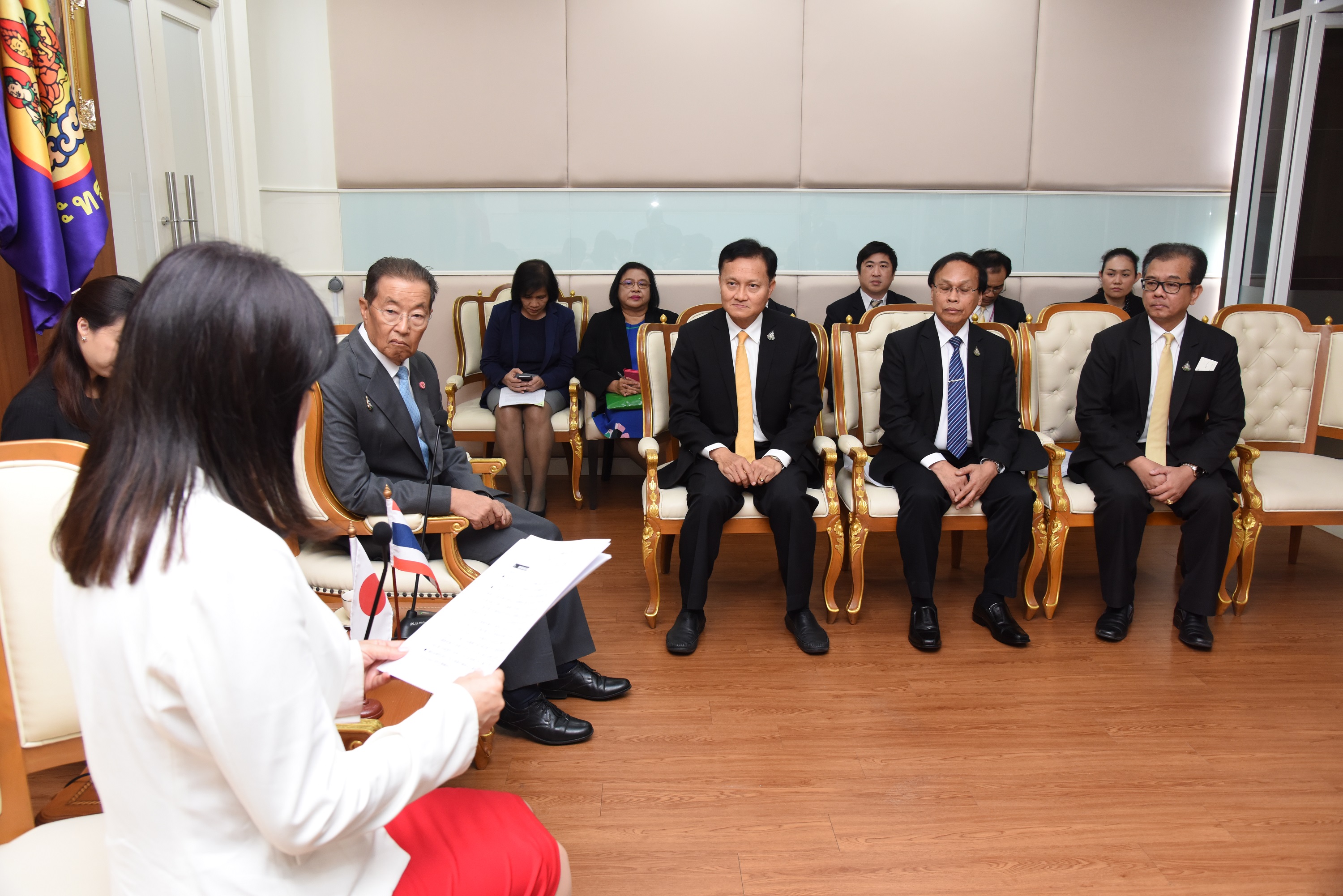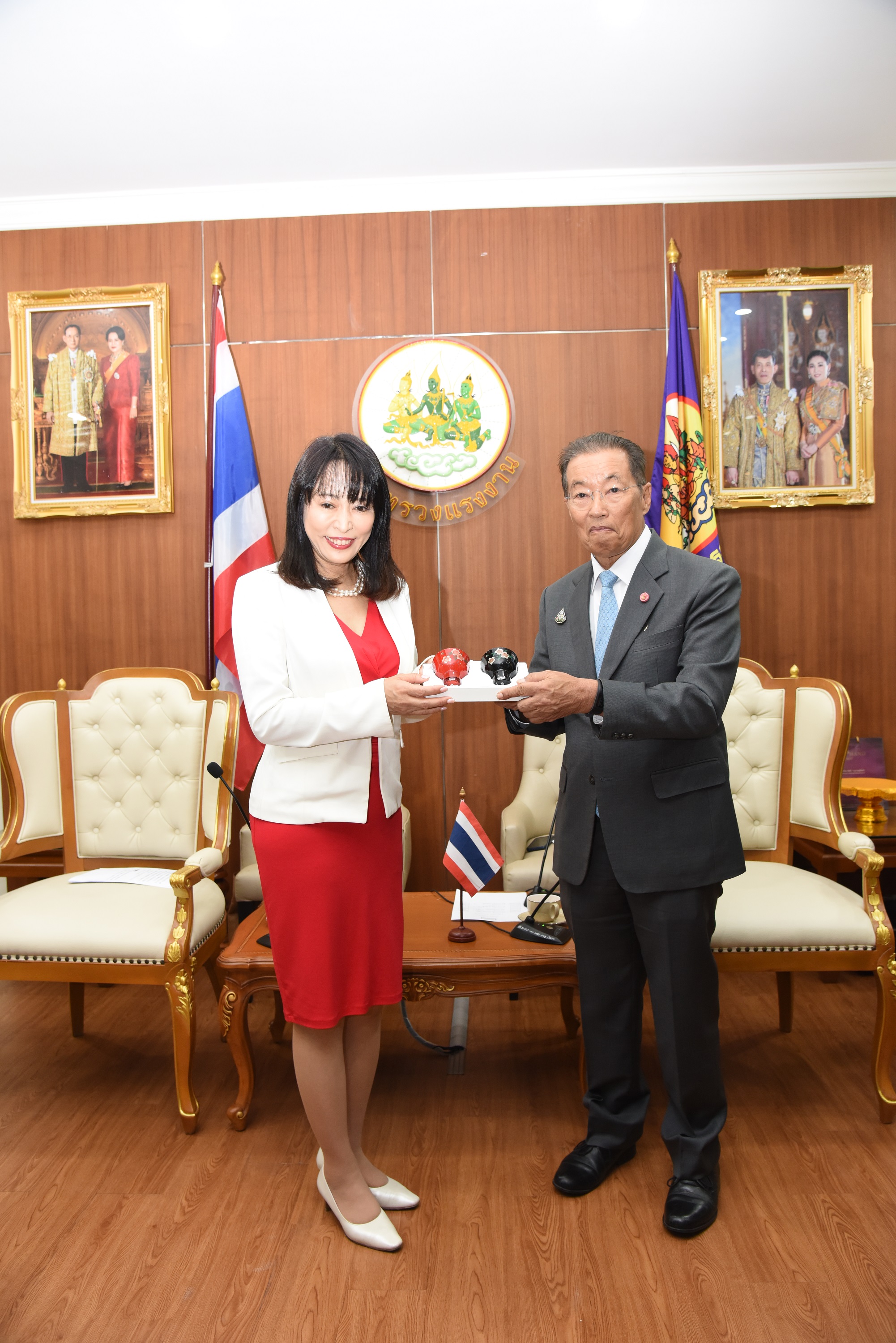 On December 13, 2019, at 10.00 hours, Labour Minister M.R. Chatumongol Sonakul welcomed H.E. Mrs. Masako Mori, Japanese Minister of Justice, at the War Room, 5th floor, Ministry of Labour. Permanent Secretary of Labour Mr. Suthi Sukosol and the ministry’s executives also joined the occasion. The meeting discussed the preparation of the Memorandum of Cooperation on necessary information for the management and residence of skilled workers between the Thai Ministry of Labour and agencies of Japan, including the Ministry of Justice, Ministry of Foreign Affairs, Ministry of Public Health, Labour and Welfare and the National Police Agency.